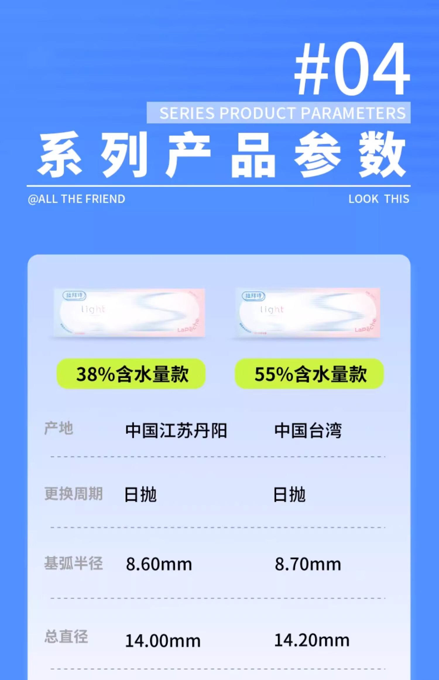 LaPeche拉拜诗Light系列双子片透明隐形眼镜日抛30片装375度(55%含水)