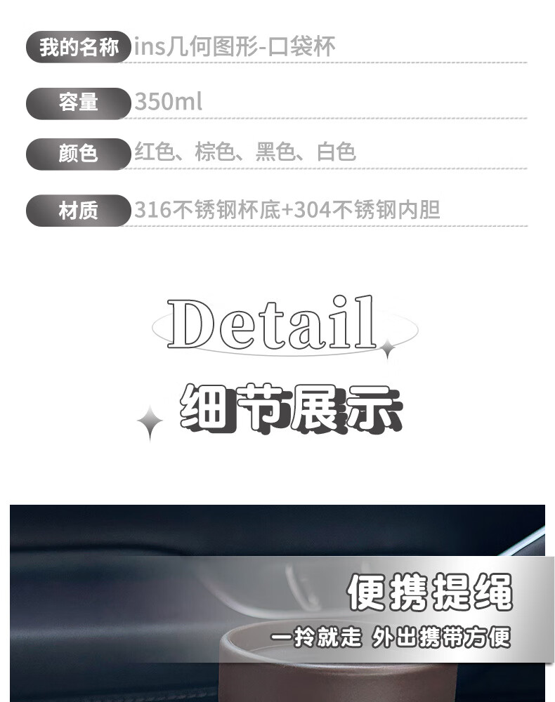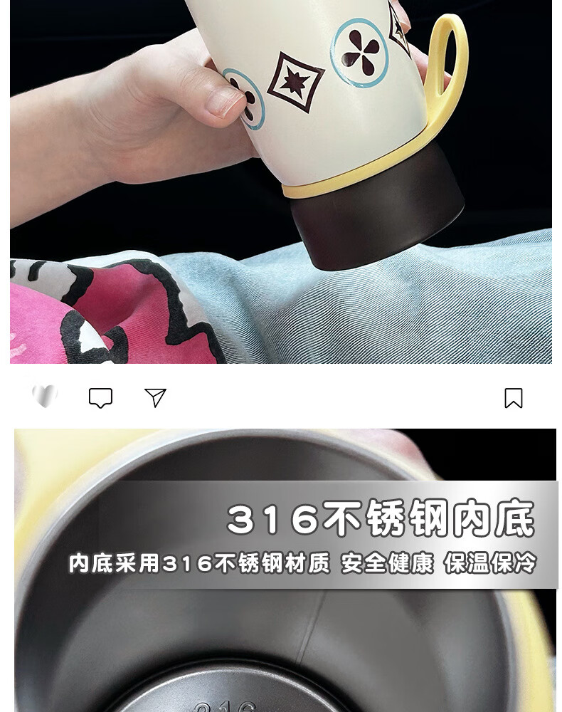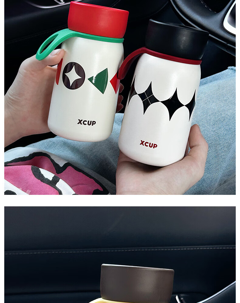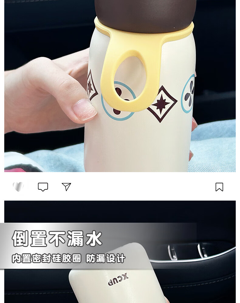 牛奶瓶保温杯2025346不锈钢保温杯水杯便携茶水分离双饮杯 黑色 350ml