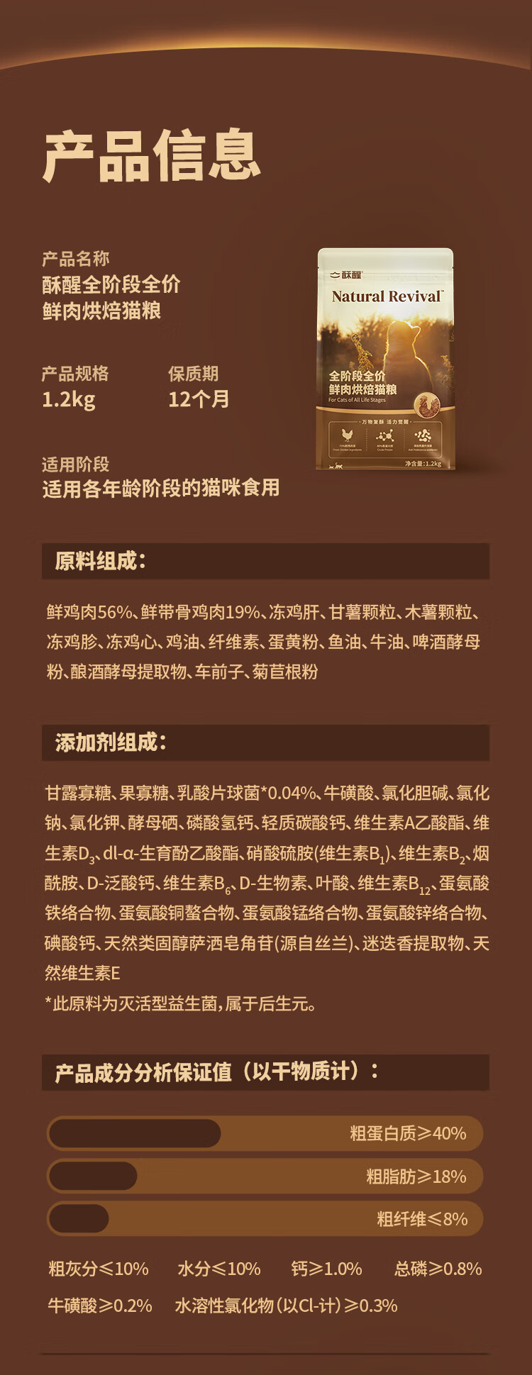 酥醒全阶段全价鲜肉猫干粮长肉美毛养胃护肠烘焙猫粮1.2kg*1包