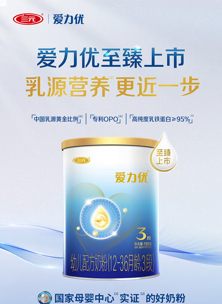 三元【新国标】爱力优幼儿配方奶粉3段(12-36个月)150g/罐 试用装
