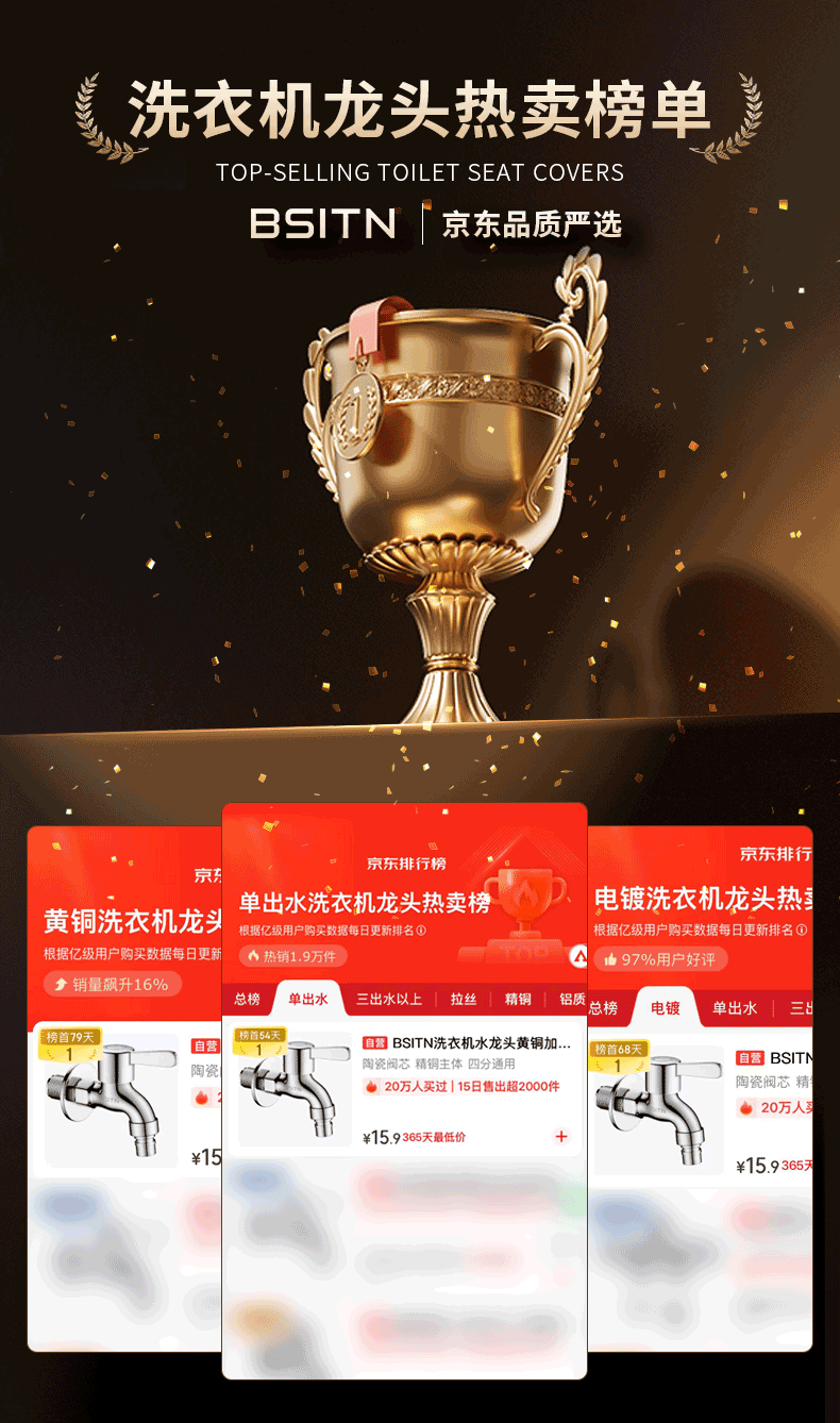 BSITN洗衣机水龙头黄铜加厚4分快开水嘴卫生间自来水洗衣机小龙头B083