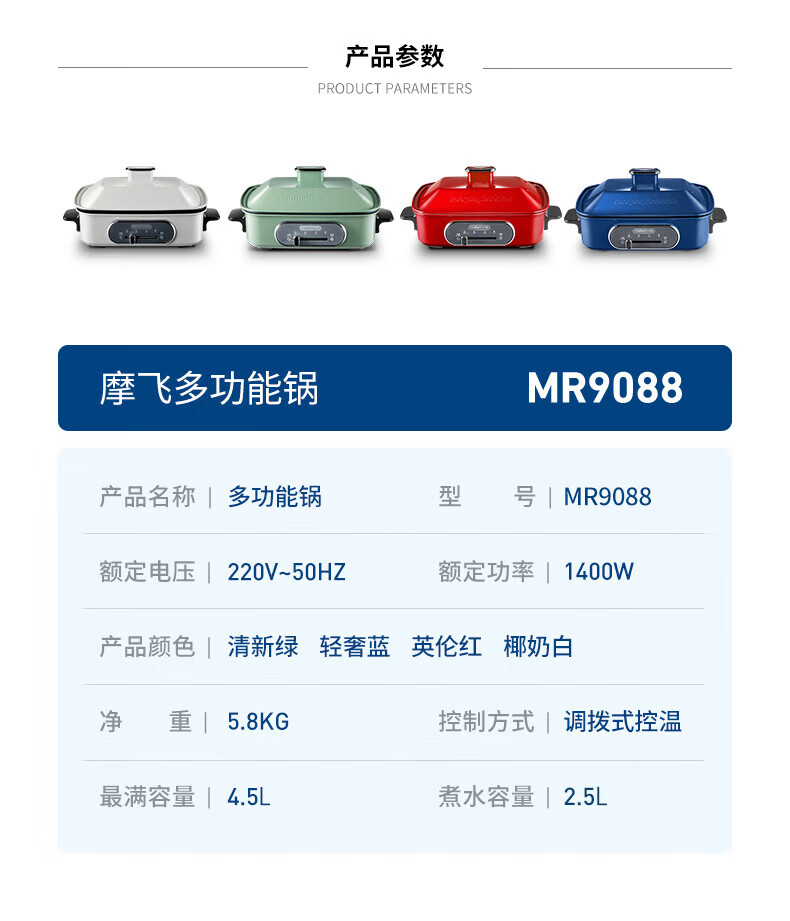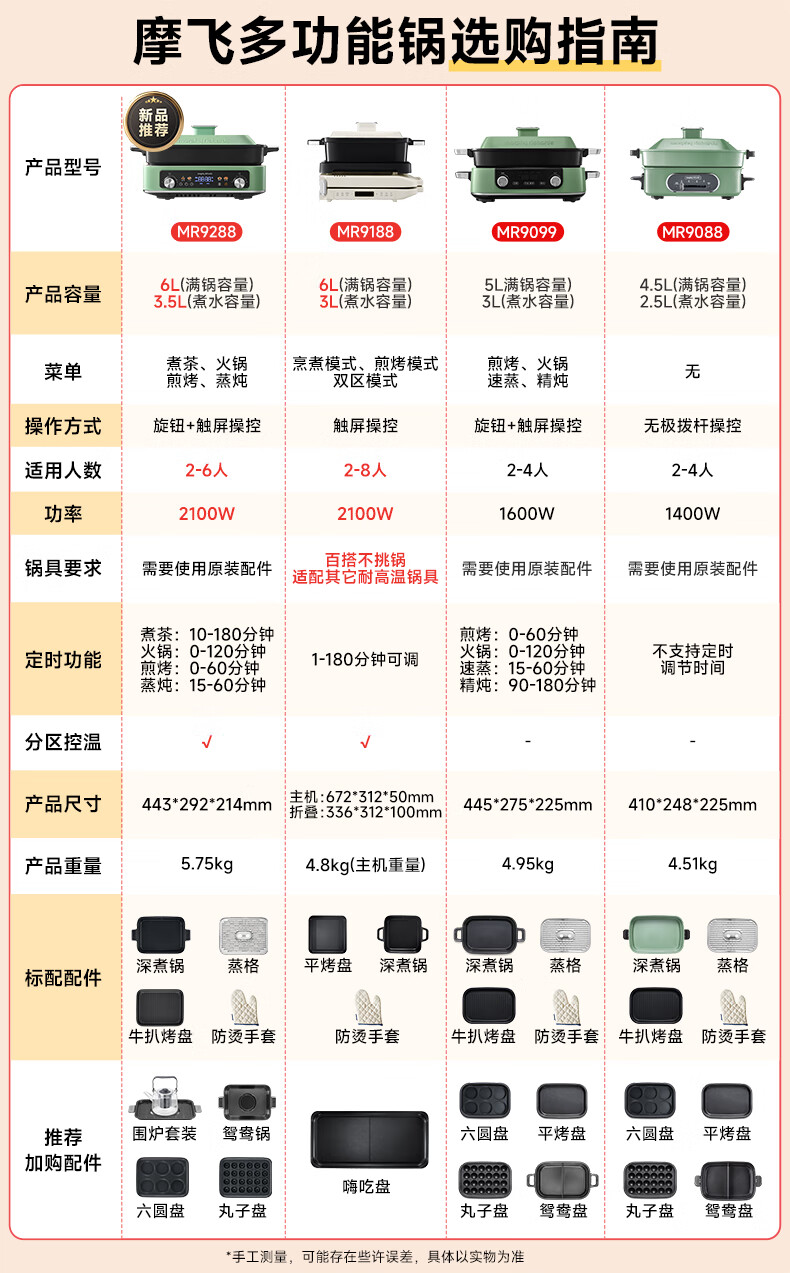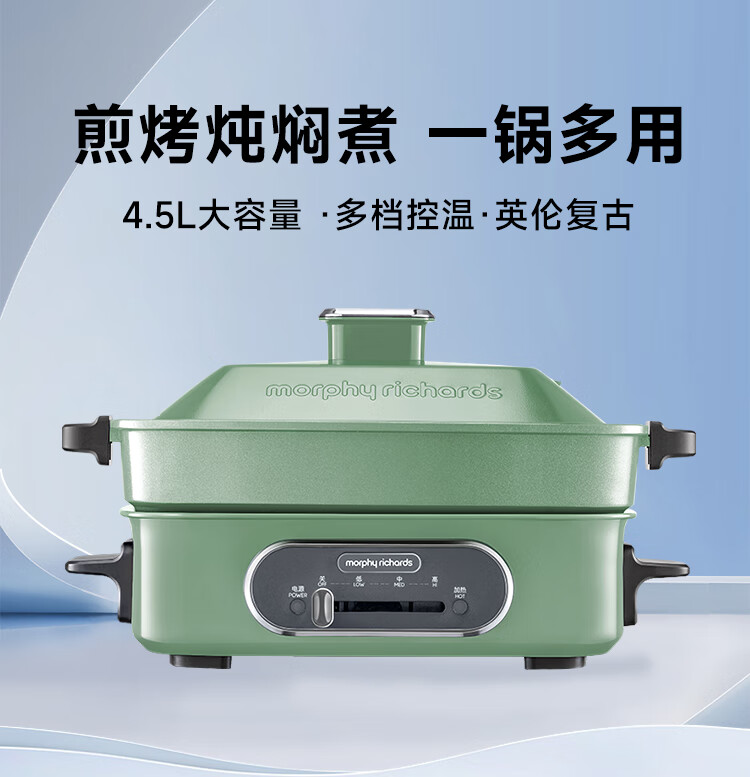 摩飞电器(Morphyrichards)多功能锅家用 鸳鸯锅电火锅专用锅料理锅蒸煮炒一体涮烤肉锅电烤盘分体式多用途电热锅旗舰 MR9088 薄荷绿标配(带深锅盘+牛扒盘+蒸盘)