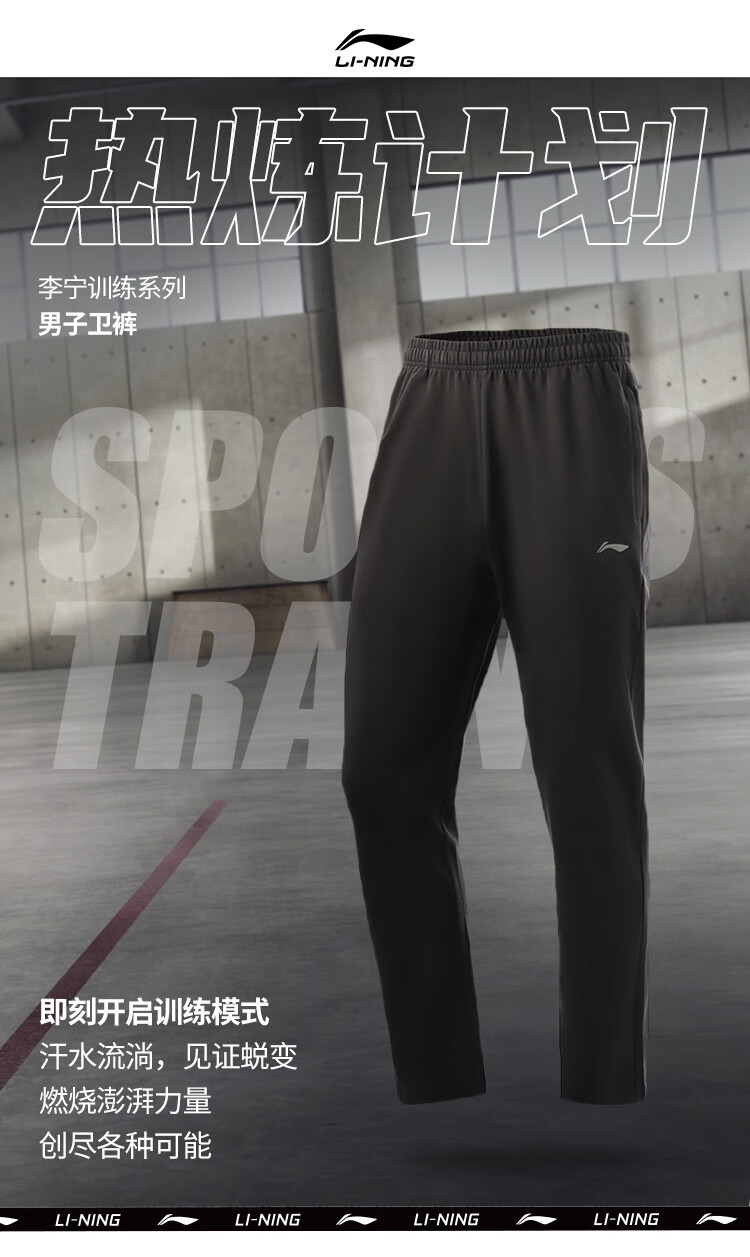李宁运动裤子男士卫裤25新秋冬季款休闲宽松保暖青少年学生直筒灰长裤 灰色敞口卫裤【反光标】·常规款 XL