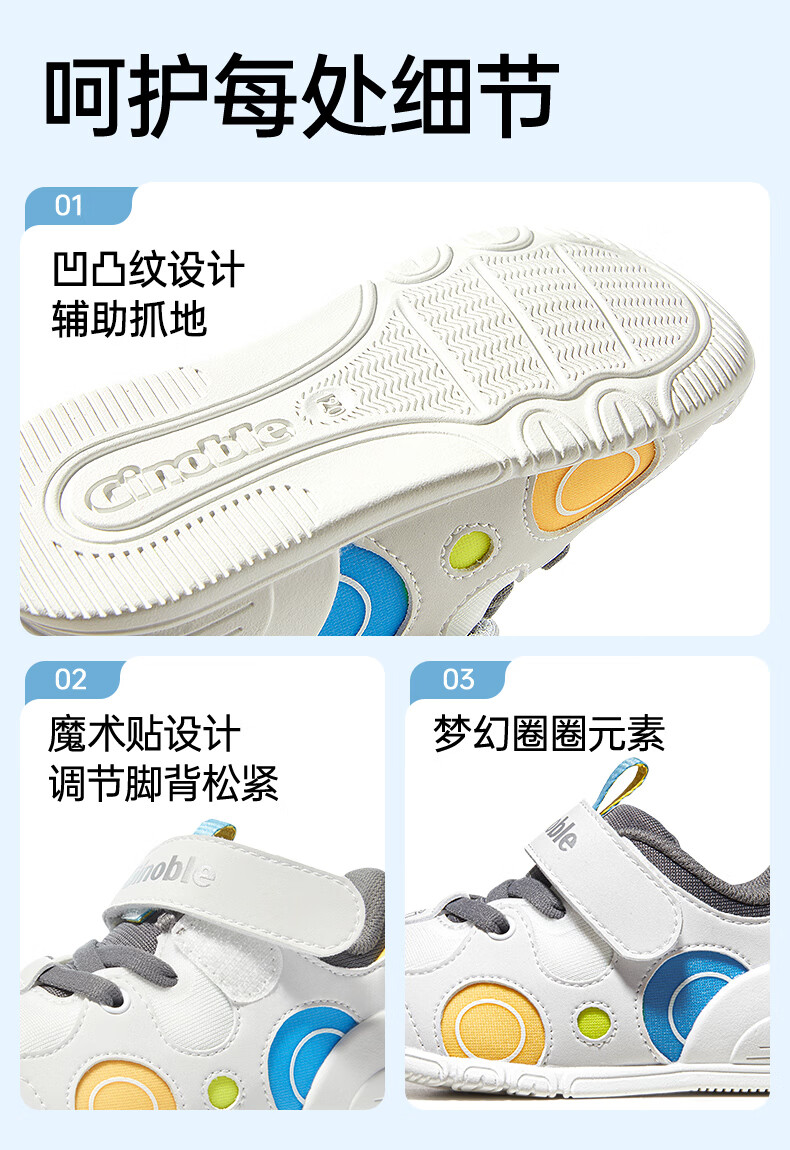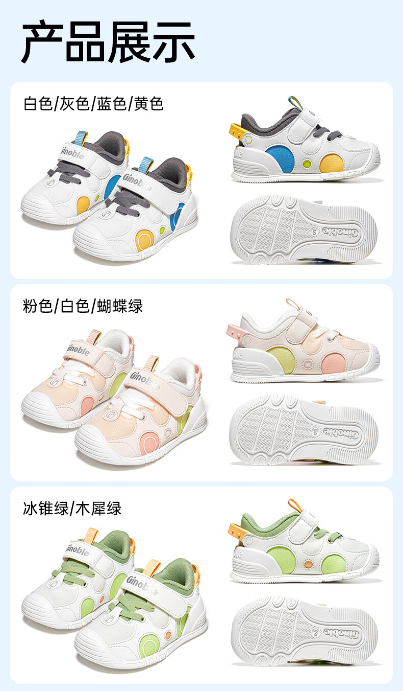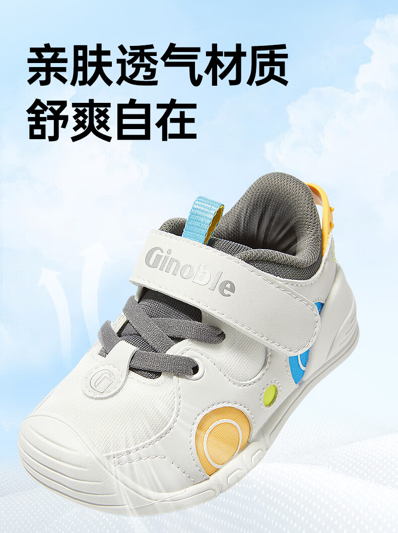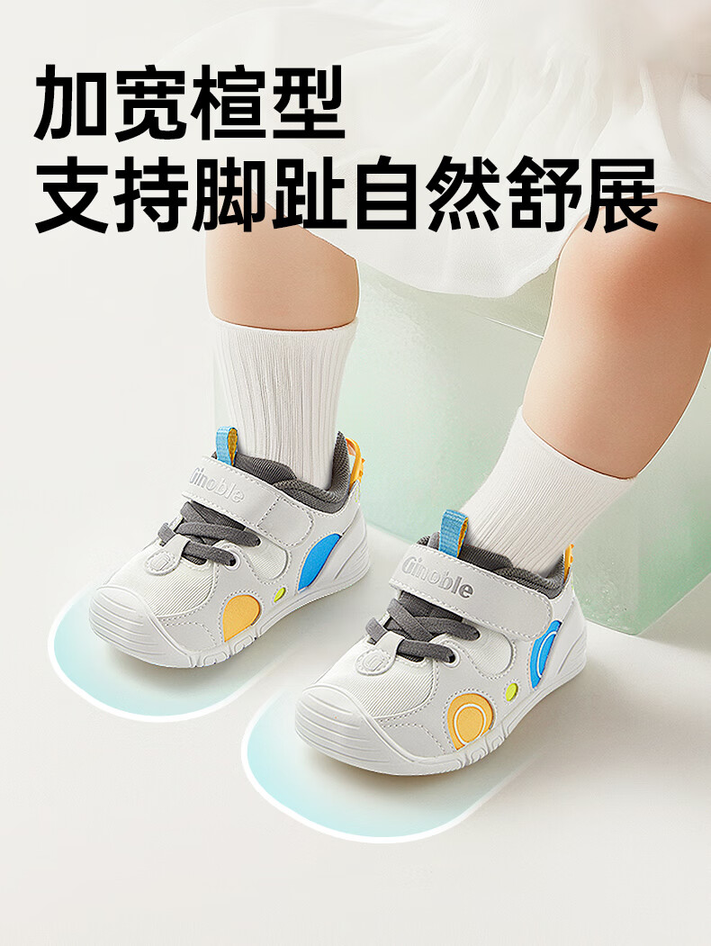 基诺浦(ginoble)学步鞋8-18个月步前鞋25年春季男女童鞋机能鞋GB2402白色/灰色