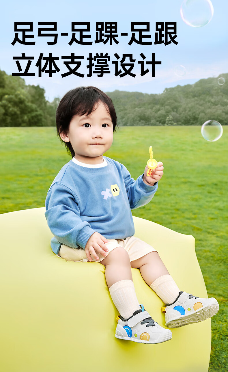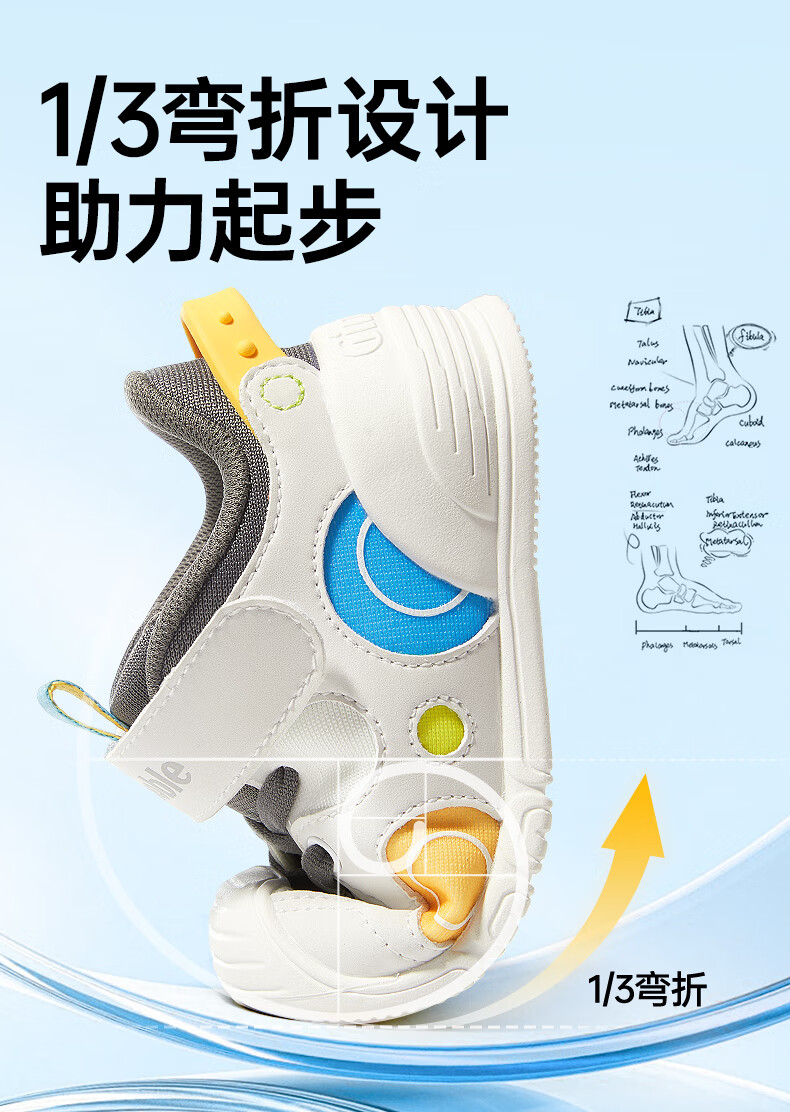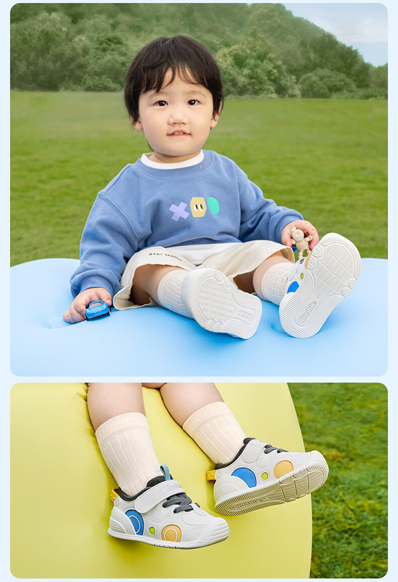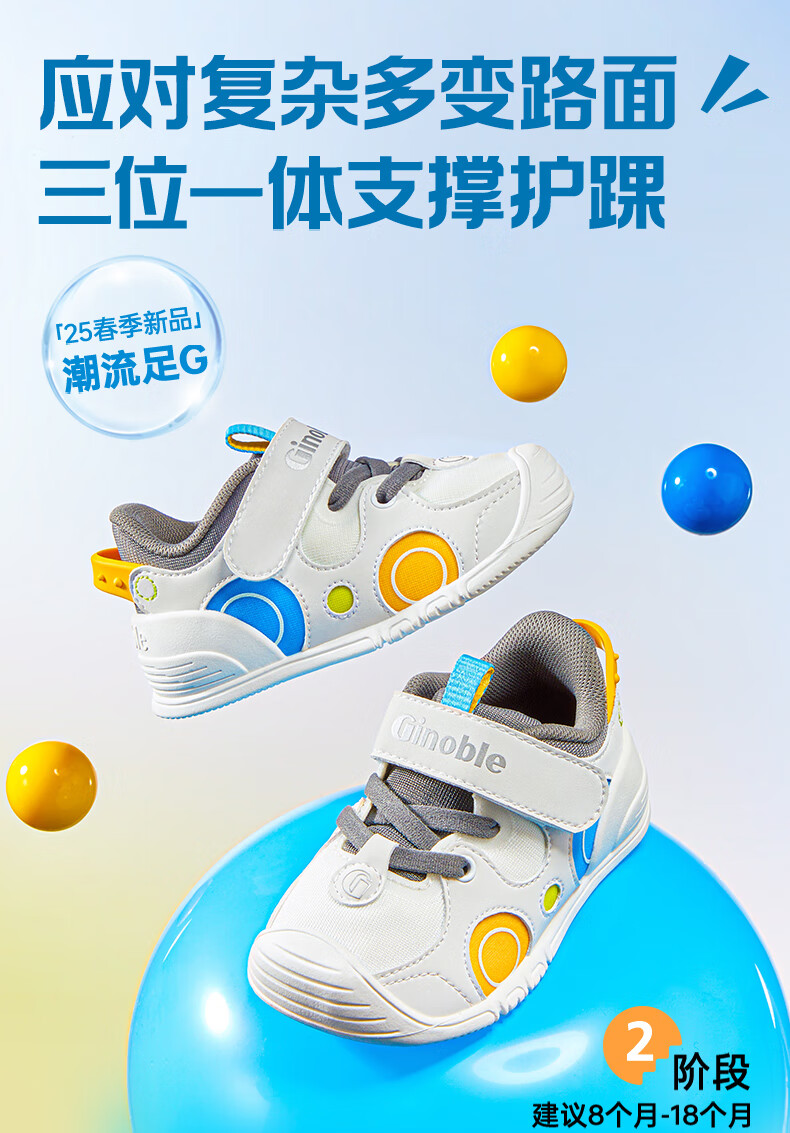 基诺浦(ginoble)学步鞋8-18个月步前鞋25年春季男女童鞋机能鞋GB2402白色/灰色