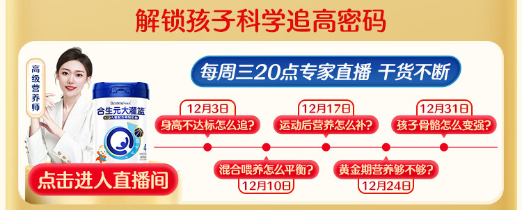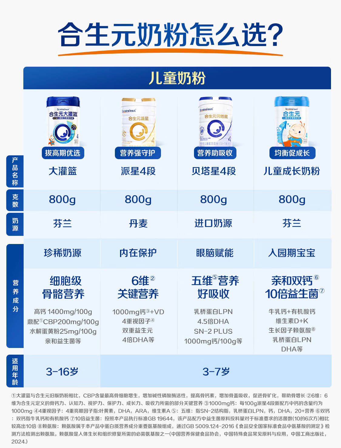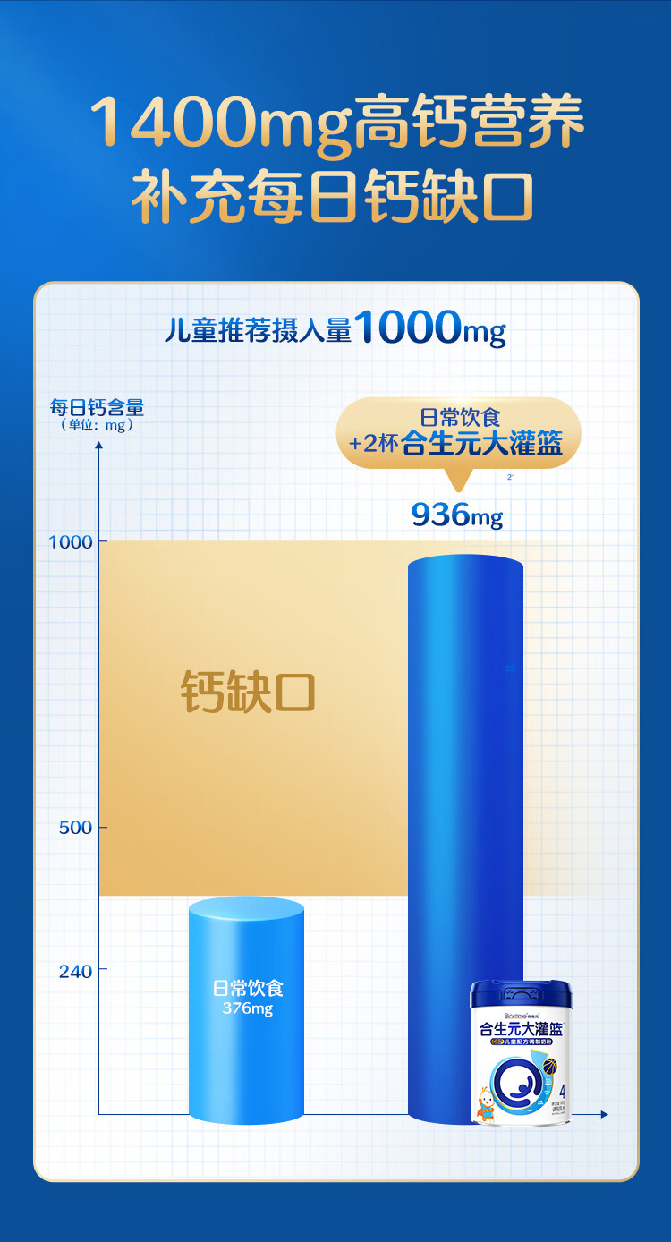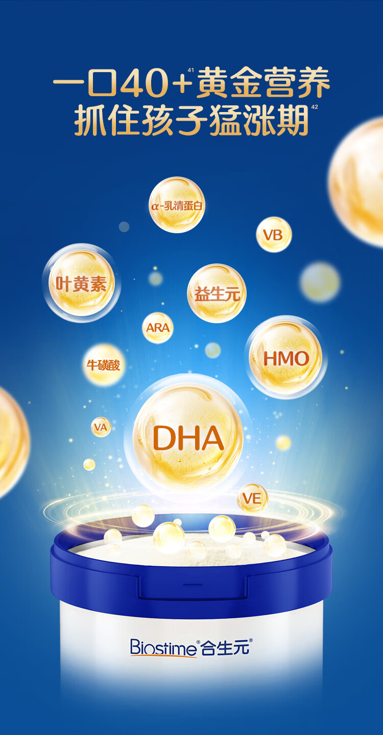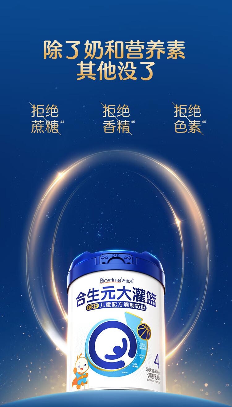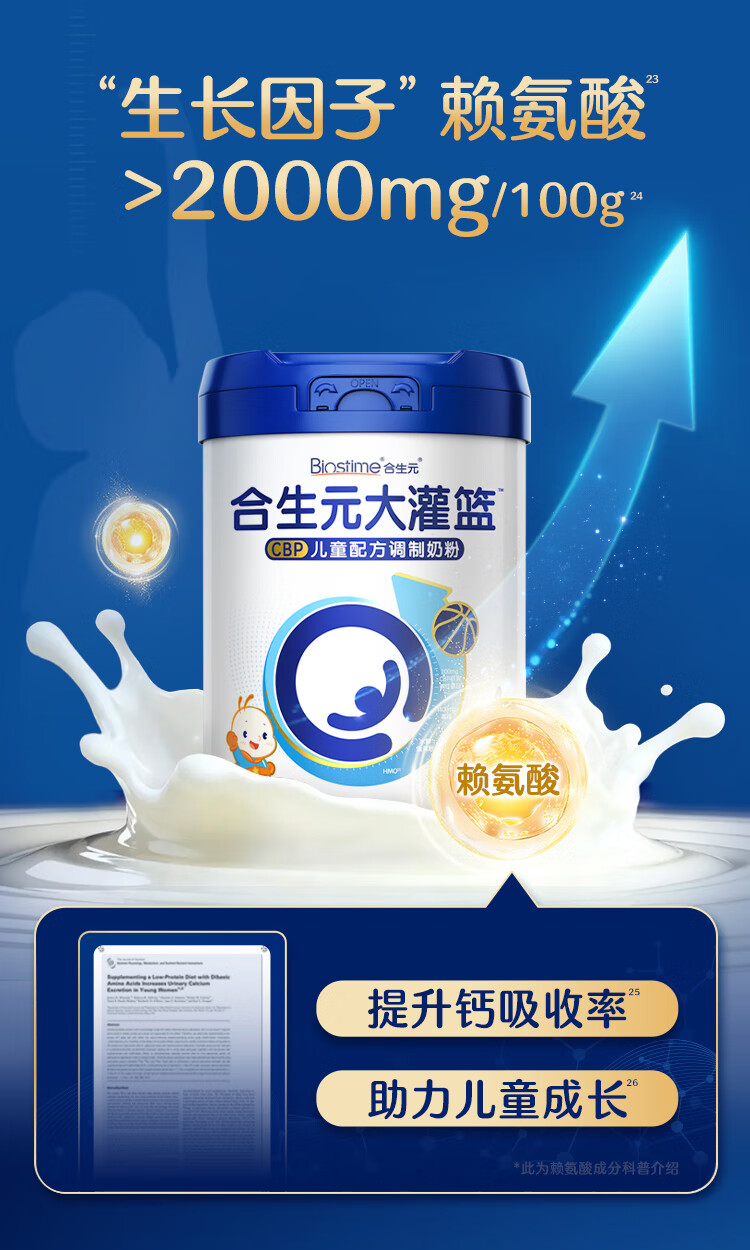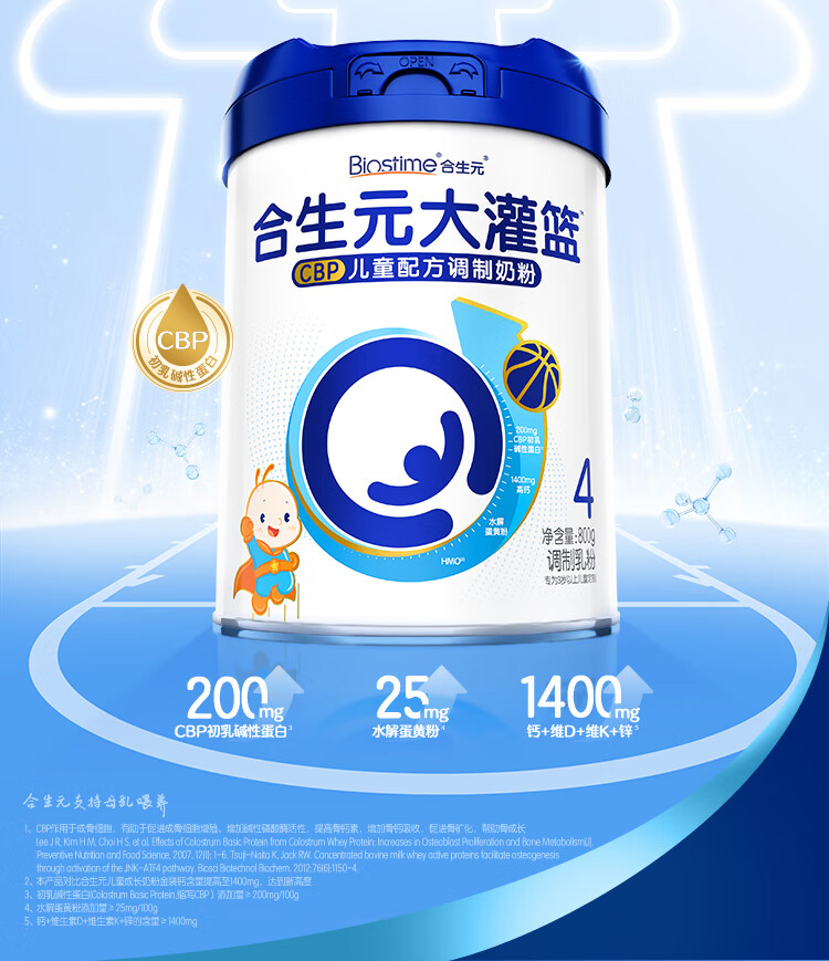 合生元(BIOSTIME)大灌篮CBP儿童成长奶粉高钙奶粉DHA(3-16岁)赖氨酸800g单罐
