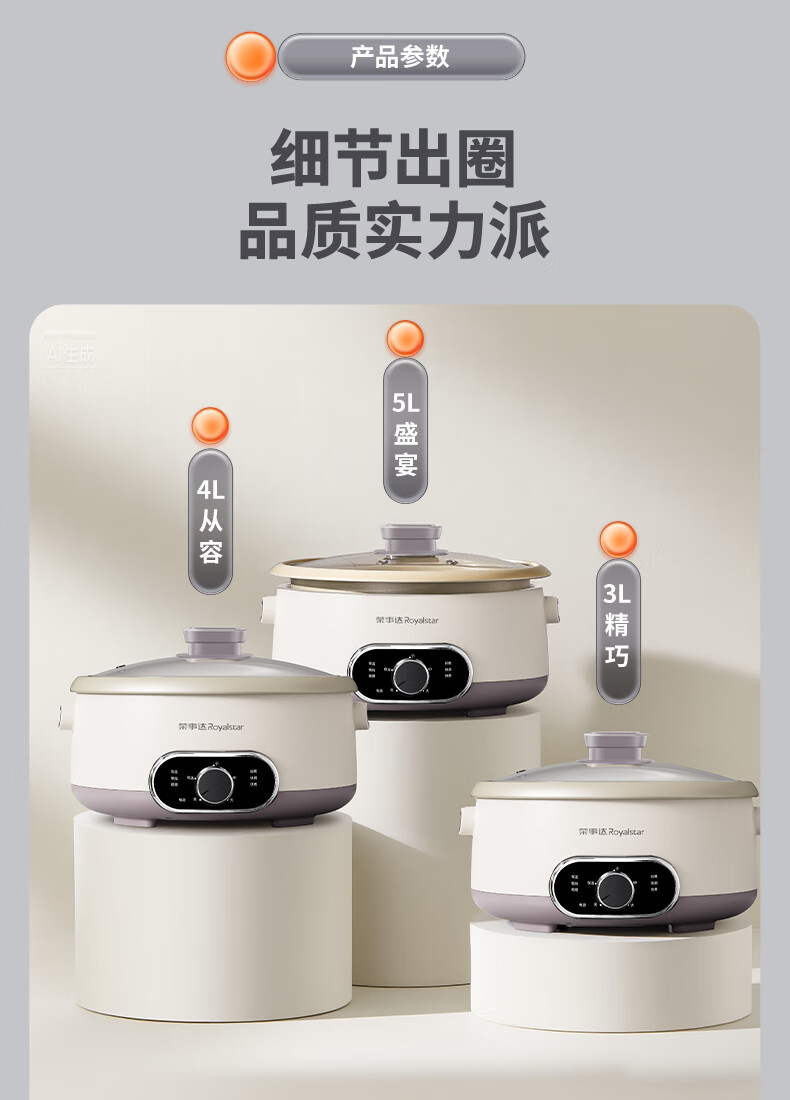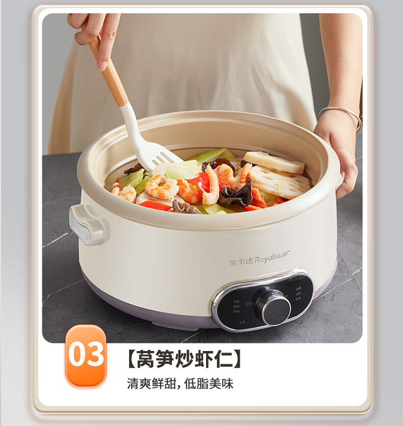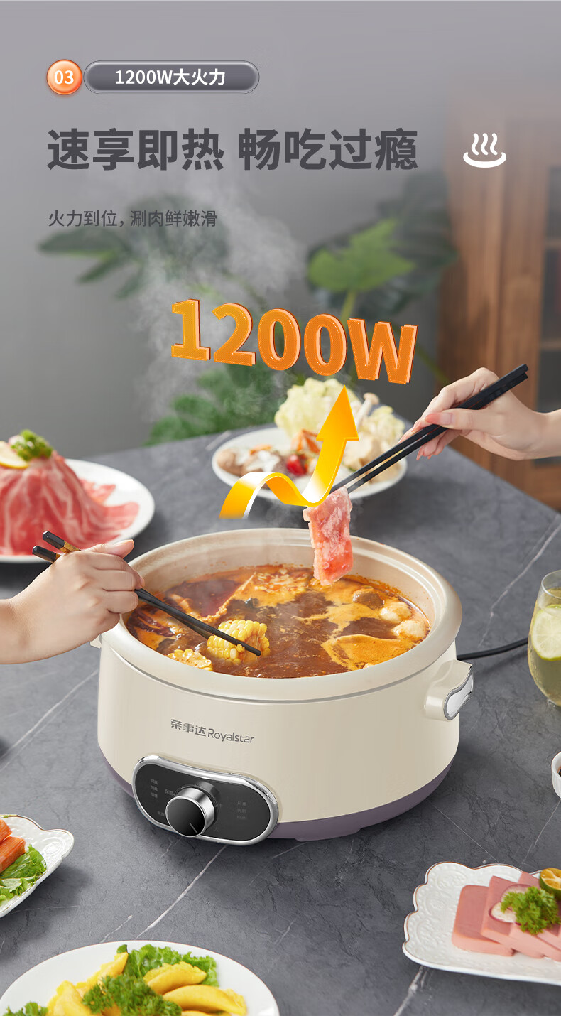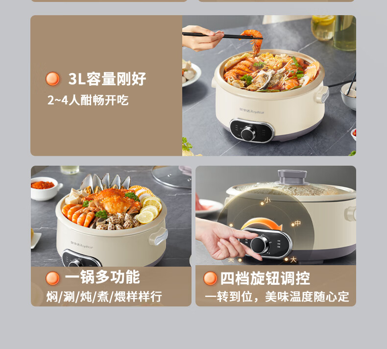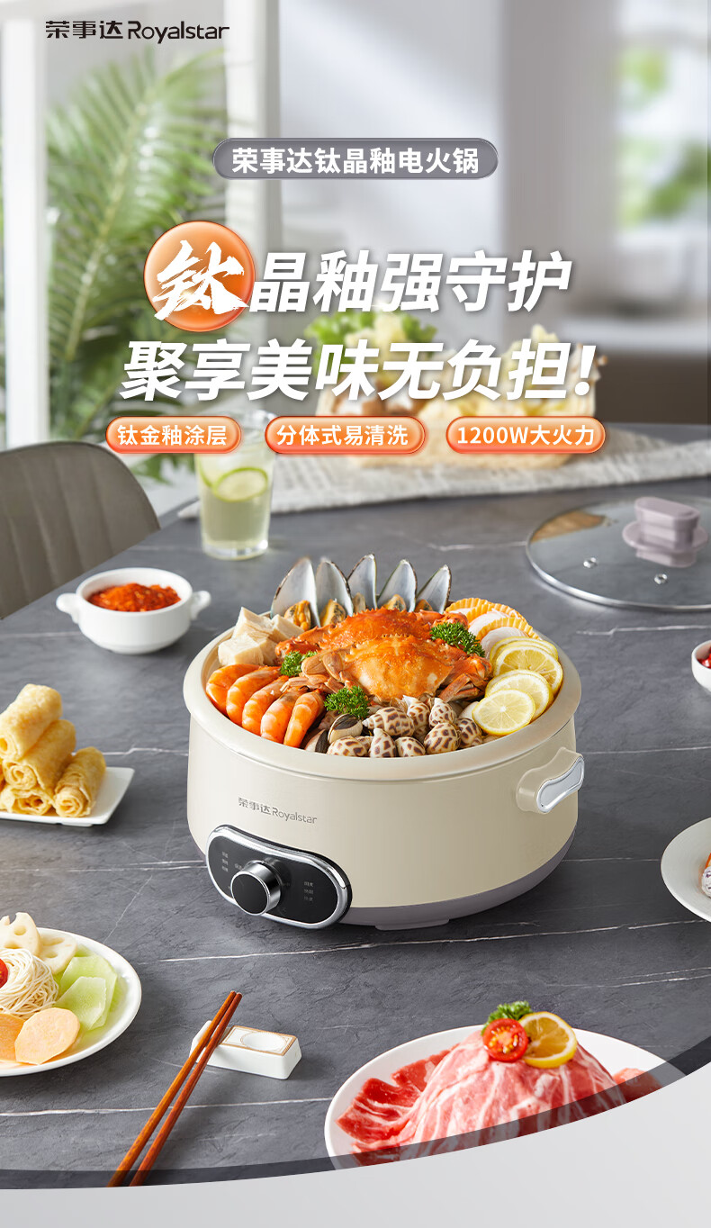 荣事达(Royalstar)电火锅电煮锅3L分体式可拆洗家用多功能锅2-5人钛涂层涮肉火锅专用锅不粘电热锅RHG-30M1