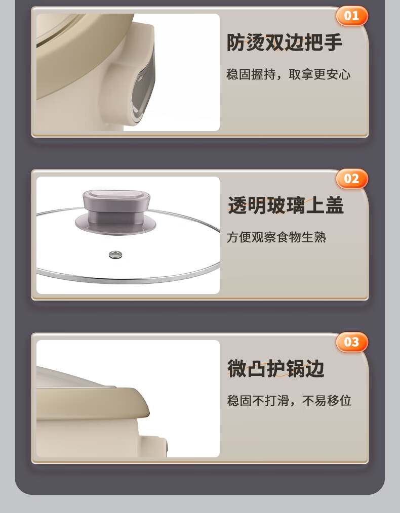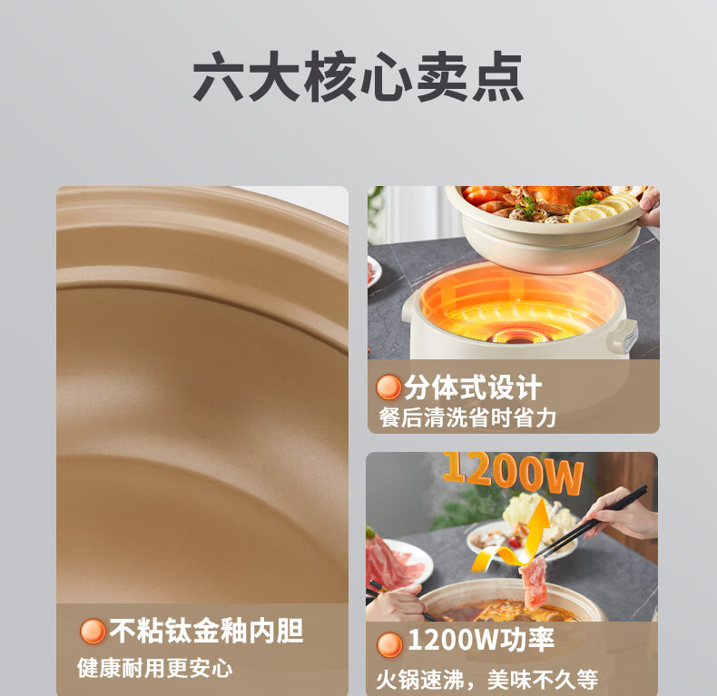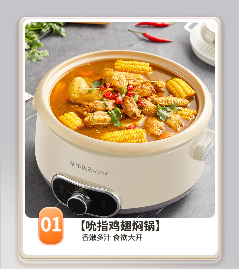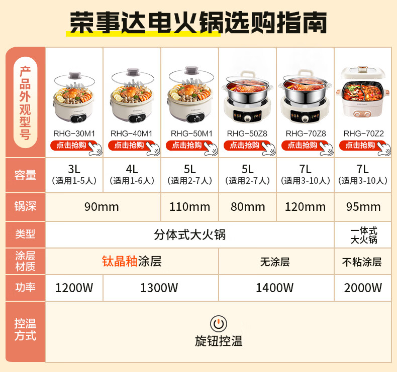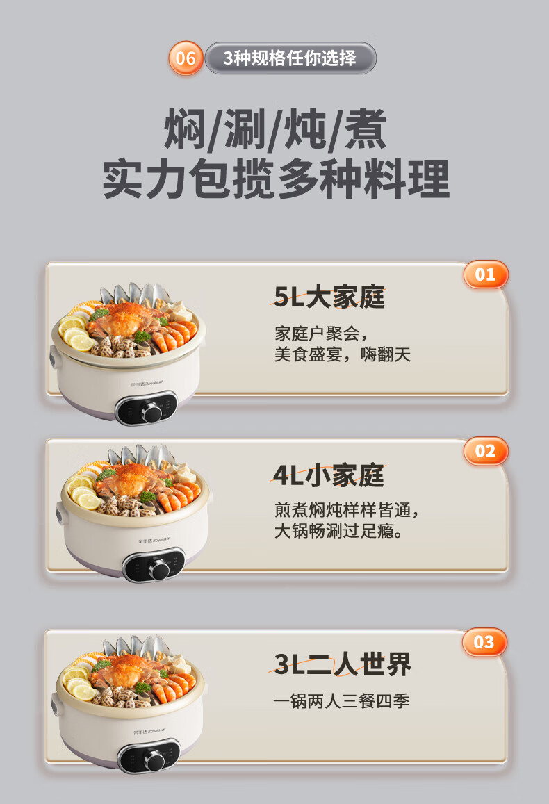 荣事达(Royalstar)电火锅电煮锅3L分体式可拆洗家用多功能锅2-5人钛涂层涮肉火锅专用锅不粘电热锅RHG-30M1
