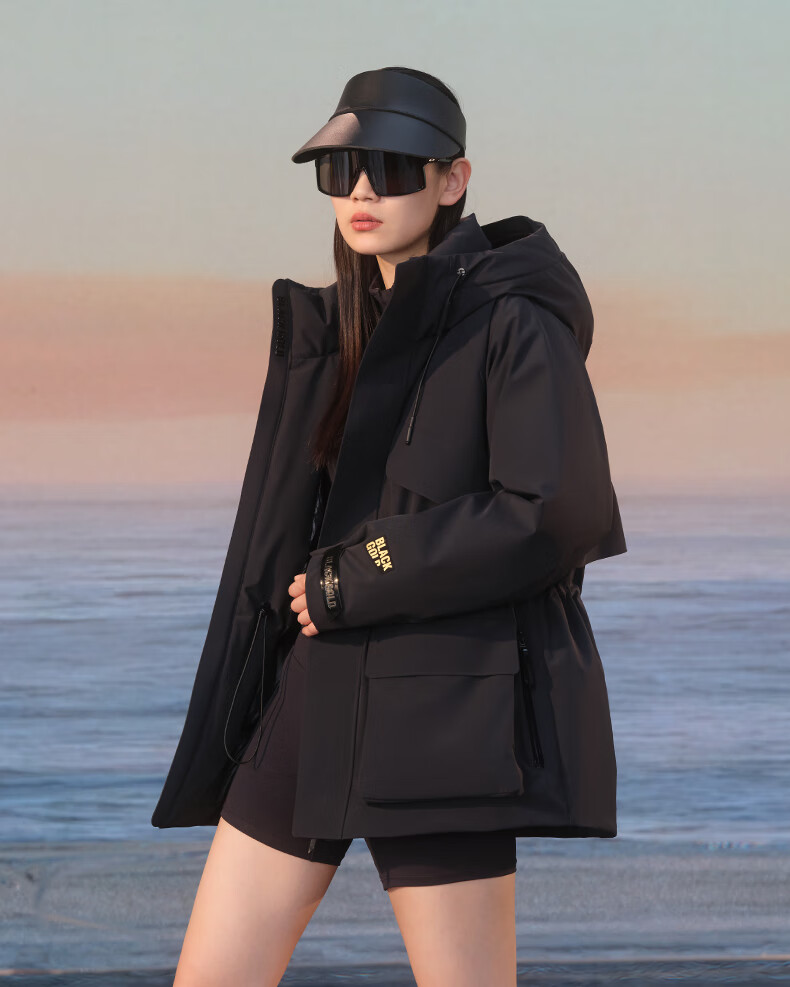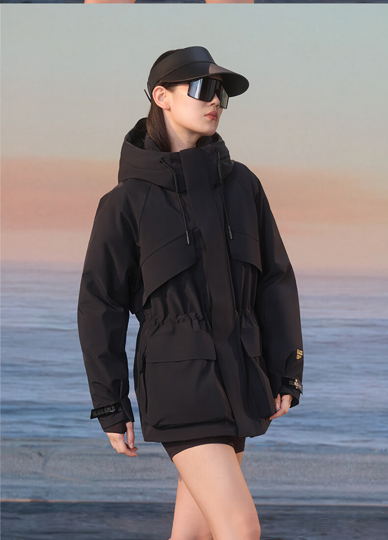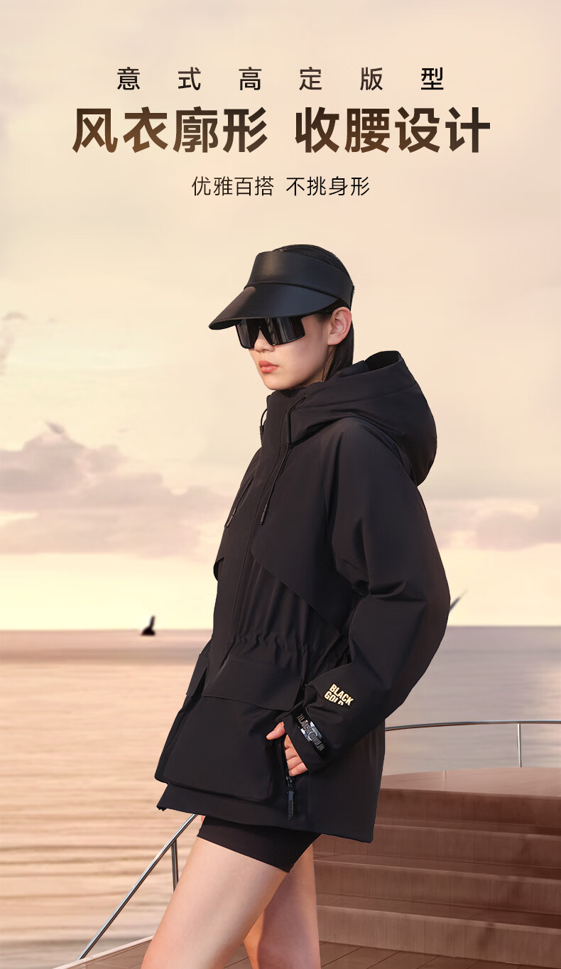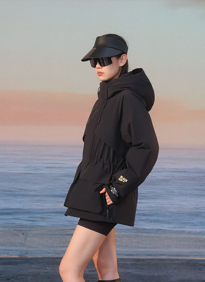 高梵风衣壳4.0五分奢华户外鹅绒服【杨幂同款】女士短款羽绒服 黑色 S