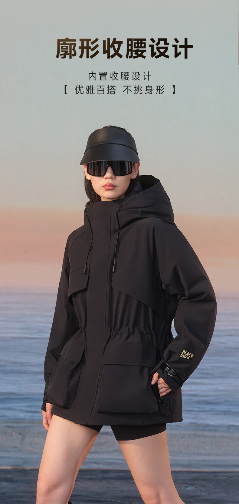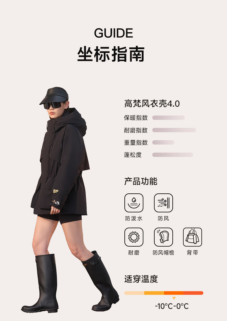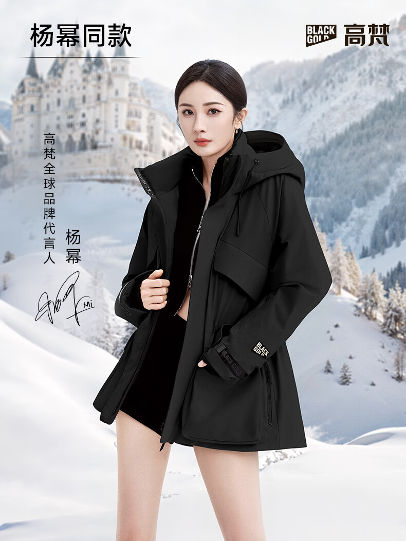 高梵风衣壳4.0五分奢华户外鹅绒服【杨幂同款】女士短款羽绒服 黑色 S