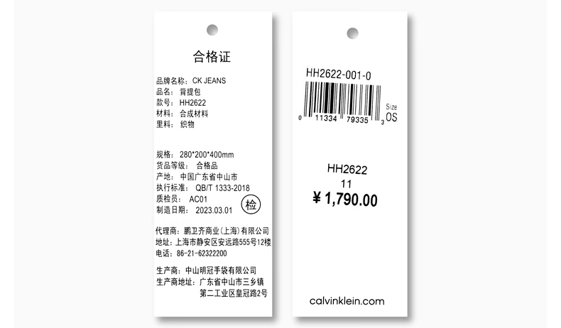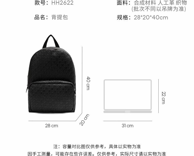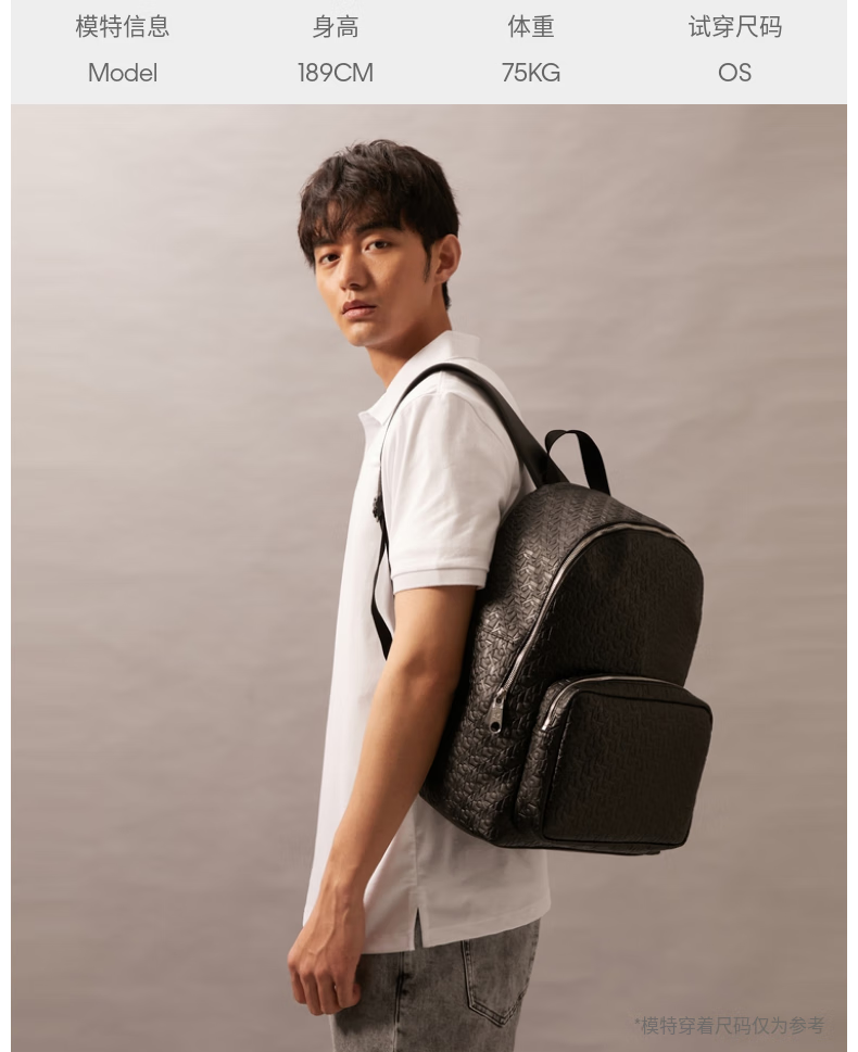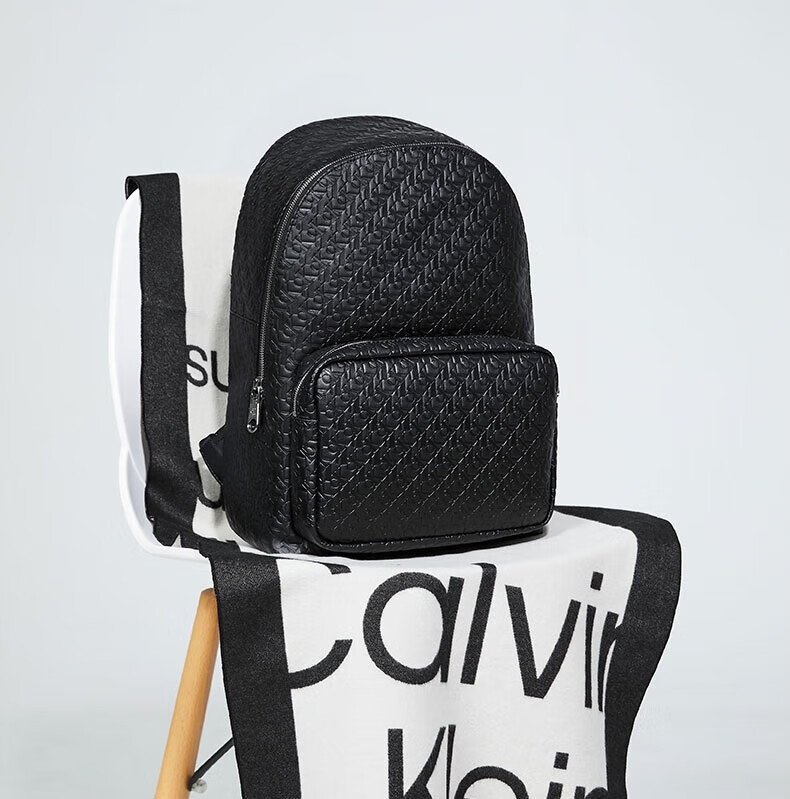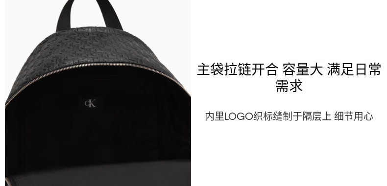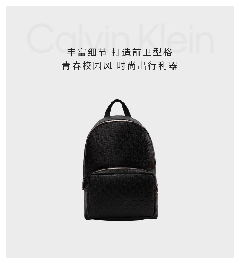Calvin KleinJeans男士休闲通勤校园风满版ck压印字母拉链大容量双肩包礼物