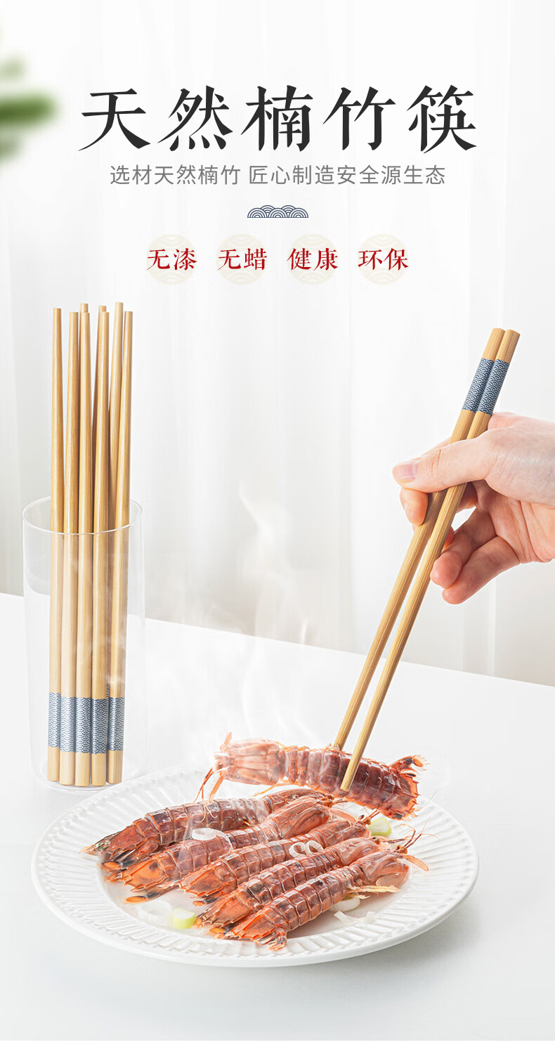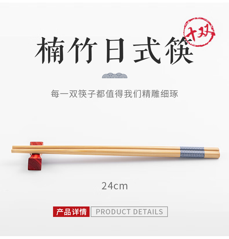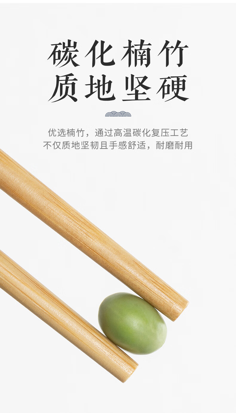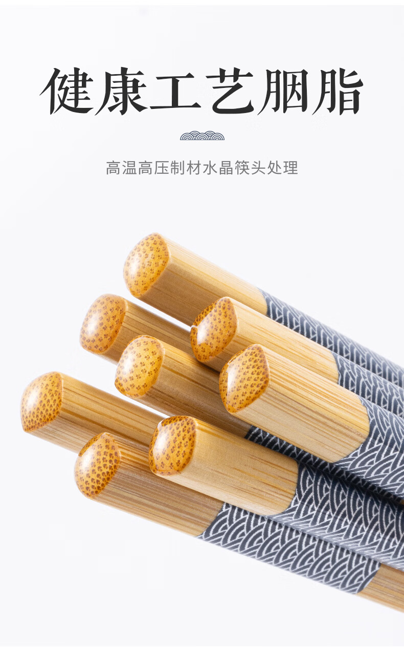 千年恋木印花竹楠筷高档防霉防滑家用健康筷子酒店餐厅筷子 24cm水晶头10双装【小祥云】