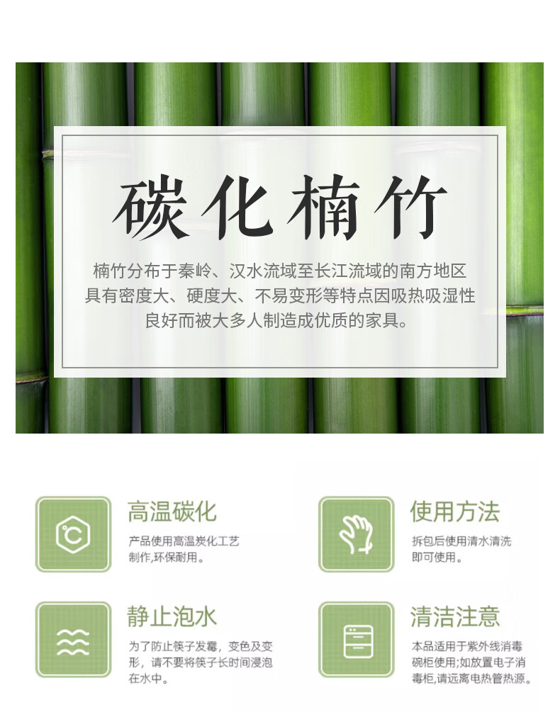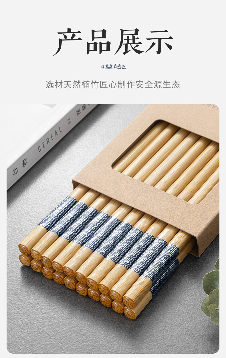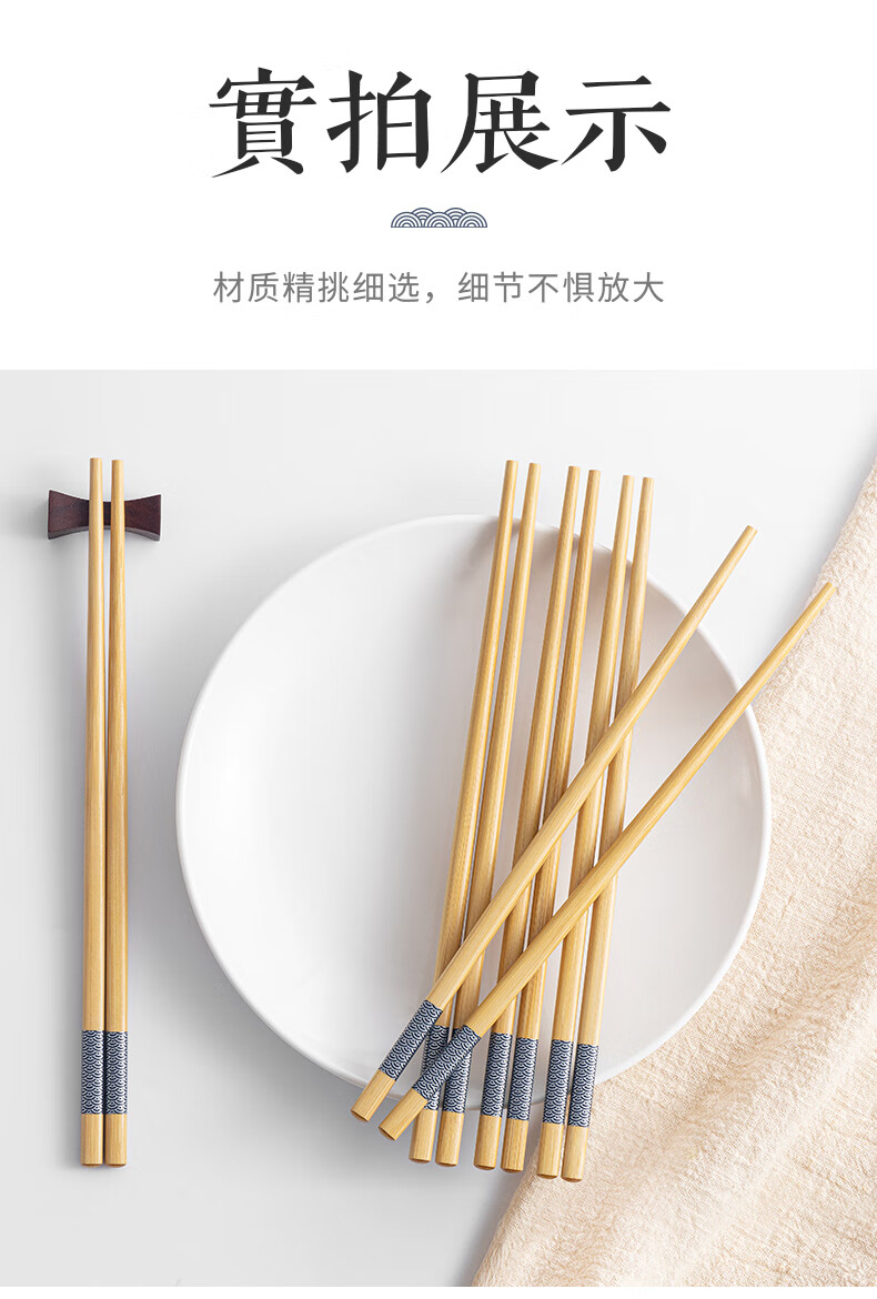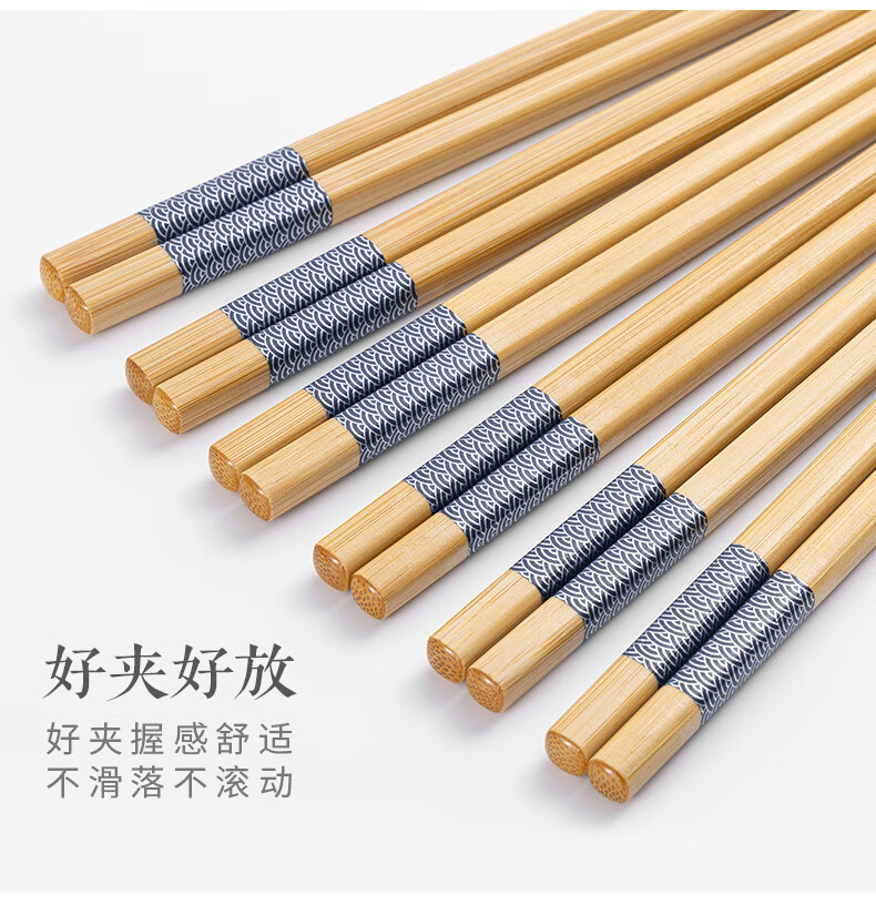 千年恋木印花竹楠筷高档防霉防滑家用健康筷子酒店餐厅筷子 24cm水晶头10双装【小祥云】