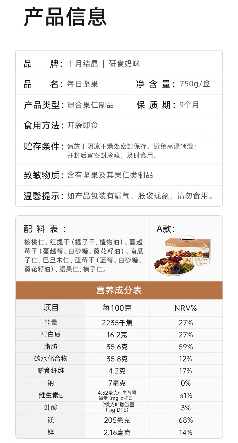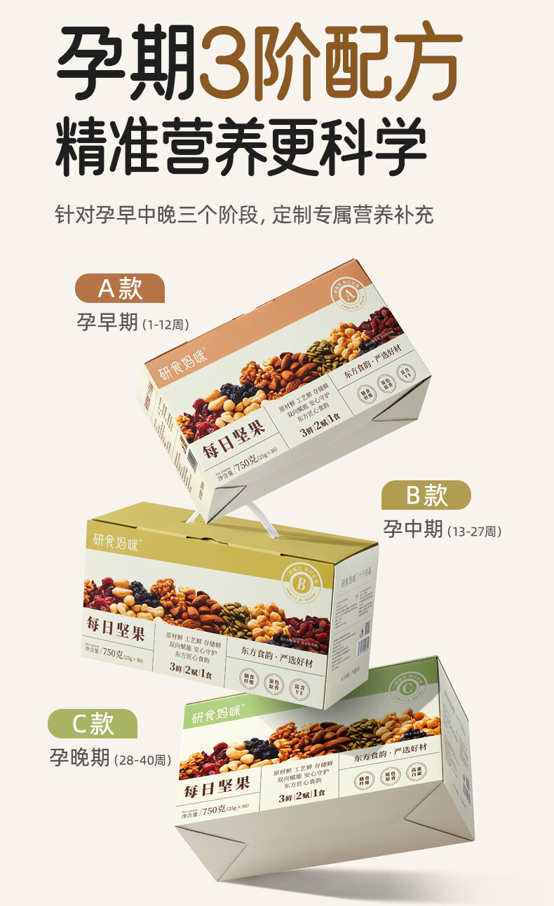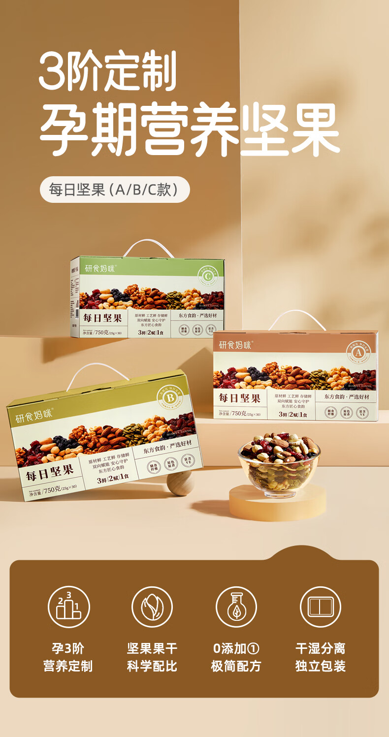 研食妈咪十月结晶每日坚果750g/30袋 坚果炒货孕妇零食混合坚果礼盒送礼
