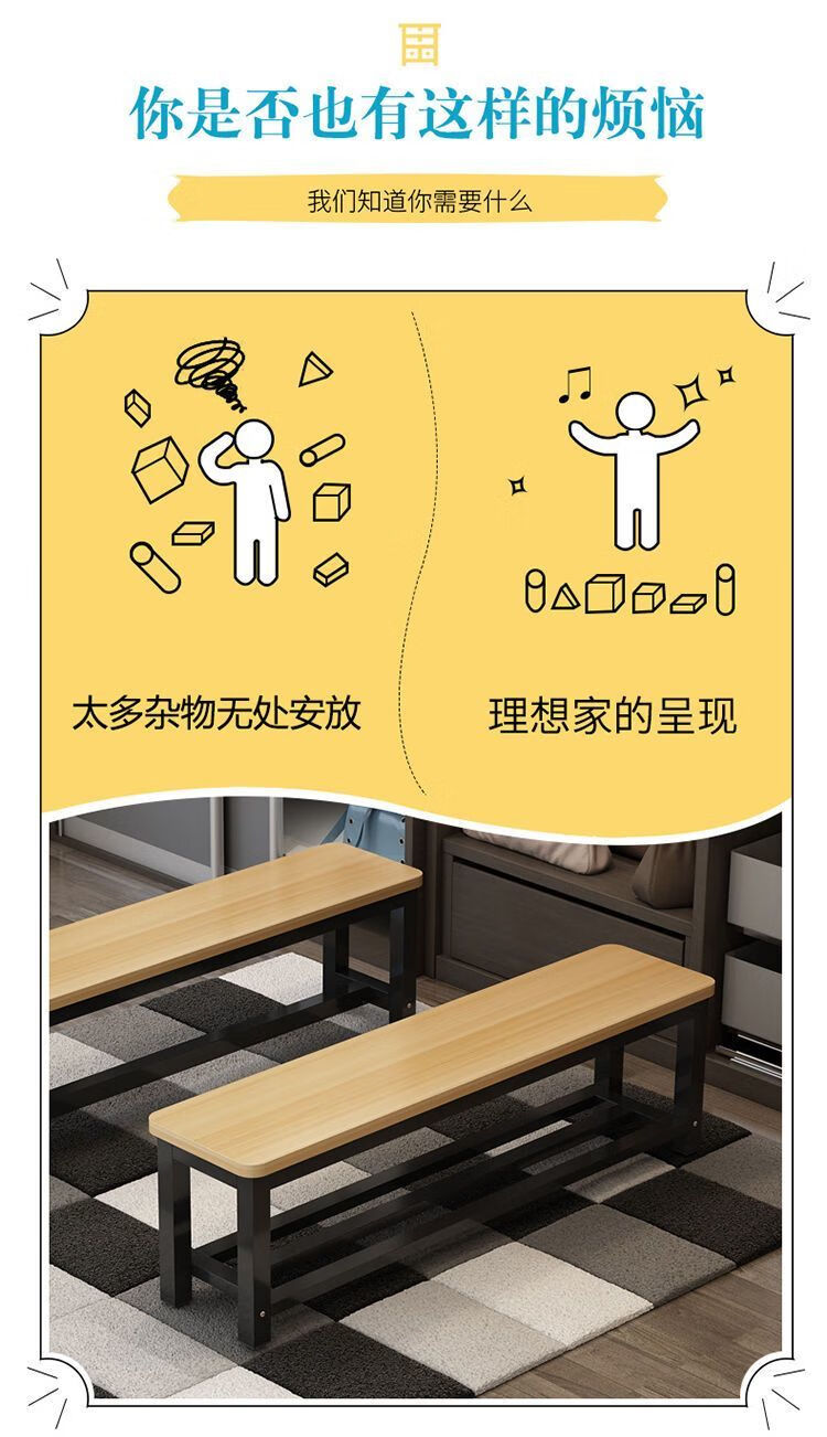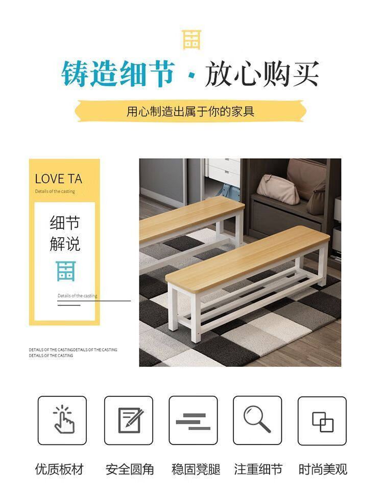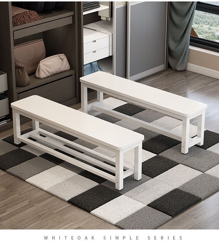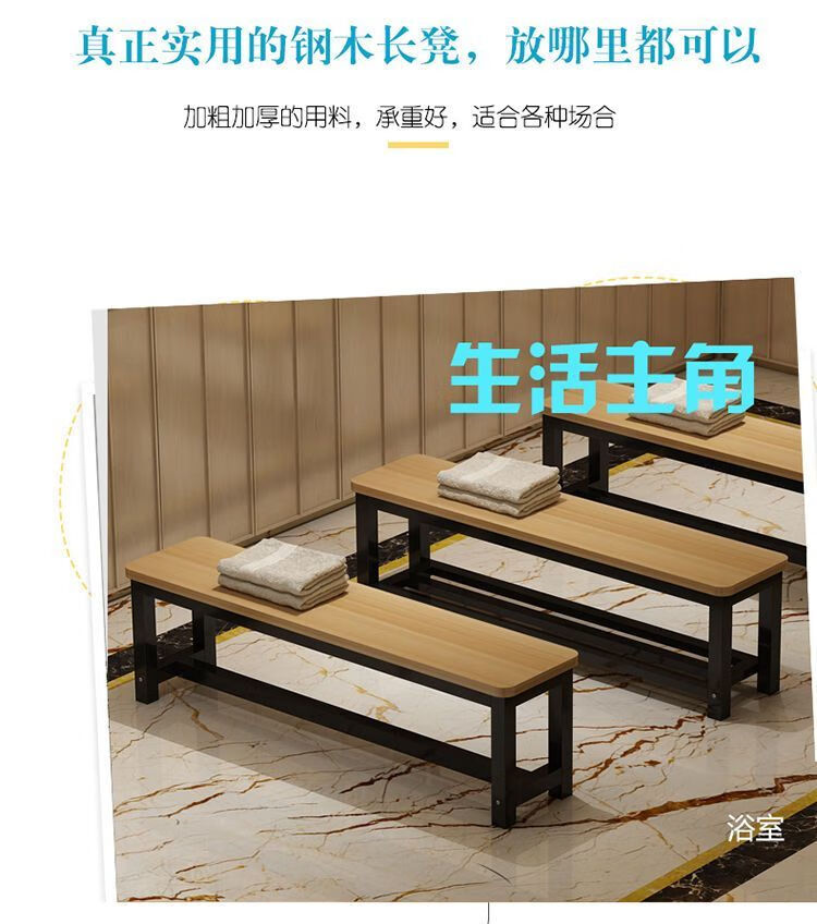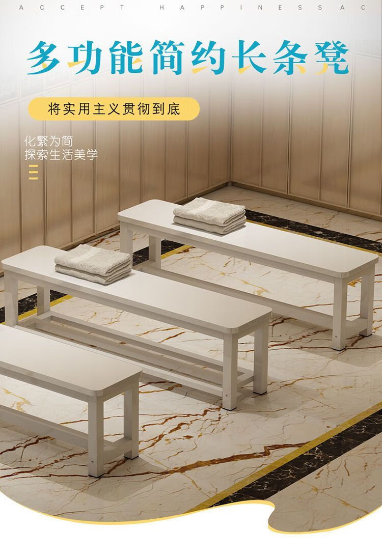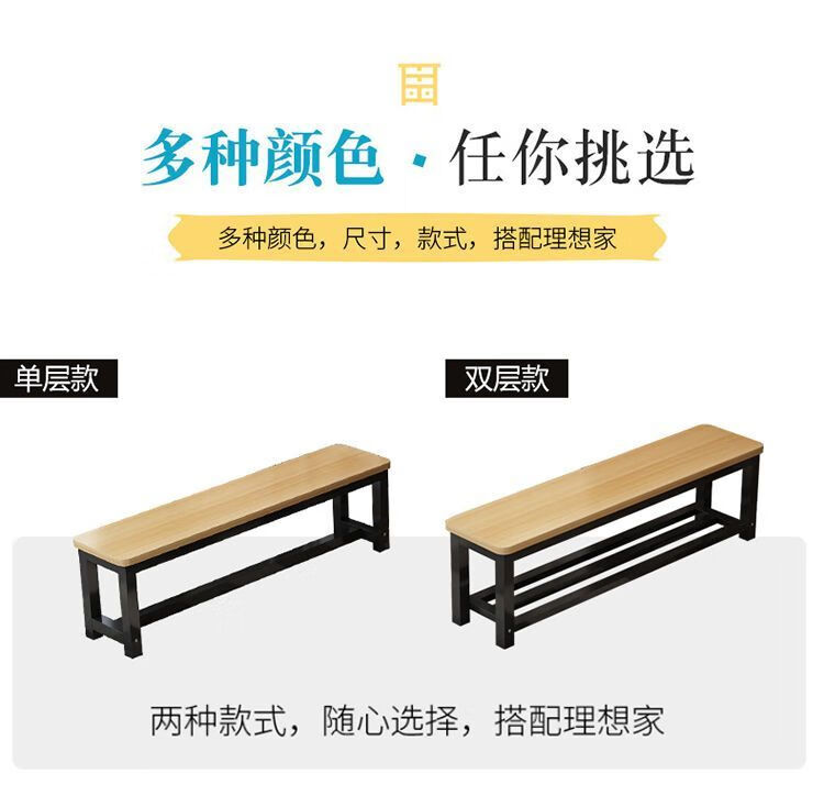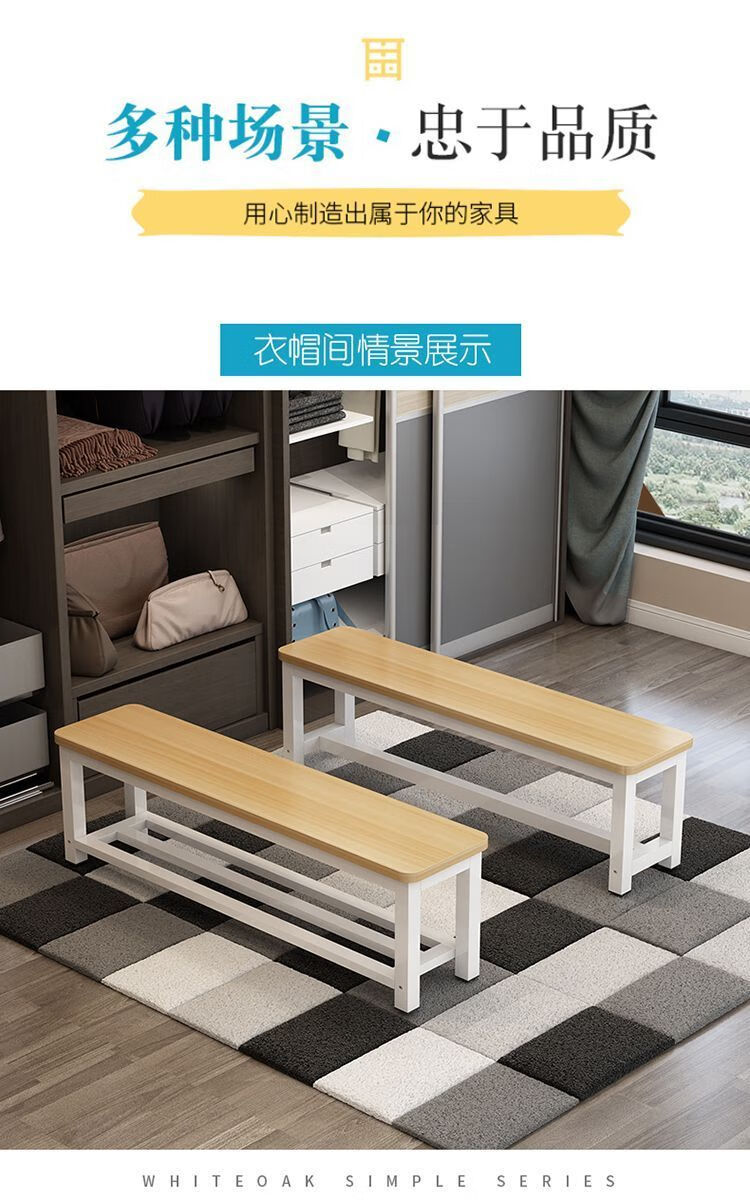 弘星隆长凳木质长条凳户外长板凳更衣室坐凳商场换鞋凳加宽长椅放鞋凳子 【升级加厚2.5板材】浅胡桃色+白架 加粗单层长60*宽35*高45cm