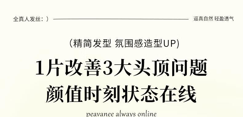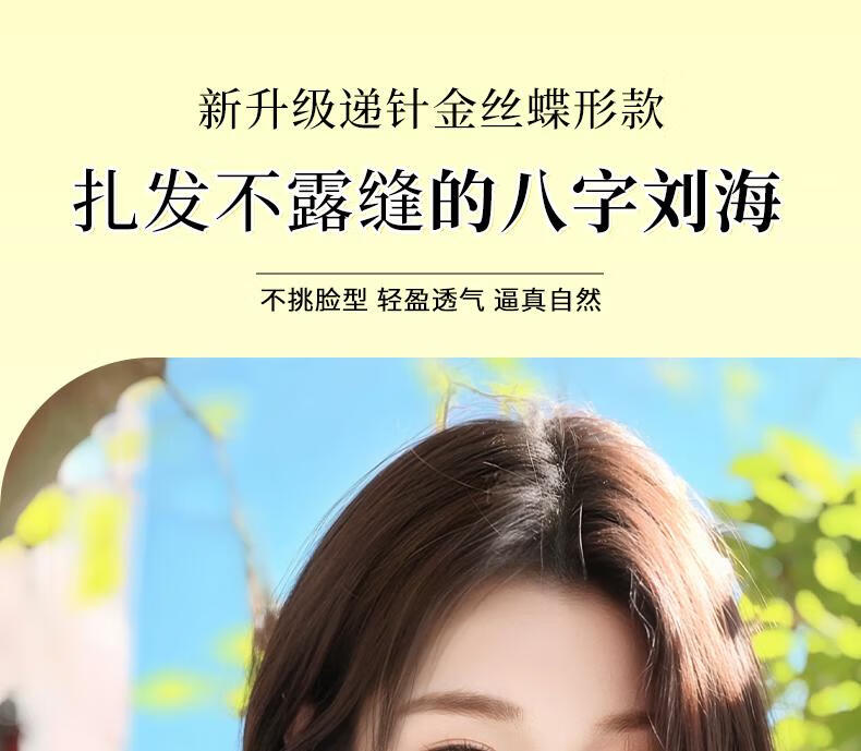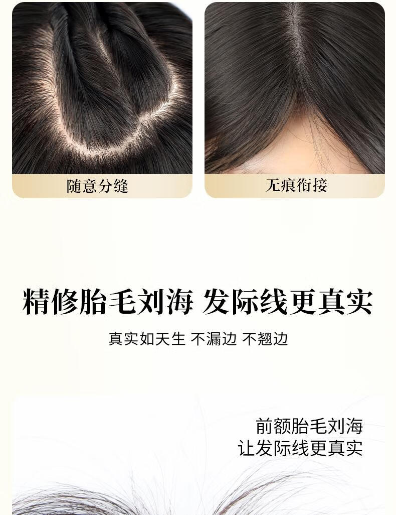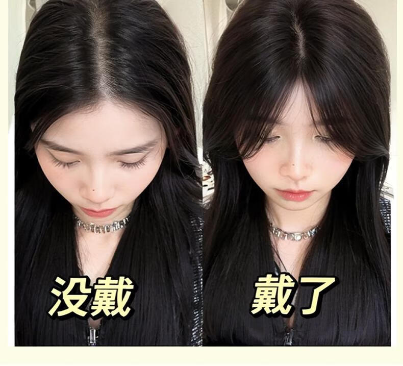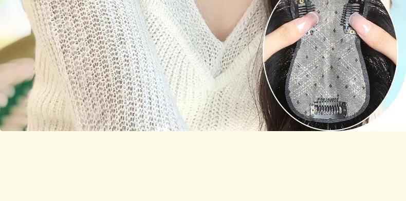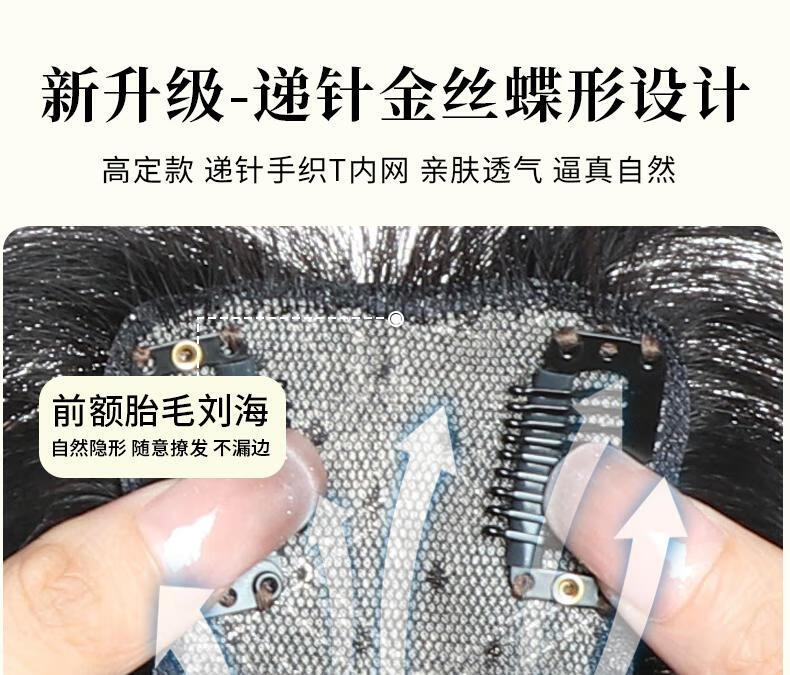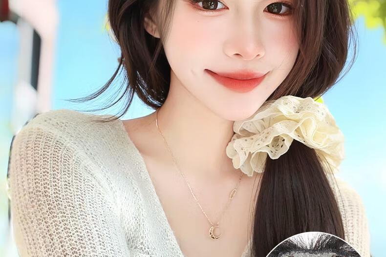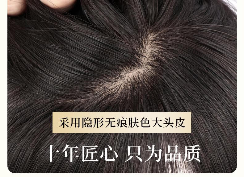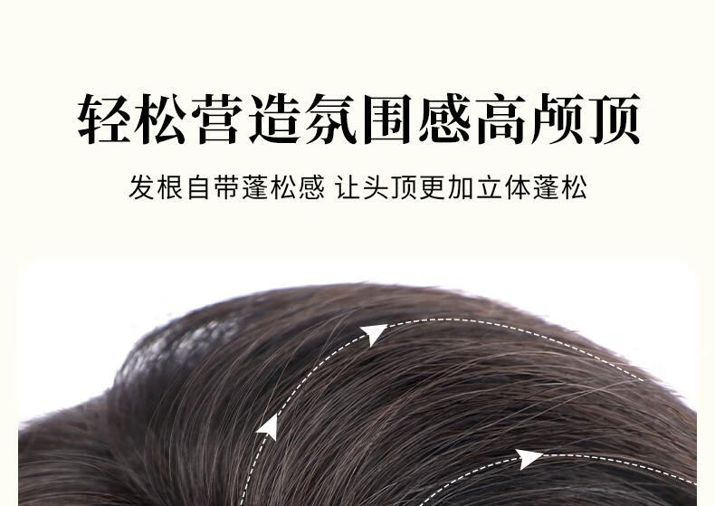天空树假发女金丝波点氛围感刘海真发遮白发补发片透气隐形高颅顶假发片 【福袋网】八字款 7*11自然黑 25cm