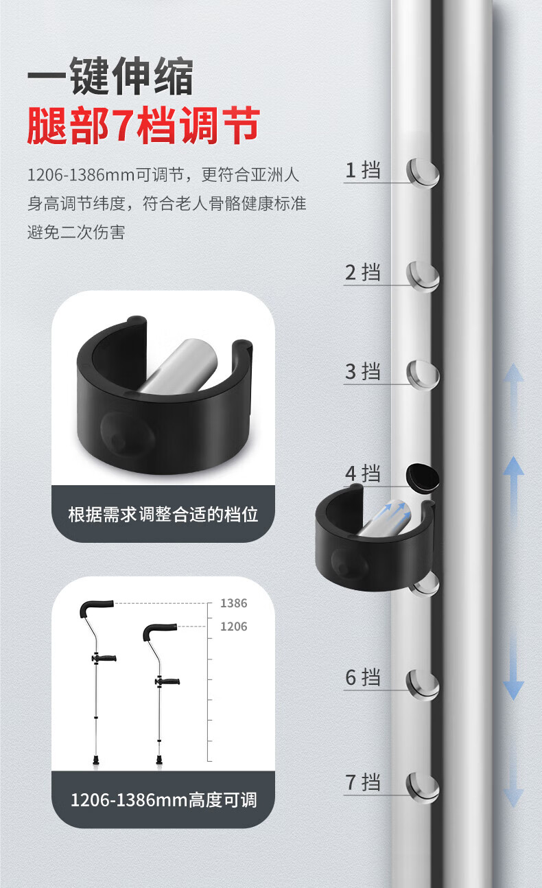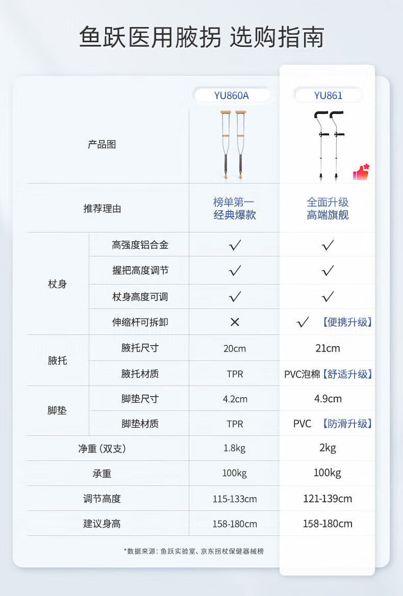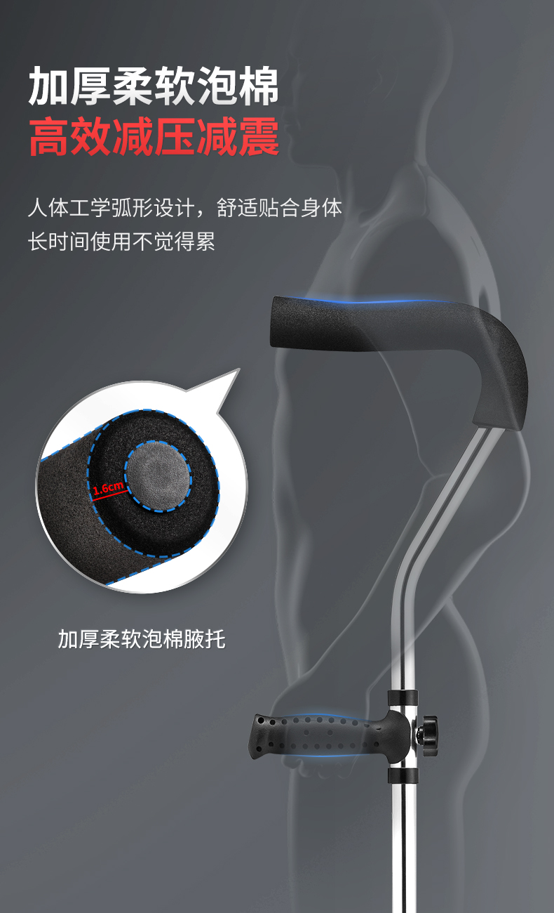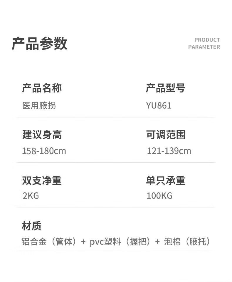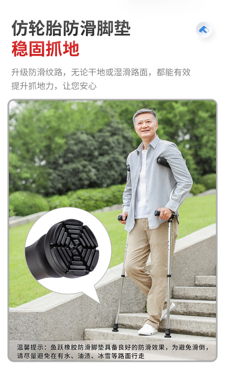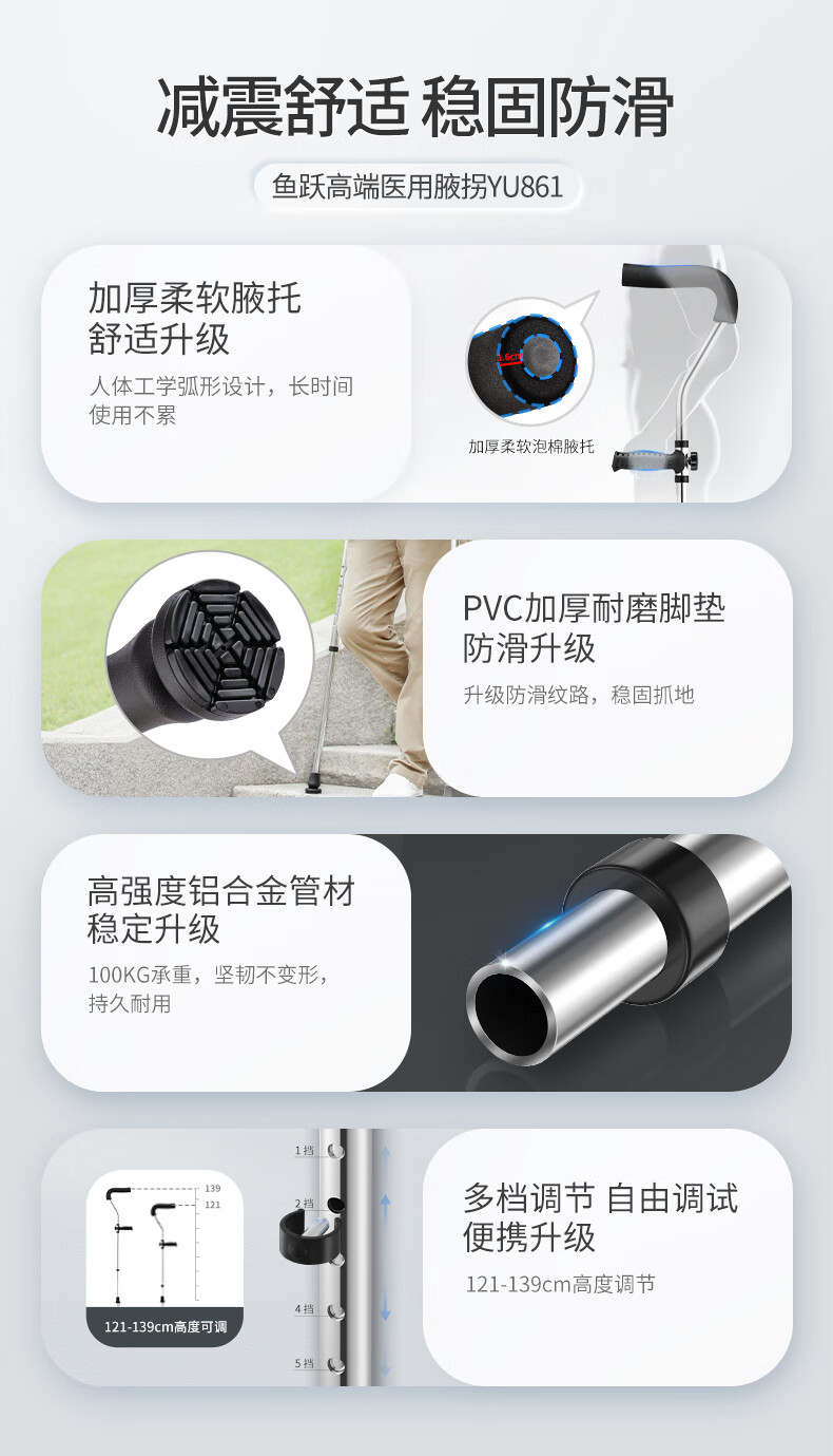 鱼跃(Yuwell) 医用腋下拐杖老人骨折助行器加厚可调节手杖双拐高端双支YU861