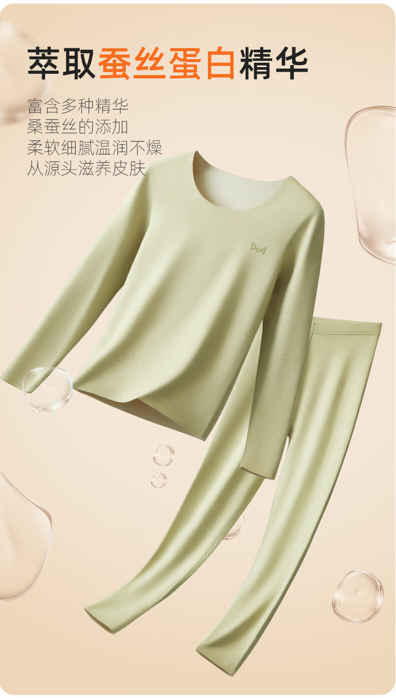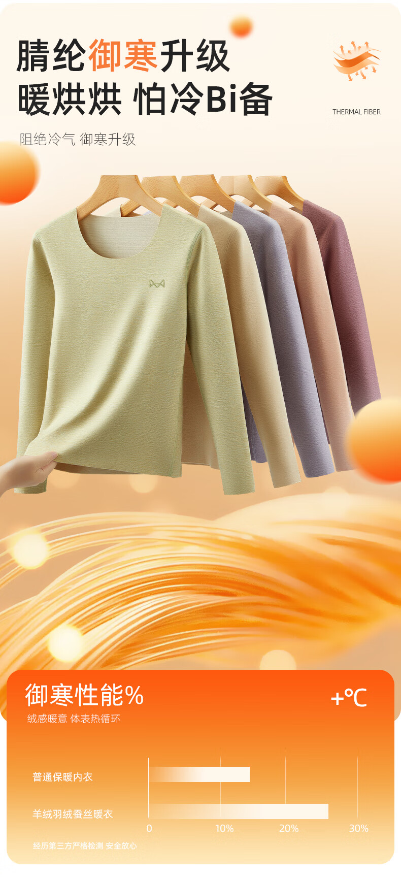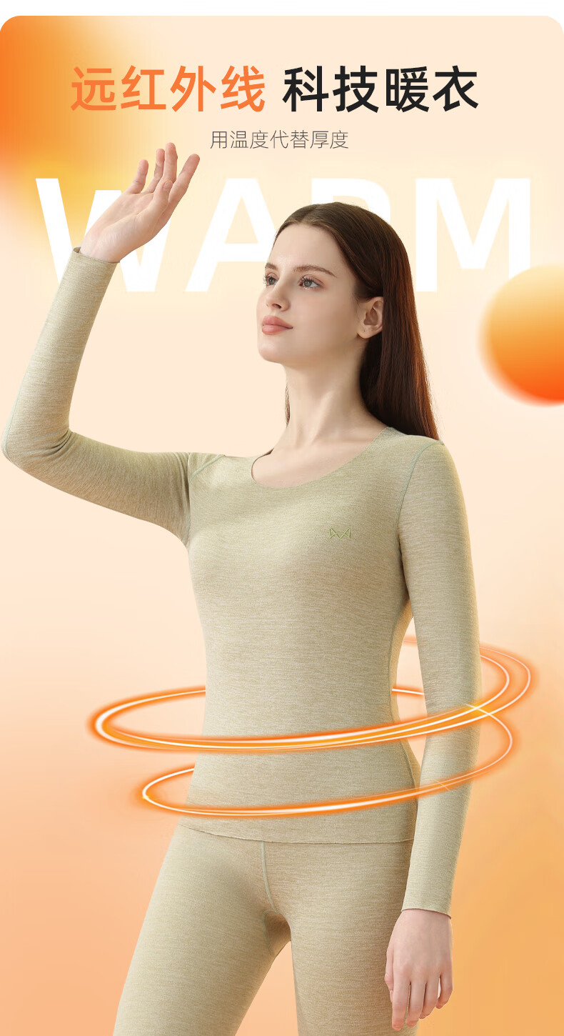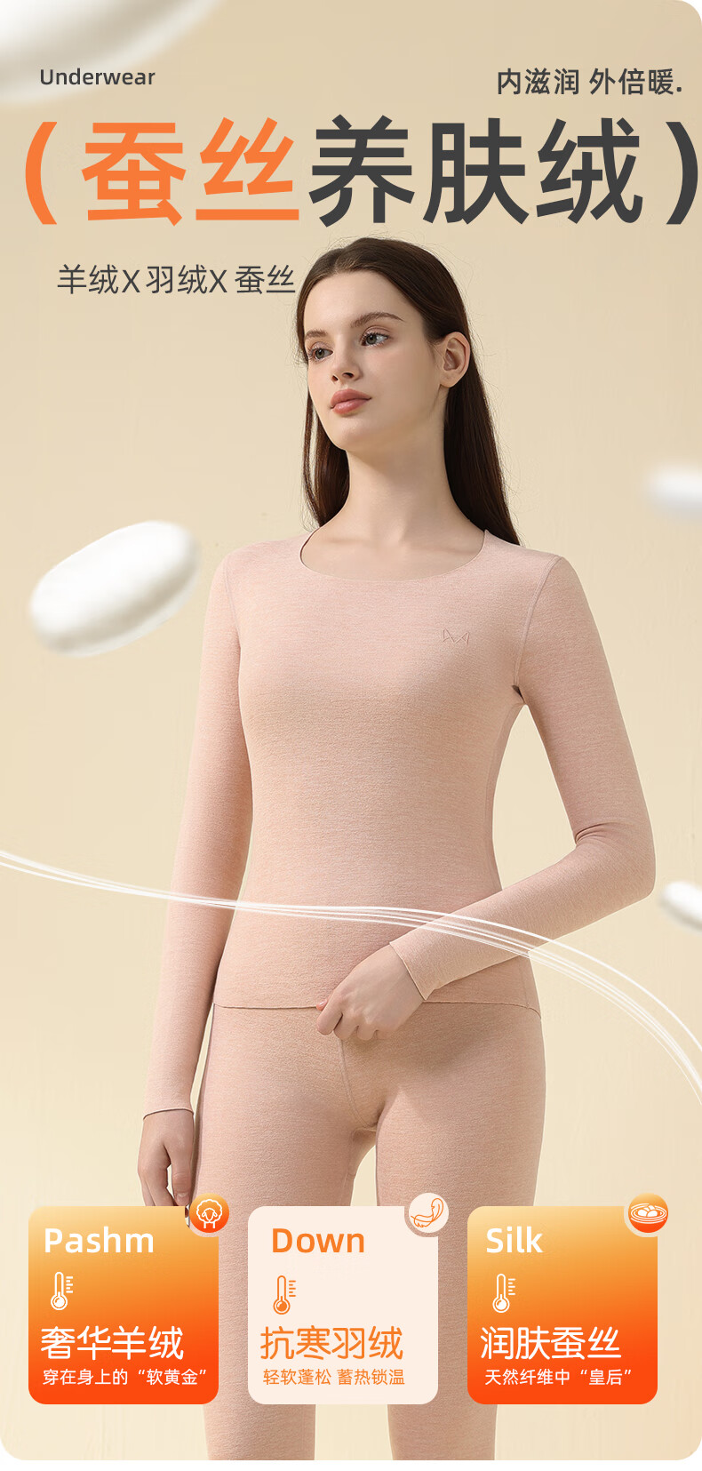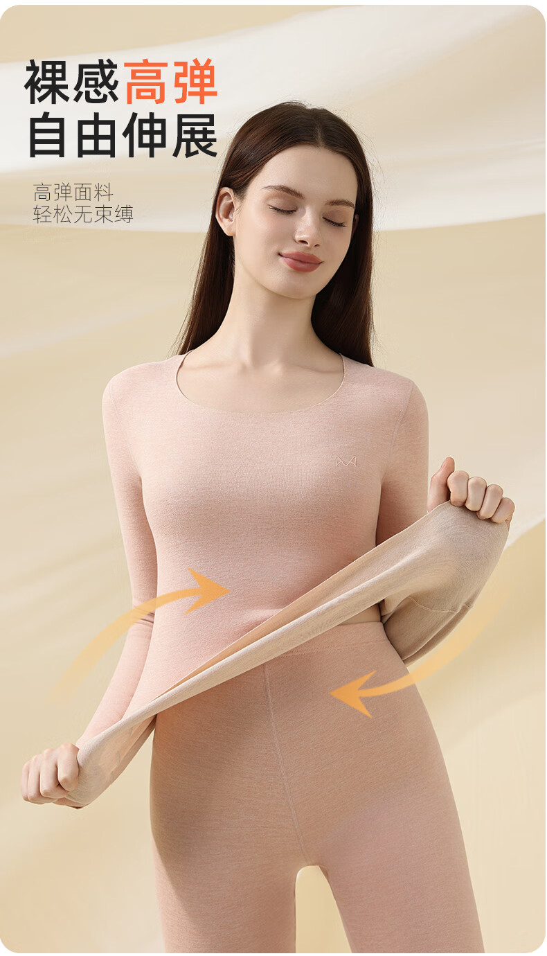 猫人(MiiOW)保暖内衣女士秋冬季加绒蓄热薄款无痕亲肤打底衣抗菌秋衣秋裤套装 炫彩肤 3XL 【建议体重160-170斤】