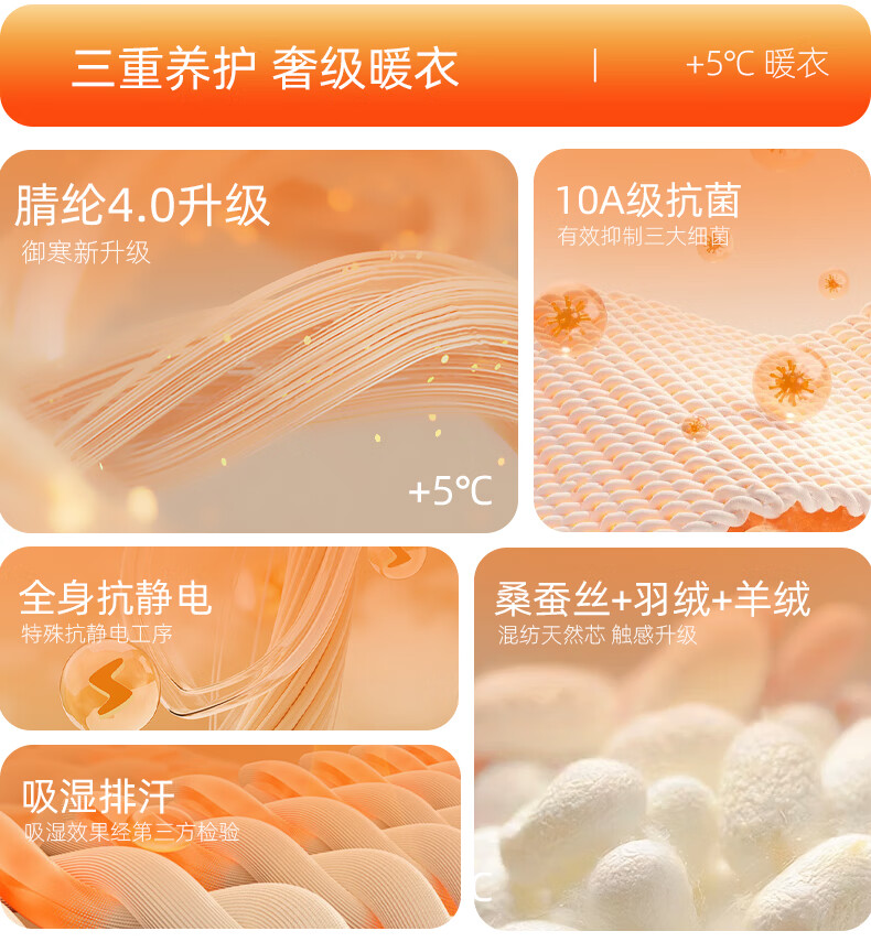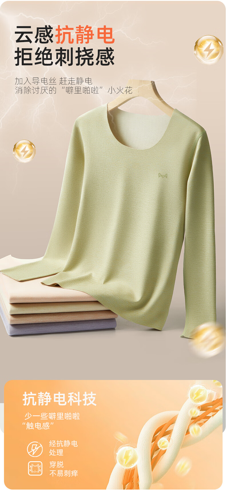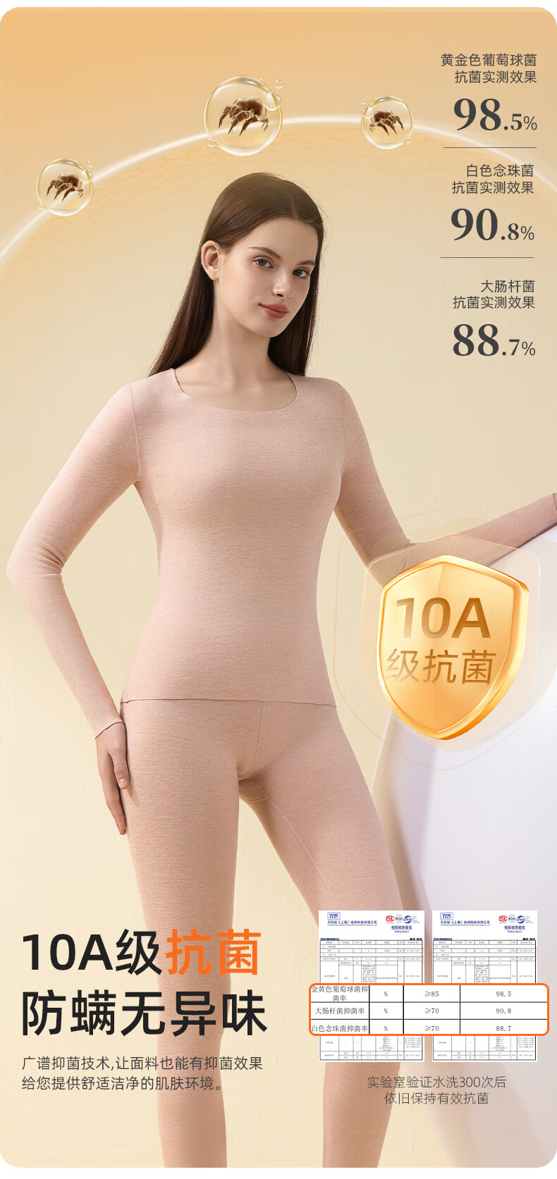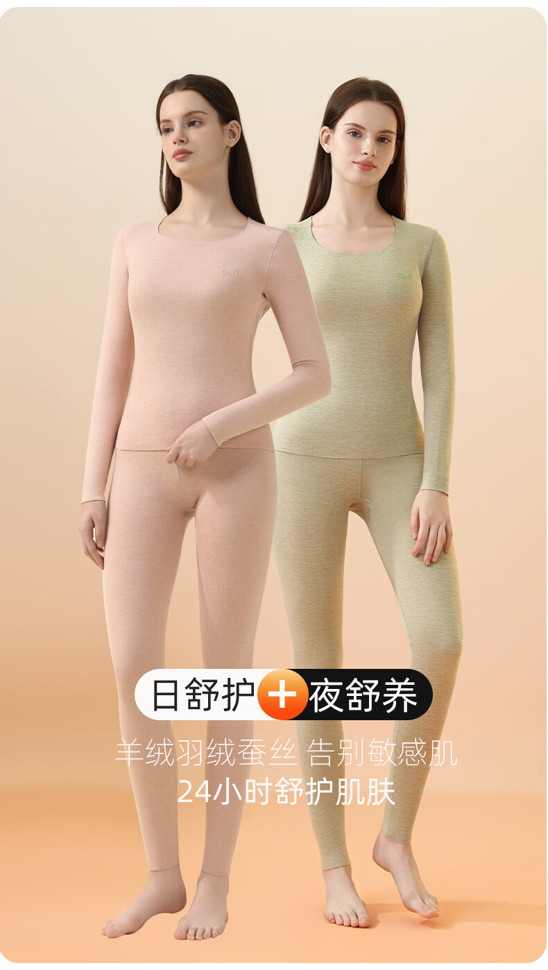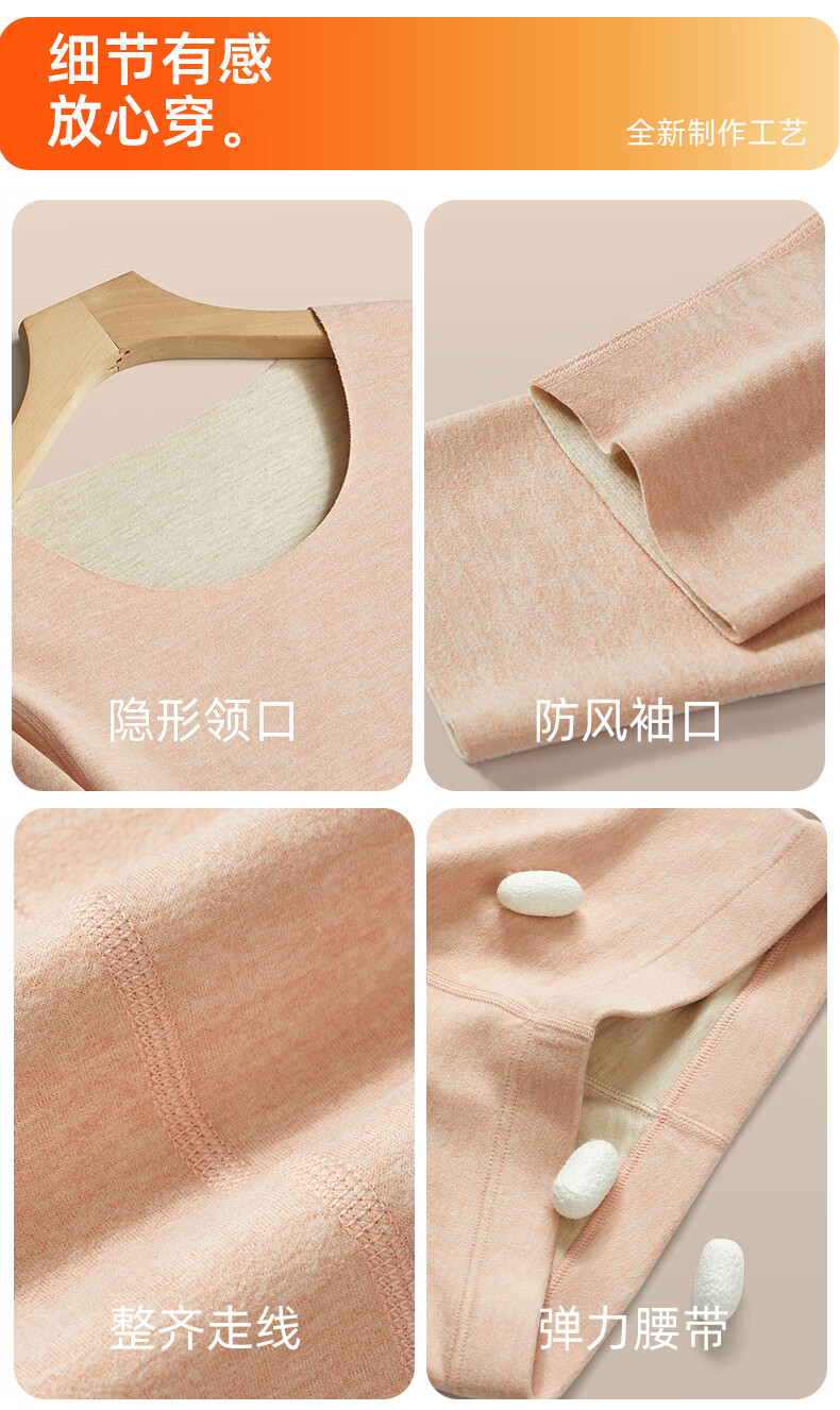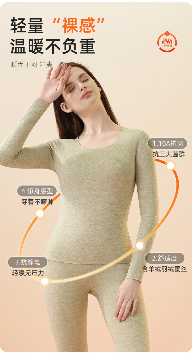 猫人(MiiOW)保暖内衣女士秋冬季加绒蓄热薄款无痕亲肤打底衣抗菌秋衣秋裤套装 炫彩肤 3XL 【建议体重160-170斤】