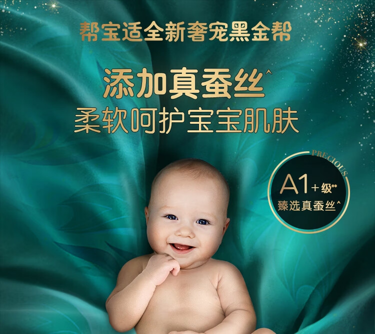 帮宝适黑金帮纸尿裤M68片(6-11kg)中码尿裤尿不湿蚕丝 超薄透气