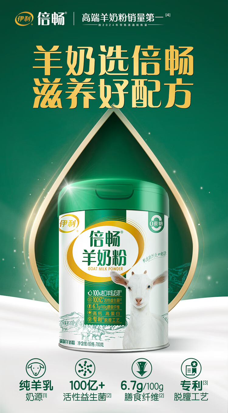 伊利倍畅 纯羊乳奶源装羊奶粉罐700g益生菌膳食纤维 高钙 送礼礼盒装 倍畅羊奶粉罐700g礼盒