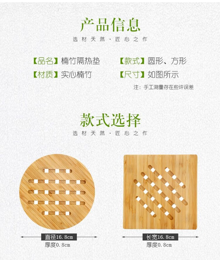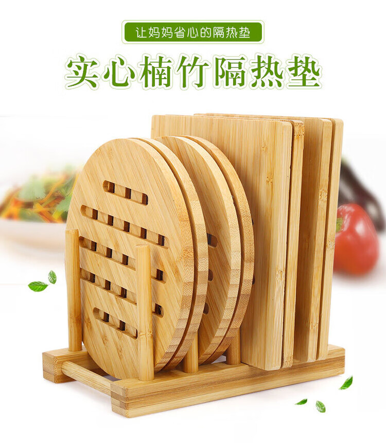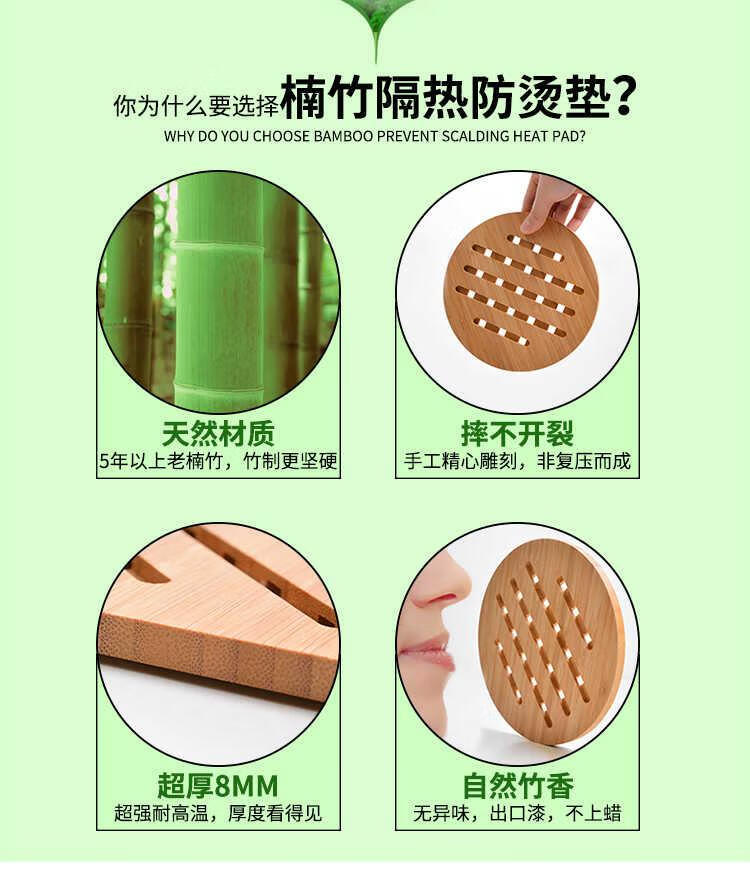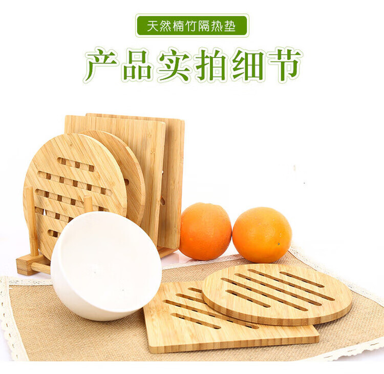 简漾【大号套装】楠竹隔热垫餐桌垫碗垫盘垫子防烫垫子大号砂锅垫木质 【楠竹2个圆形】