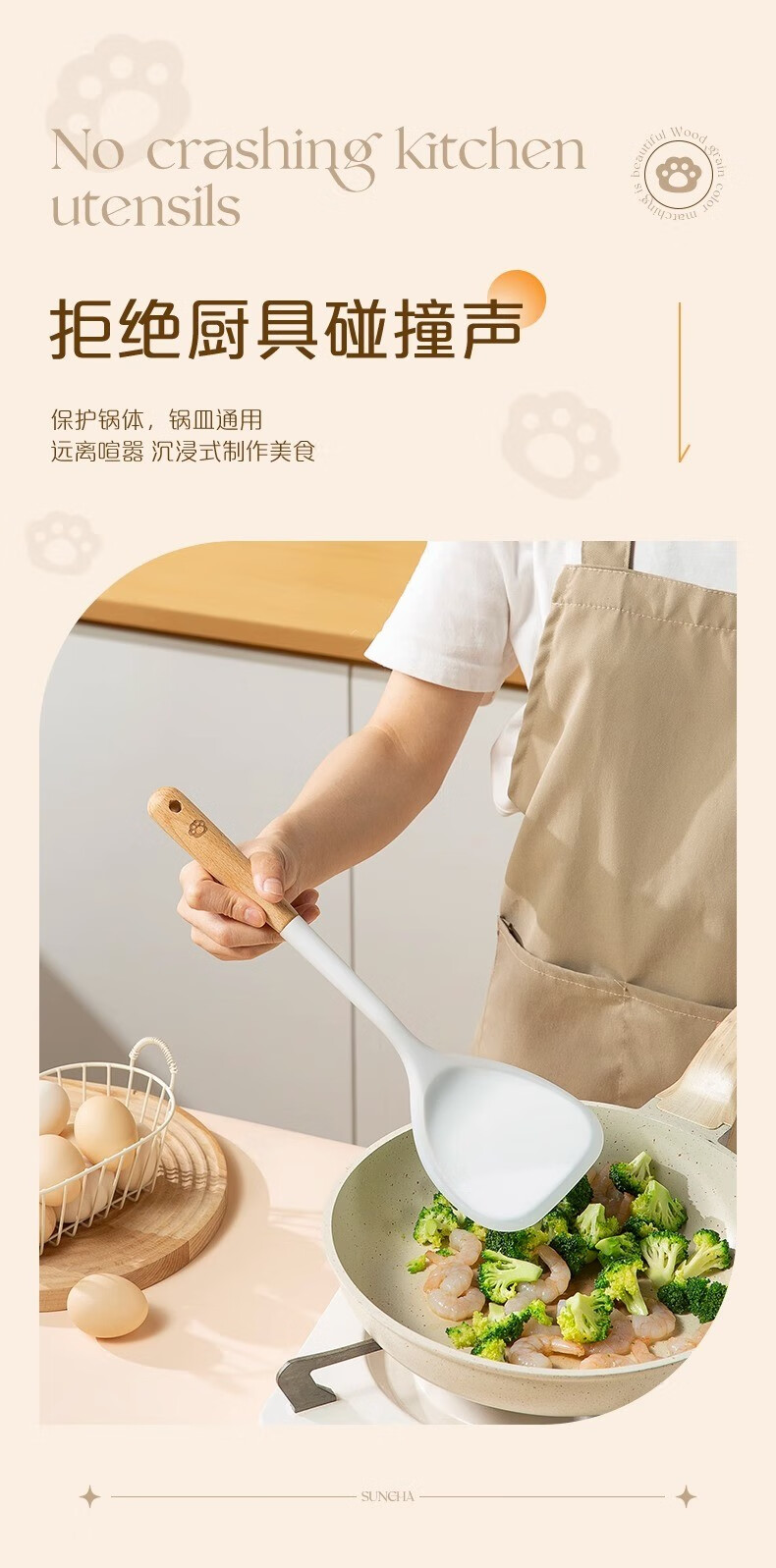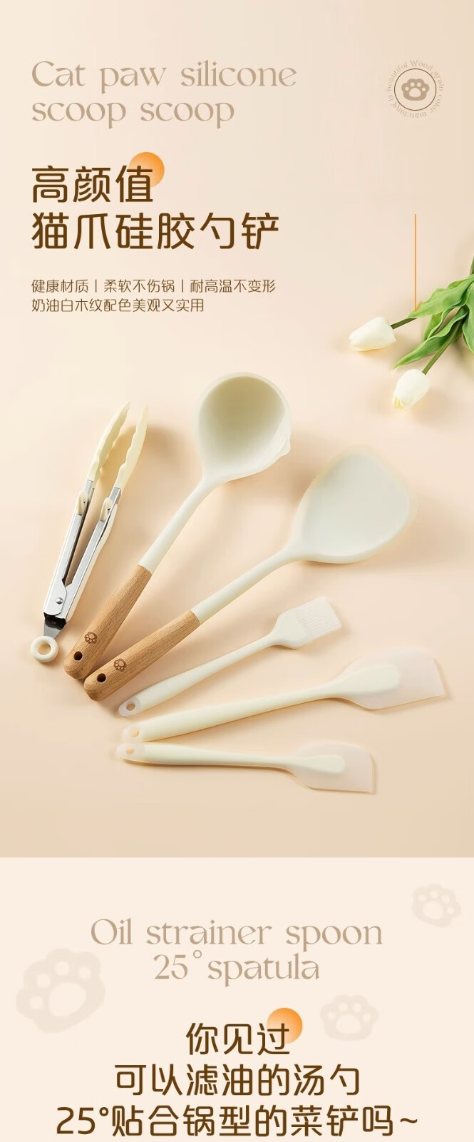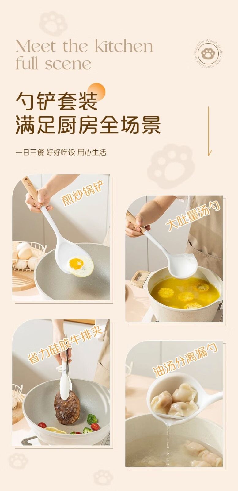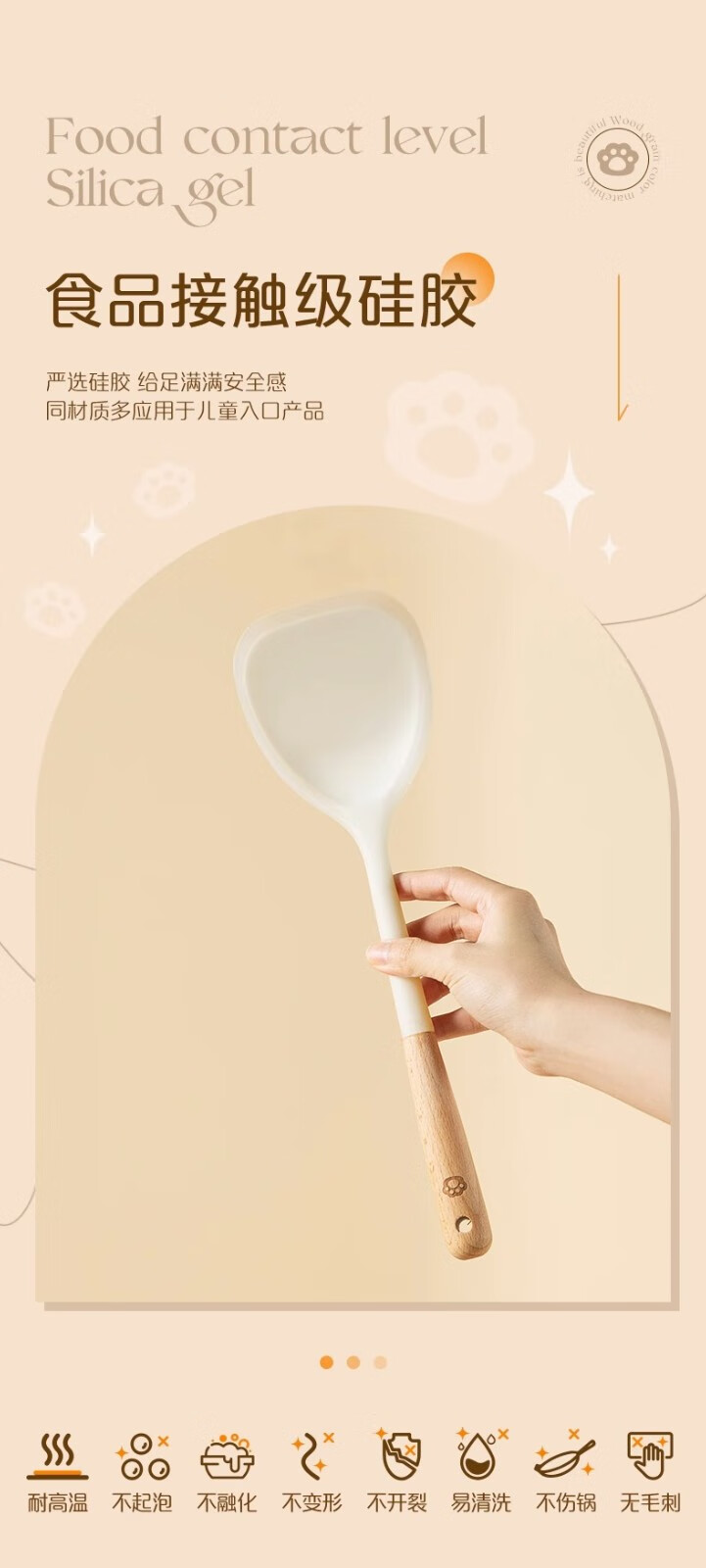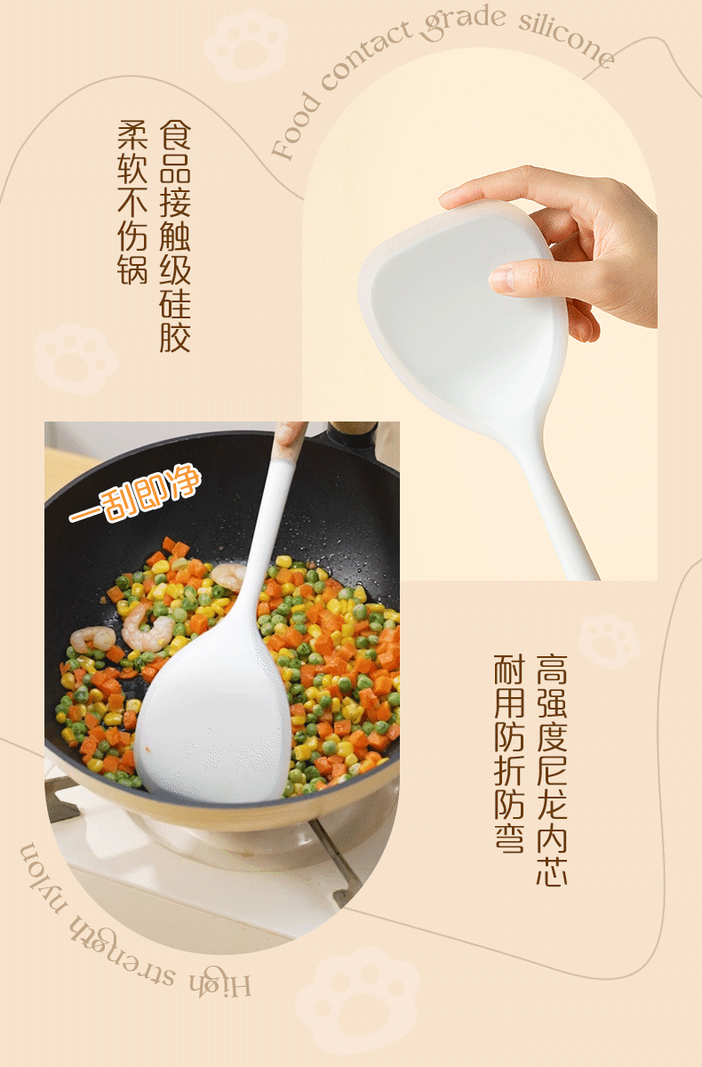 双枪锅铲硅胶铲家用炒菜铲子耐高温食品级汤勺套装不粘锅专用锅铲 纯净白硅胶锅铲-1支