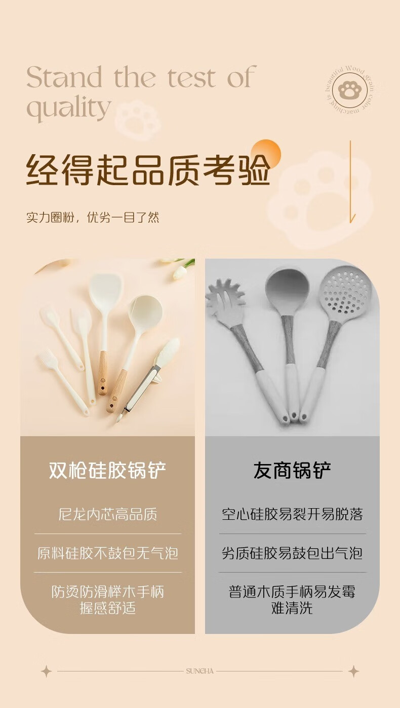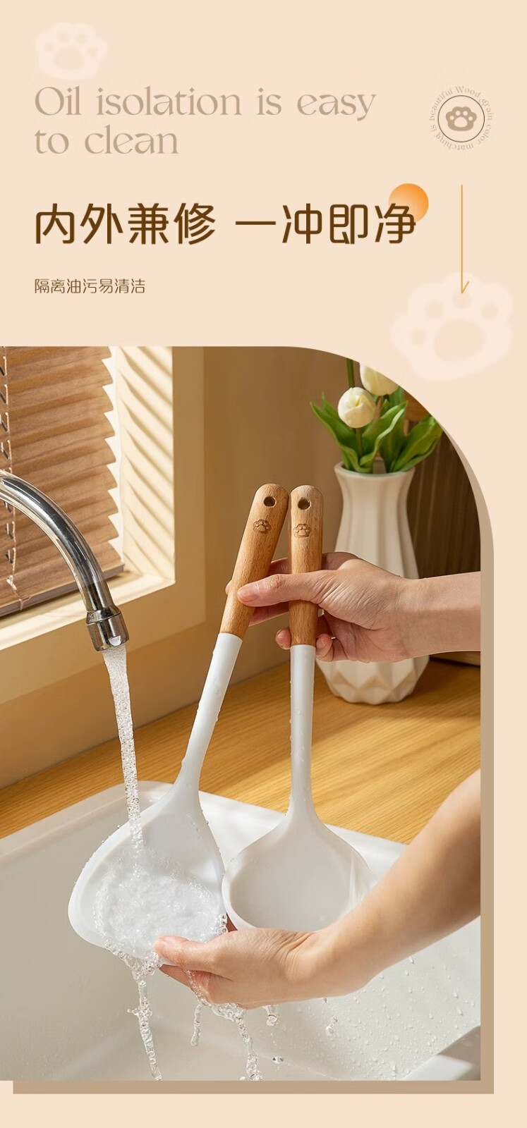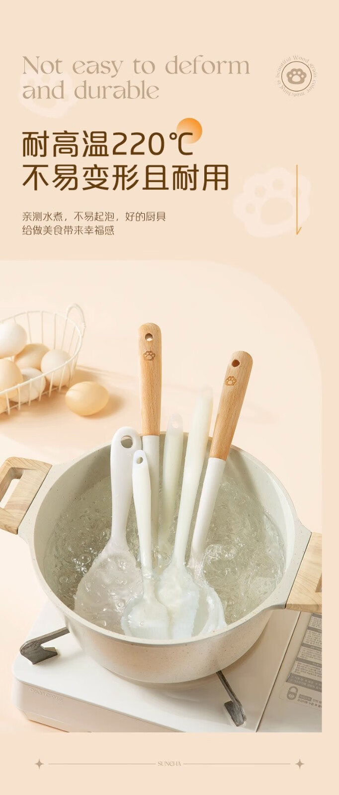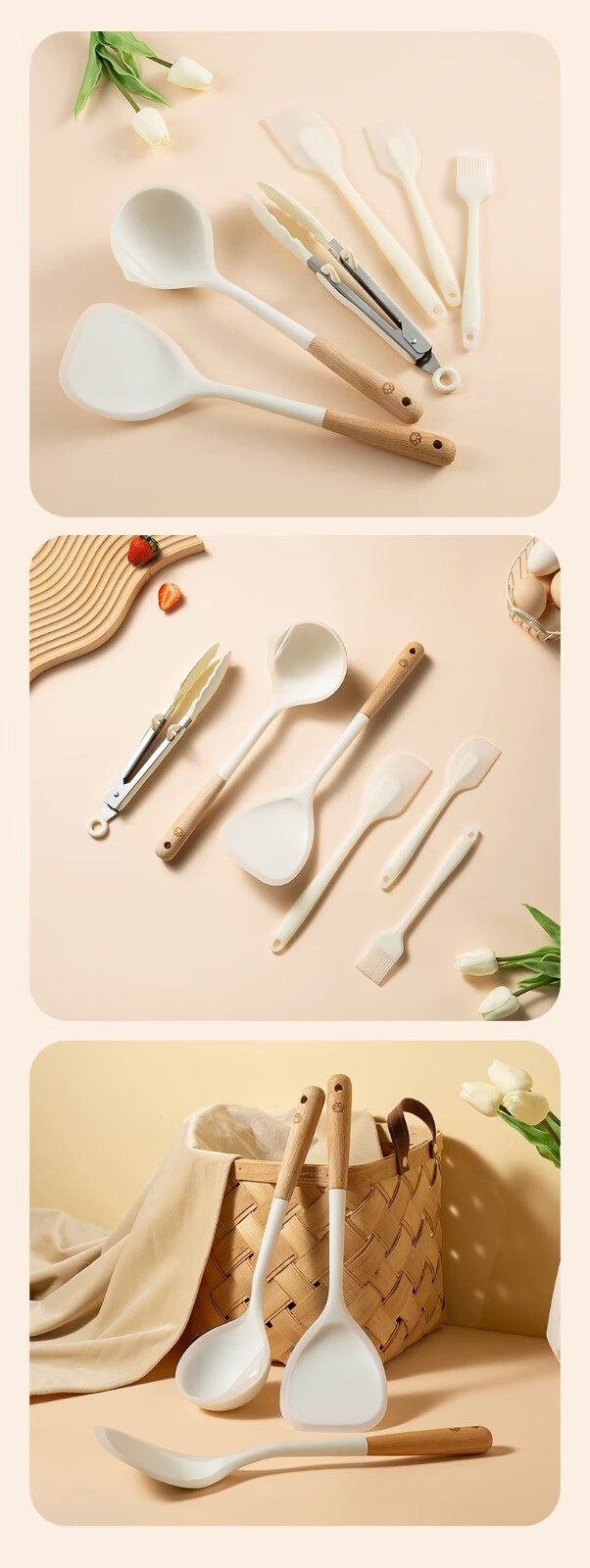 双枪锅铲硅胶铲家用炒菜铲子耐高温食品级汤勺套装不粘锅专用锅铲 纯净白硅胶锅铲-1支