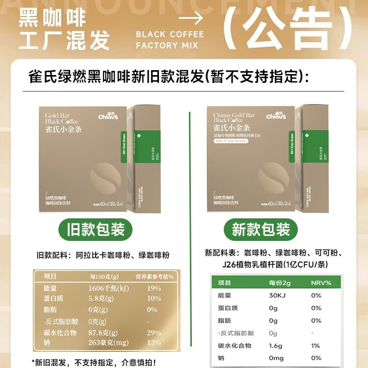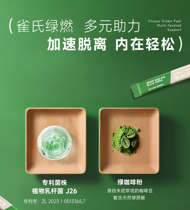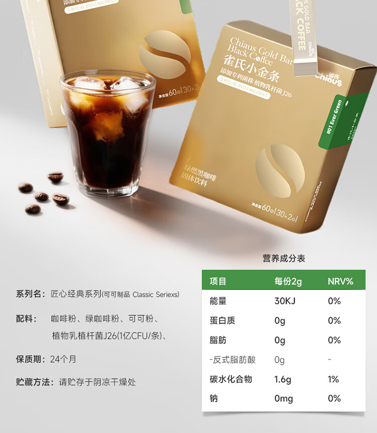雀氏绿燃益生菌黑咖啡冷热双泡速溶0脂肪0蔗糖添加绿原酸健身 绿燃黑咖啡2盒(60袋*2g)