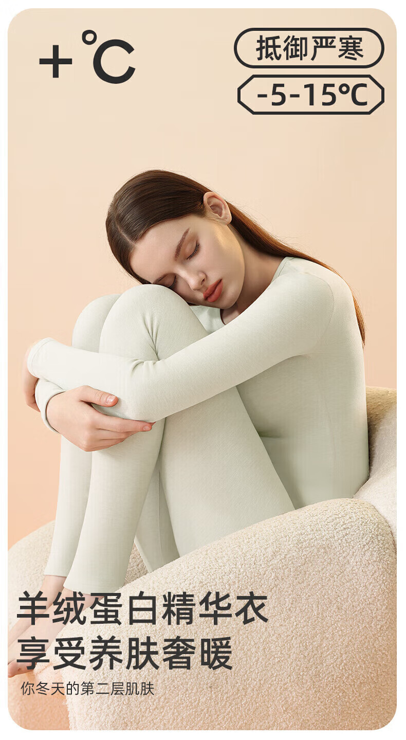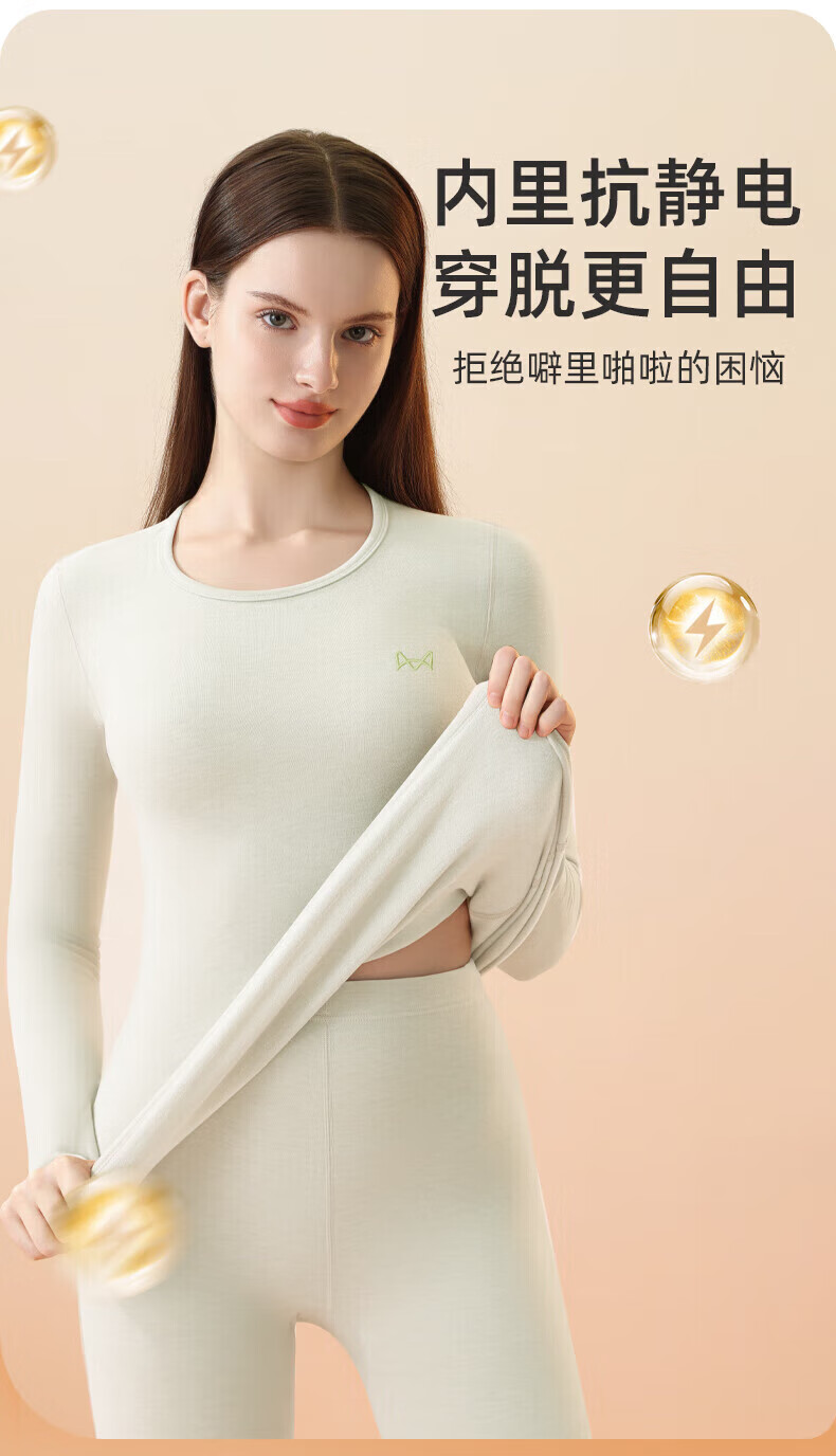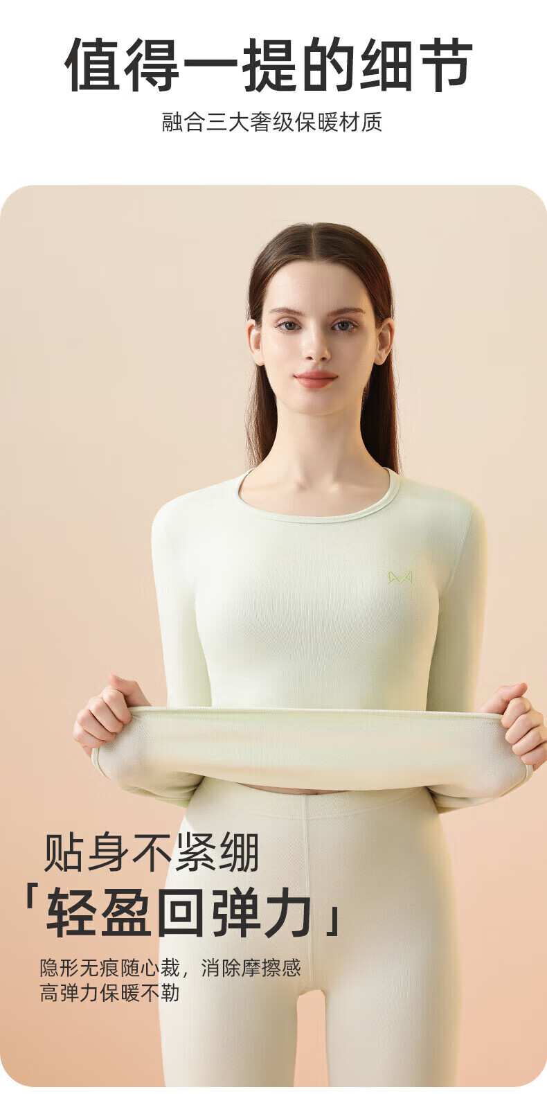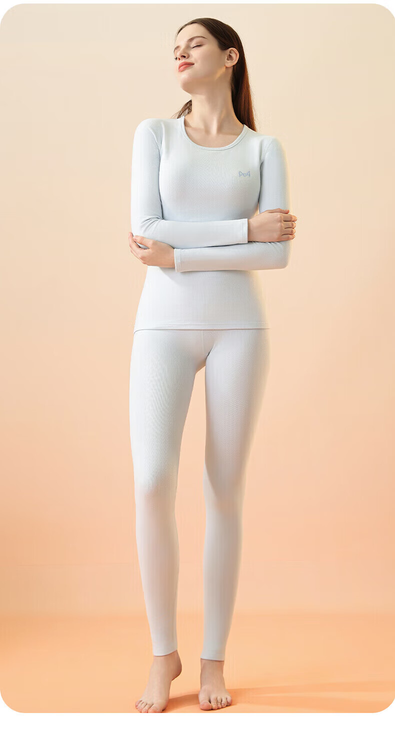 猫人双面磨绒保暖内衣女士秋冬季羊绒发热秋衣秋裤套装加绒加厚打底 炫彩肤 3XL 【建议体重160-170斤】