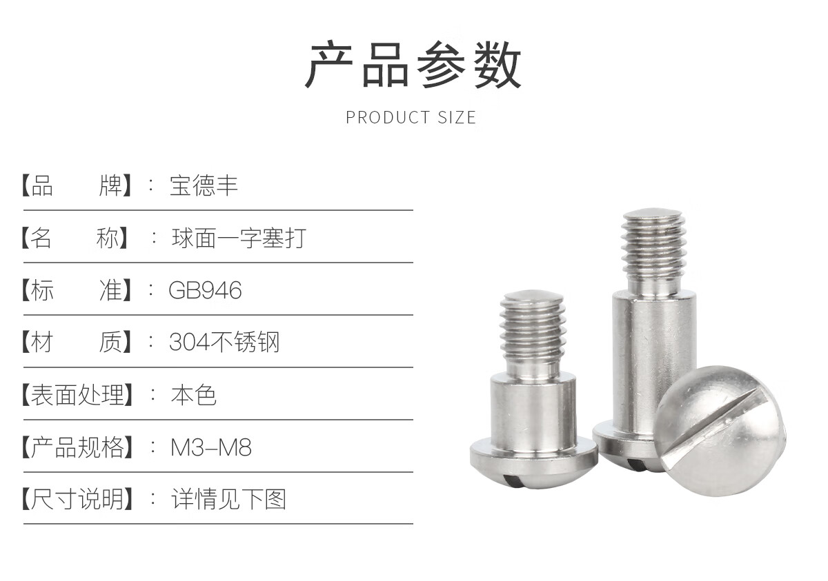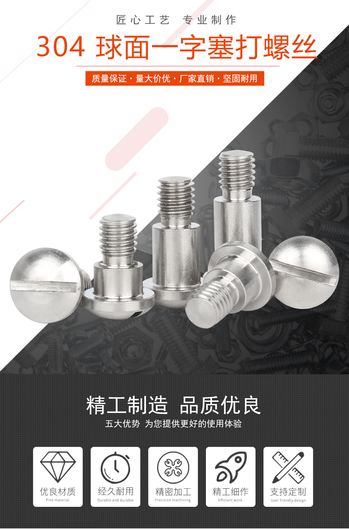 宝德丰304不锈钢球面一字塞打轴位螺丝钉GB946轴肩台阶等高螺栓M3M4M5M8 M3xΦ4x4(5只)
