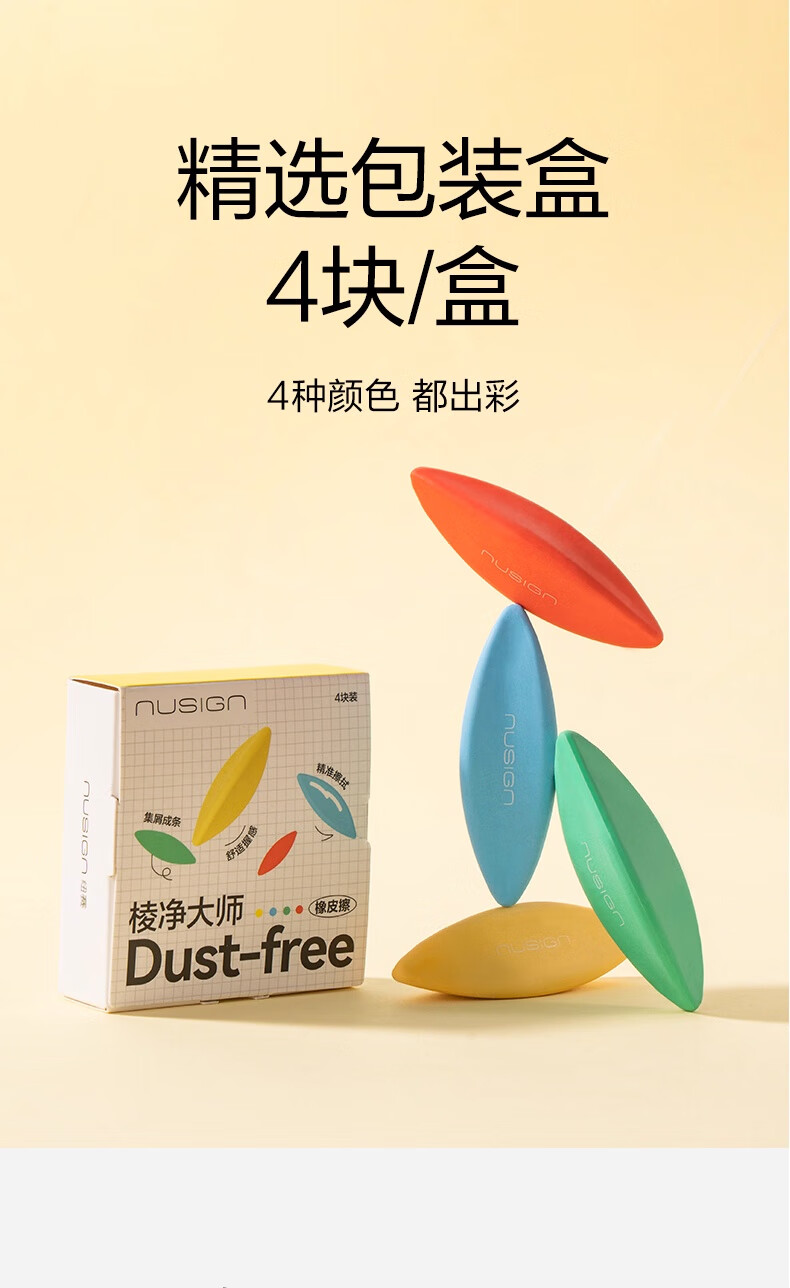 得力(deli)纽赛橡皮缤纷派多彩棱形橡皮擦干净擦拭成条不掉渣学生用不易留痕考试彩色真集屑橡皮儿童 【棱净大师】1盒4块装