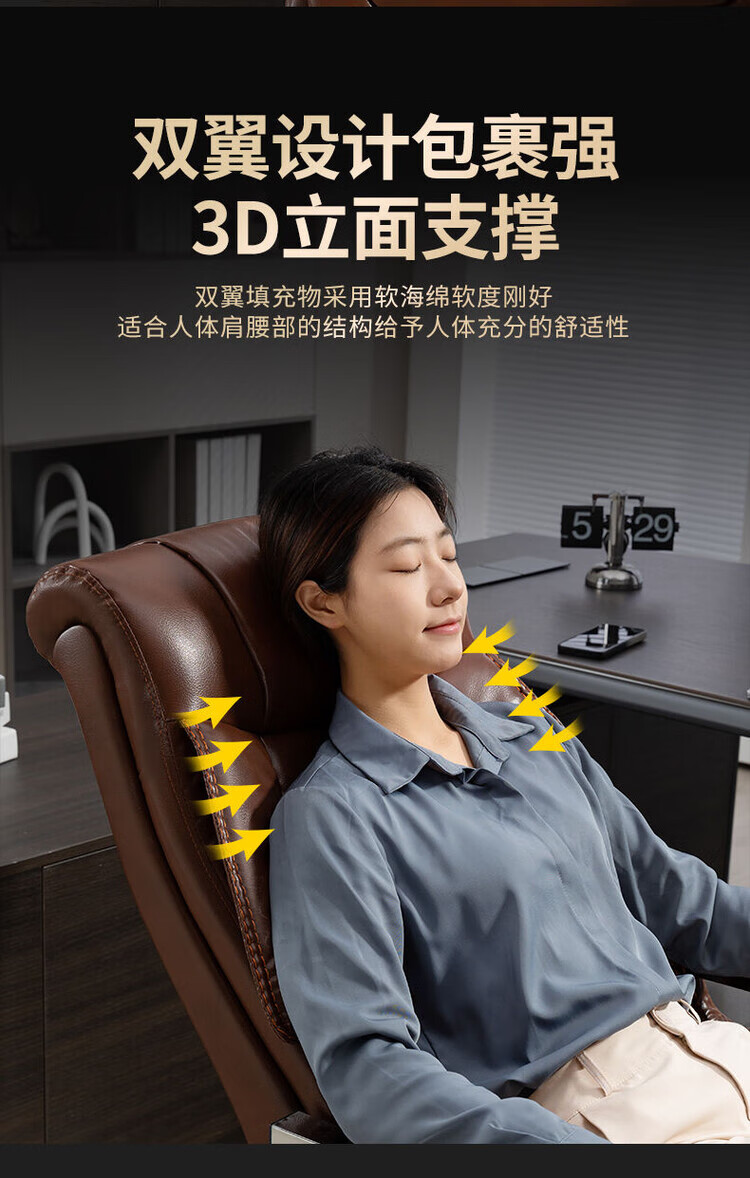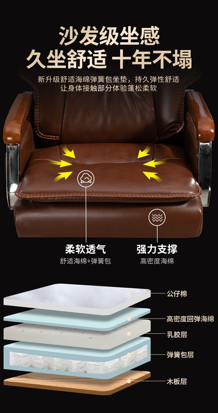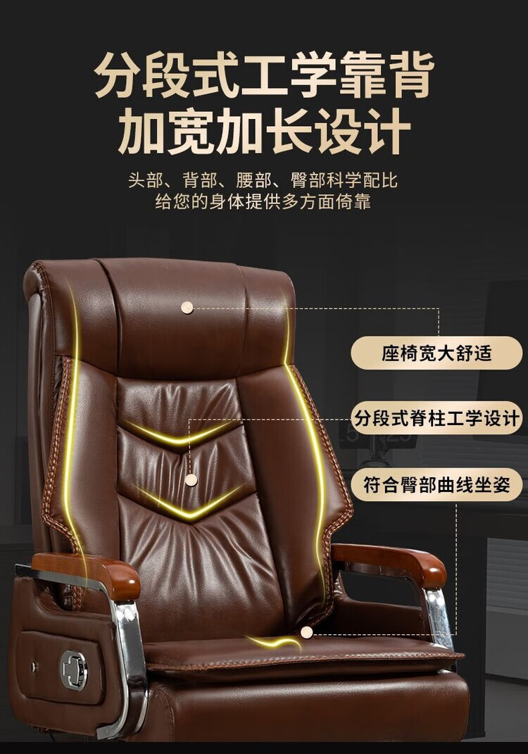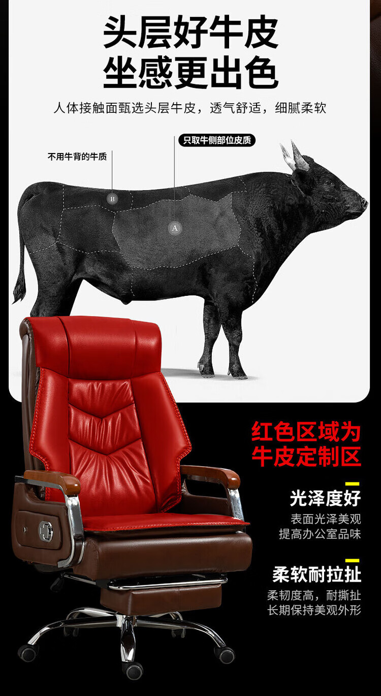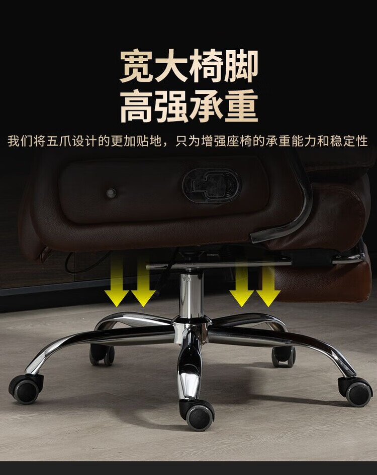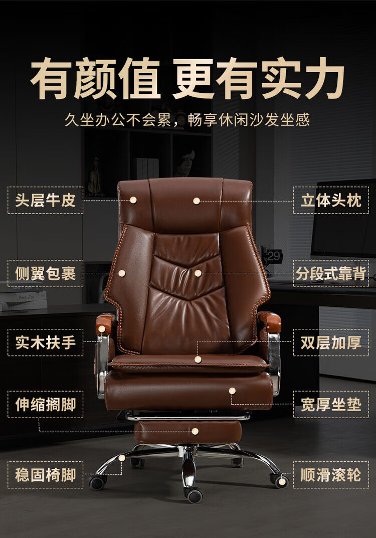 弘星隆真皮老板椅商务总裁豪华办公椅子牛皮按摩座椅可躺电脑椅家用 经典黑PU皮-无搁脚 钢制脚