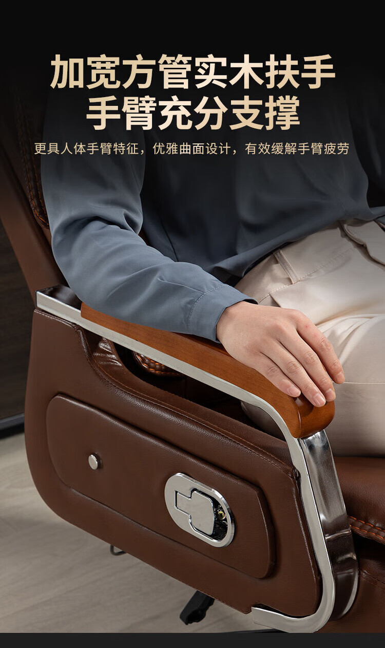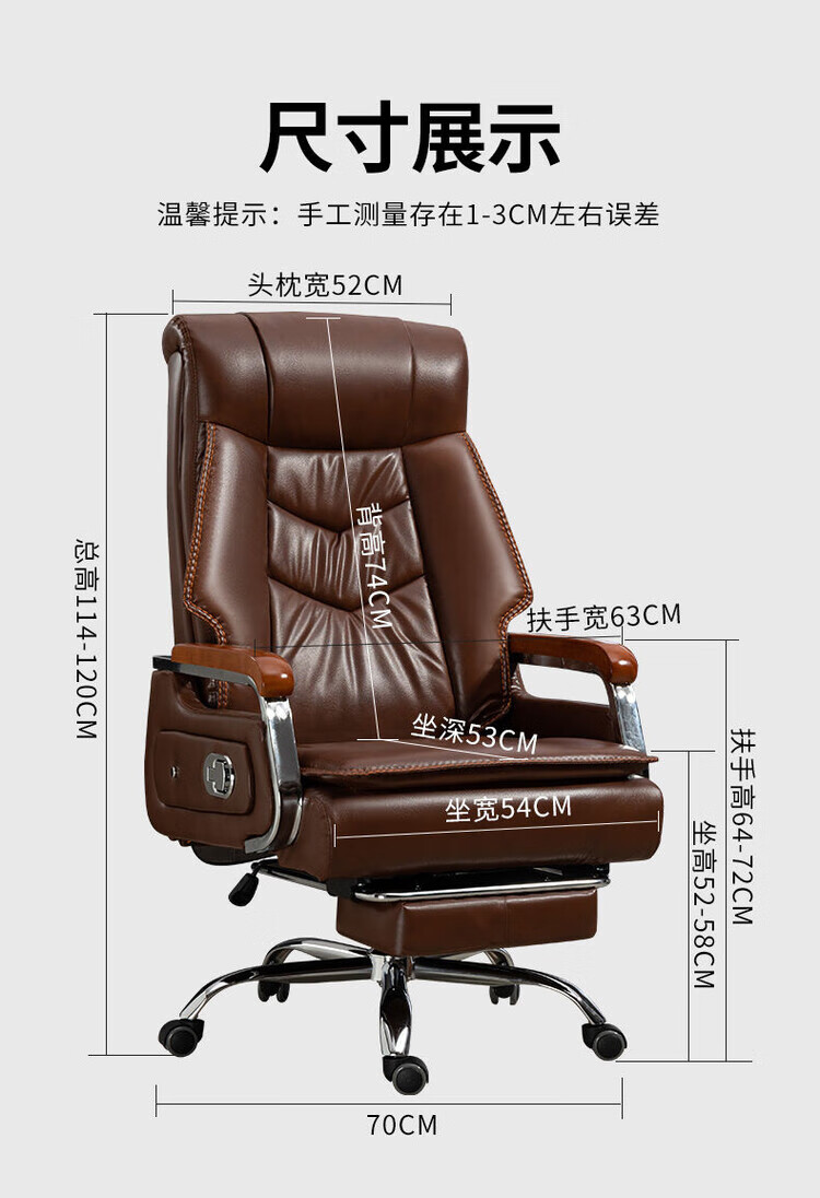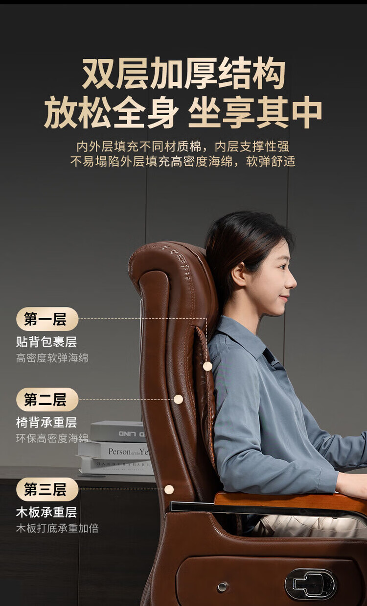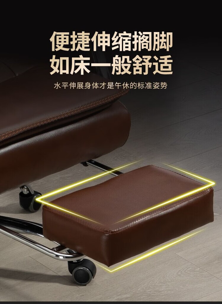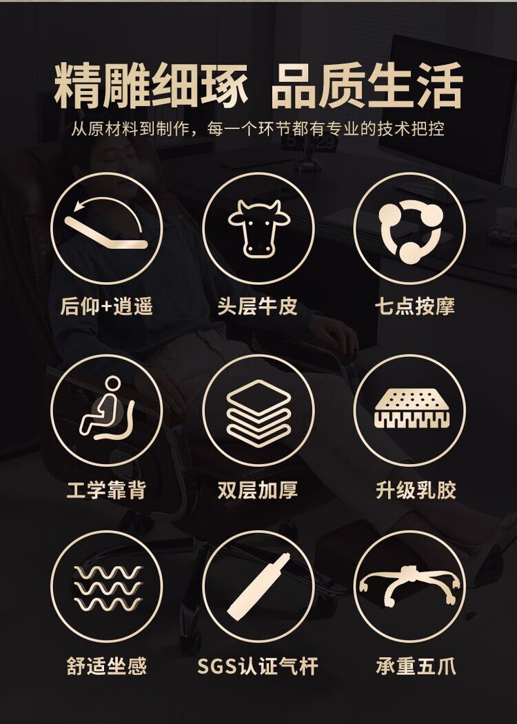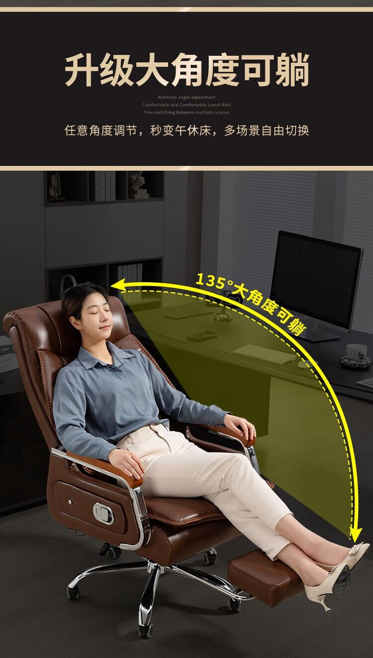 弘星隆真皮老板椅商务总裁豪华办公椅子牛皮按摩座椅可躺电脑椅家用 经典黑PU皮-无搁脚 钢制脚