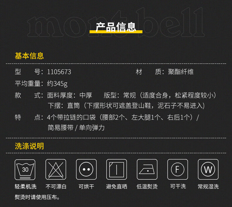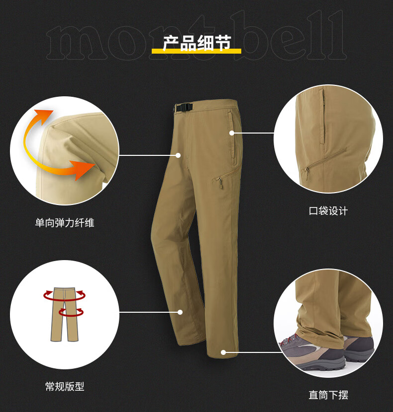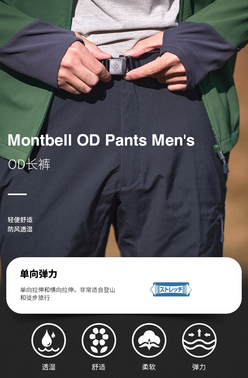mont·bell 户外男款四季中厚徒步露营登山防风防泼水舒适运动长裤 1105673 深青色 DKTL M