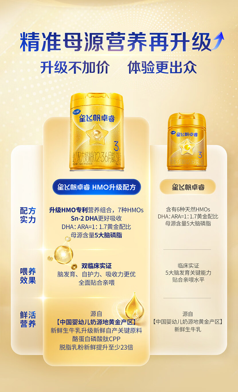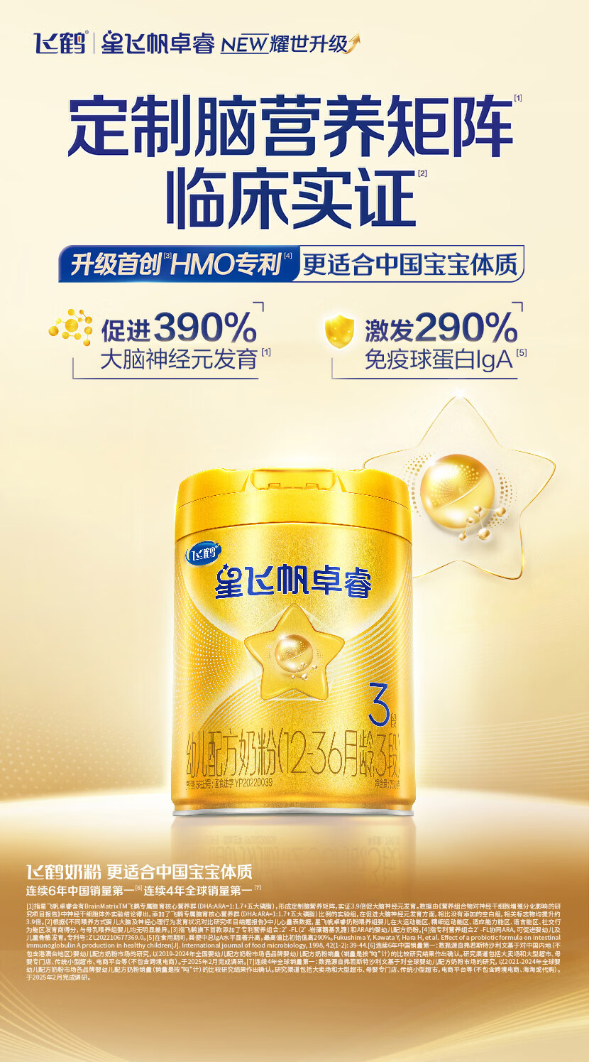 飞鹤星飞帆卓睿 幼儿配方奶粉3段(1-3岁)750g 乳铁蛋白【老爸抽检】