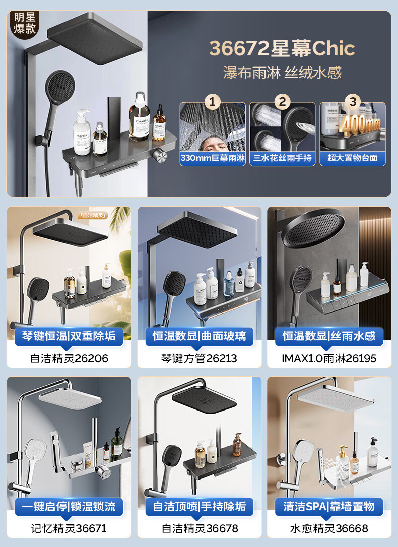 九牧(JOMOO)智能琴键恒温数显丝雨IMAX1.0雨淋旗舰版淋浴套装26195-768/HBS-1
