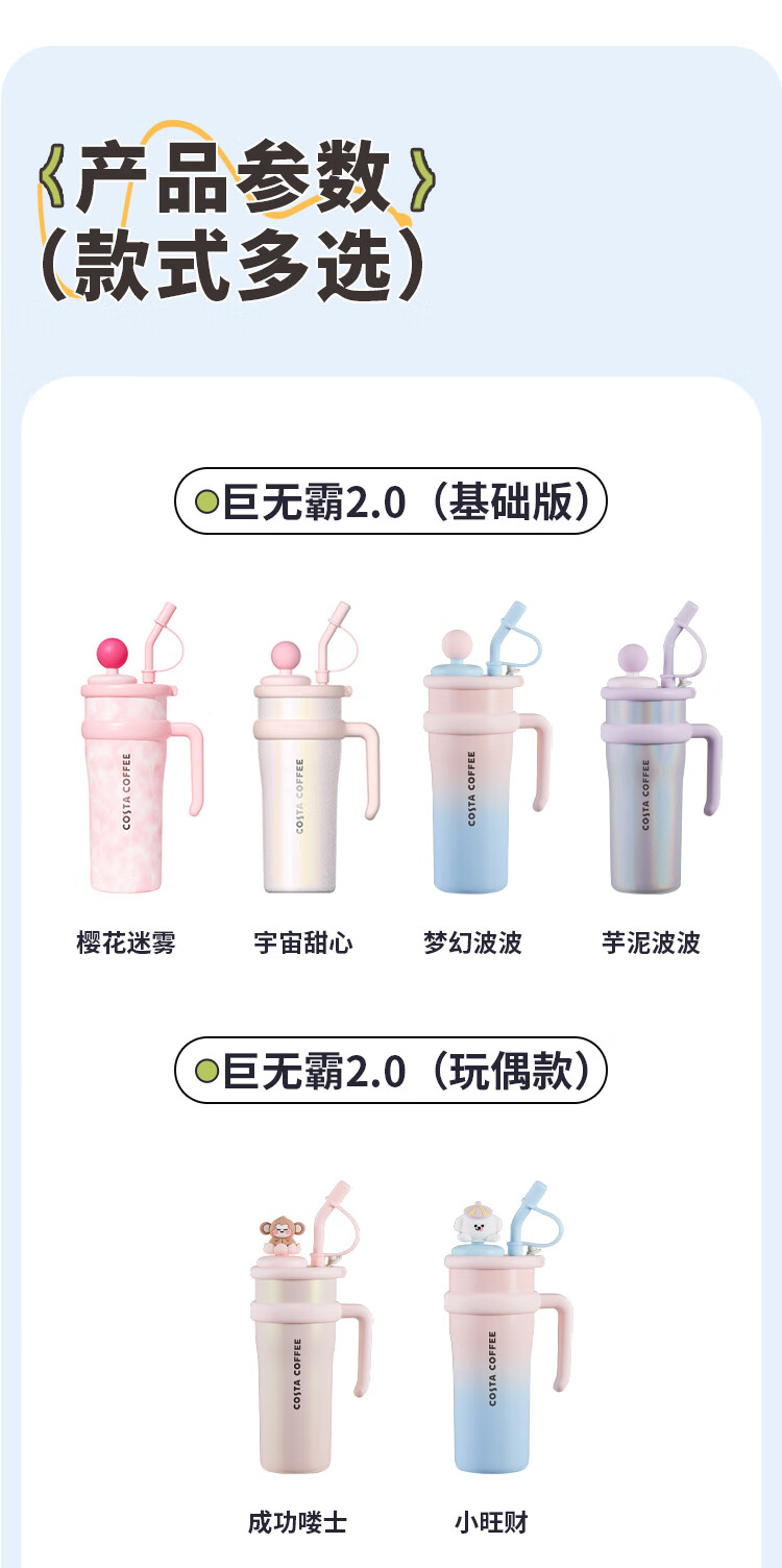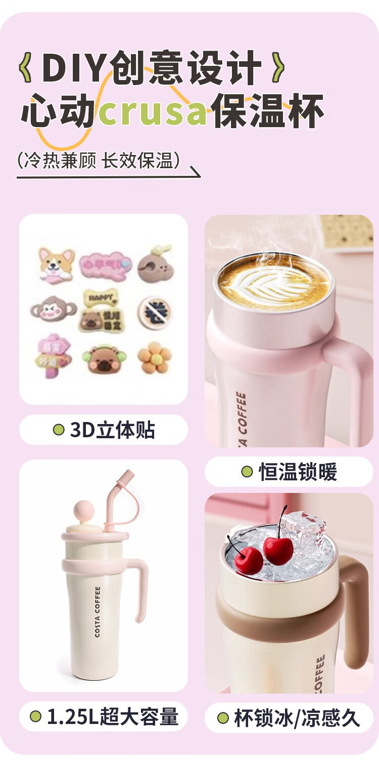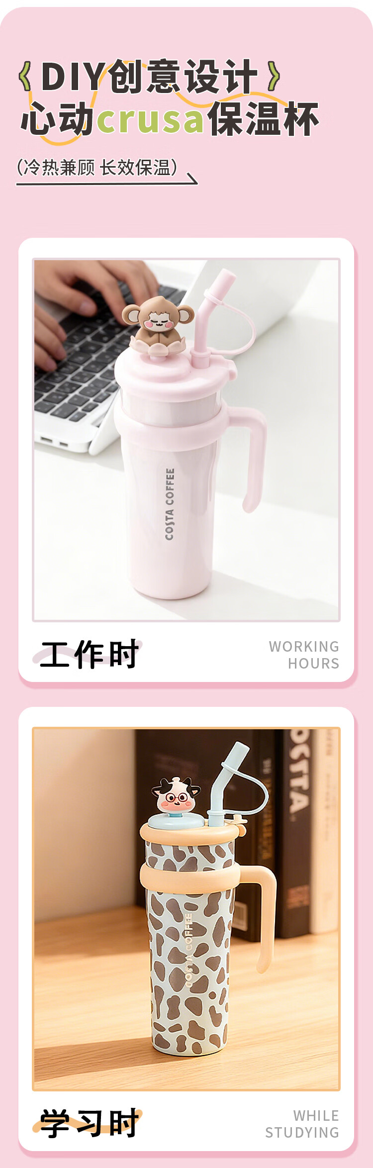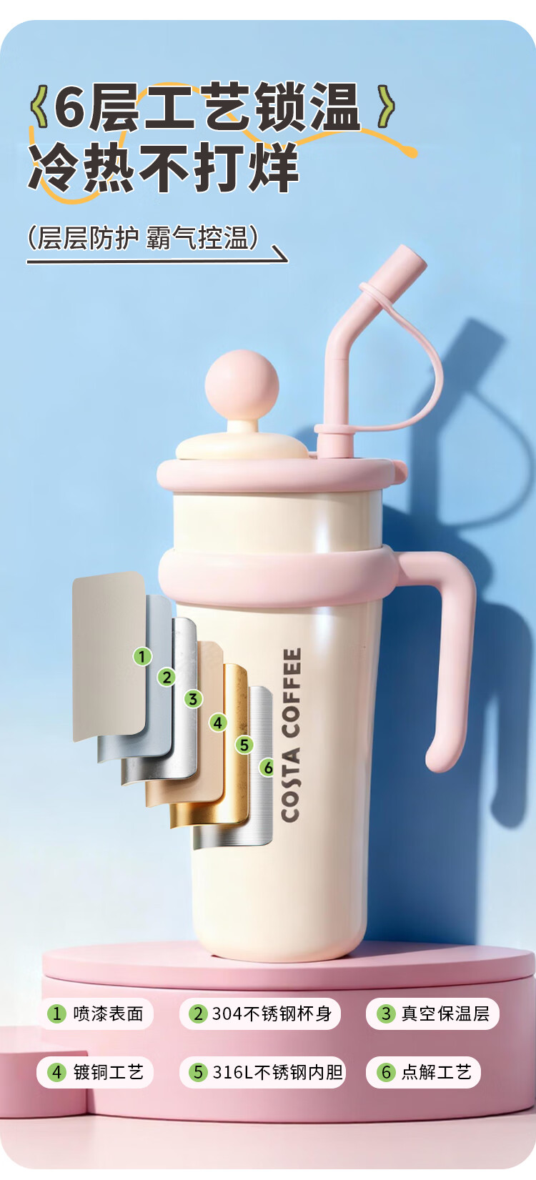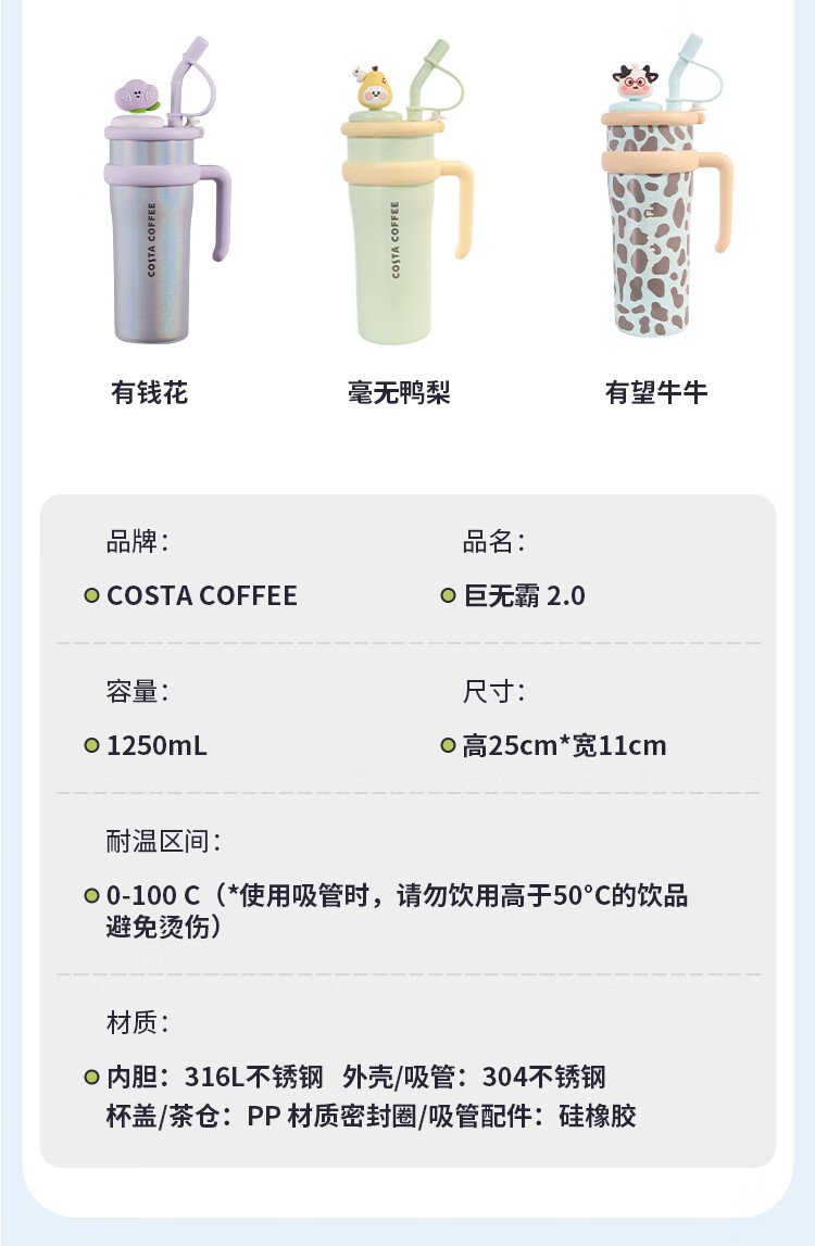 COSTA巨无霸大容量男女吸管保温冰霸水杯子不锈钢办公学生DIY圣诞礼物