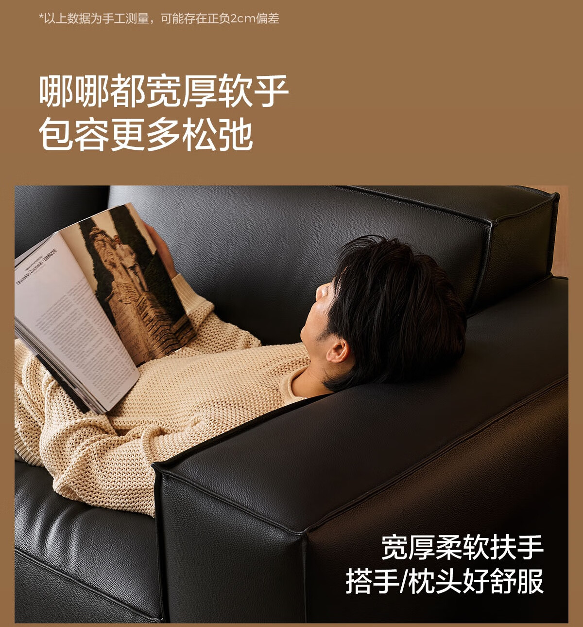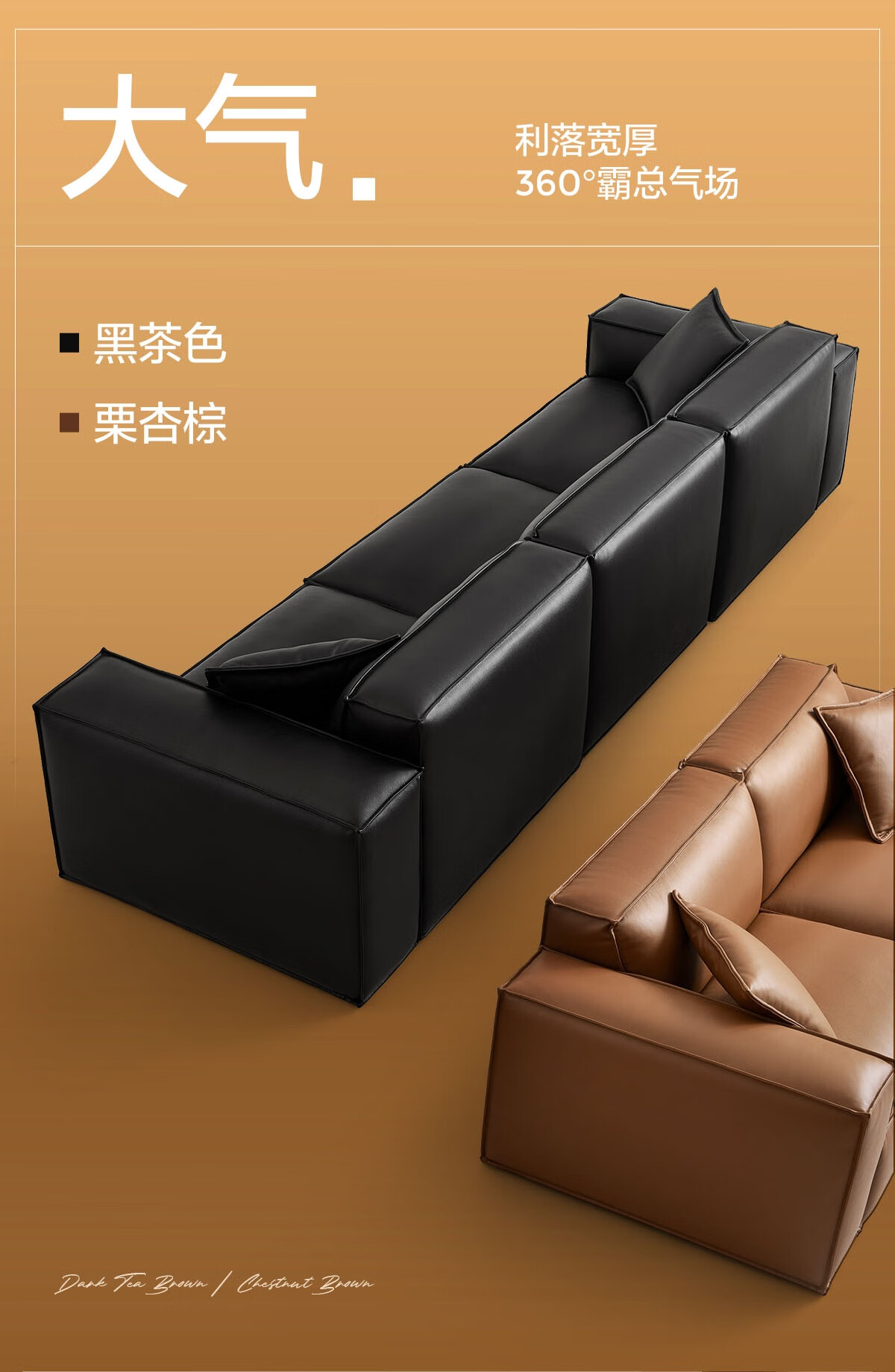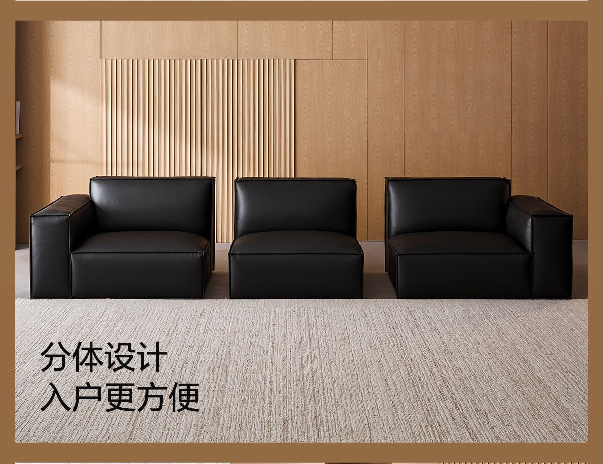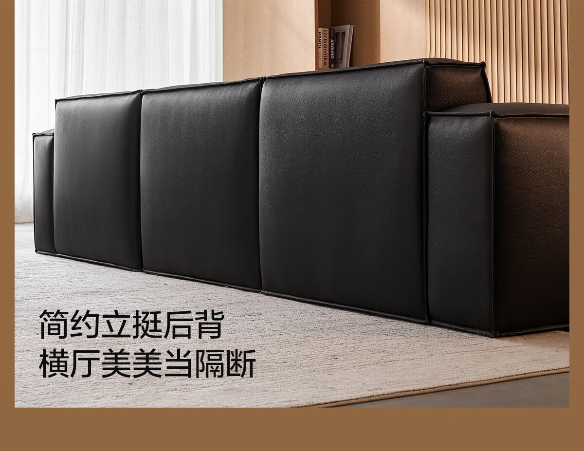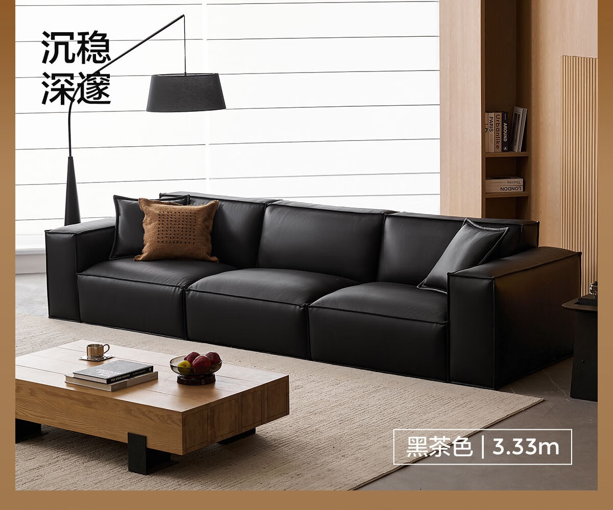 林氏家居意式极简豆腐块真皮沙发客厅2025新款大黑牛头层牛皮黑色PS040 【3.33米|黑茶色】加厚头层牛皮