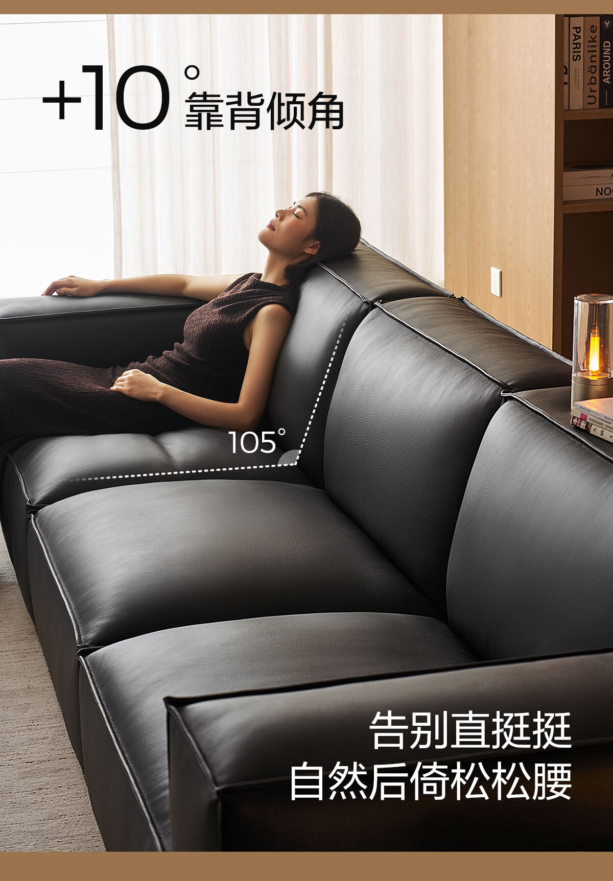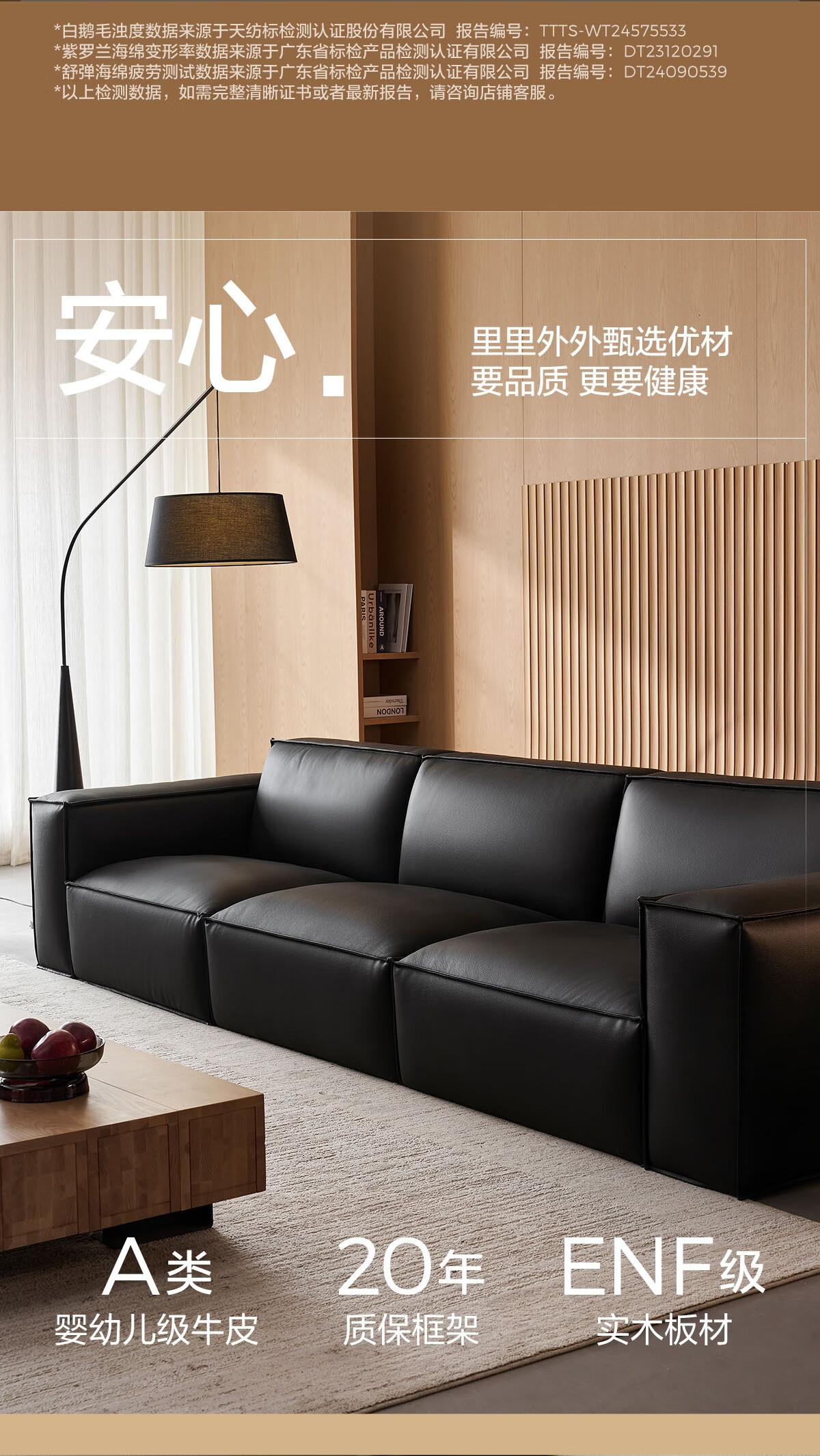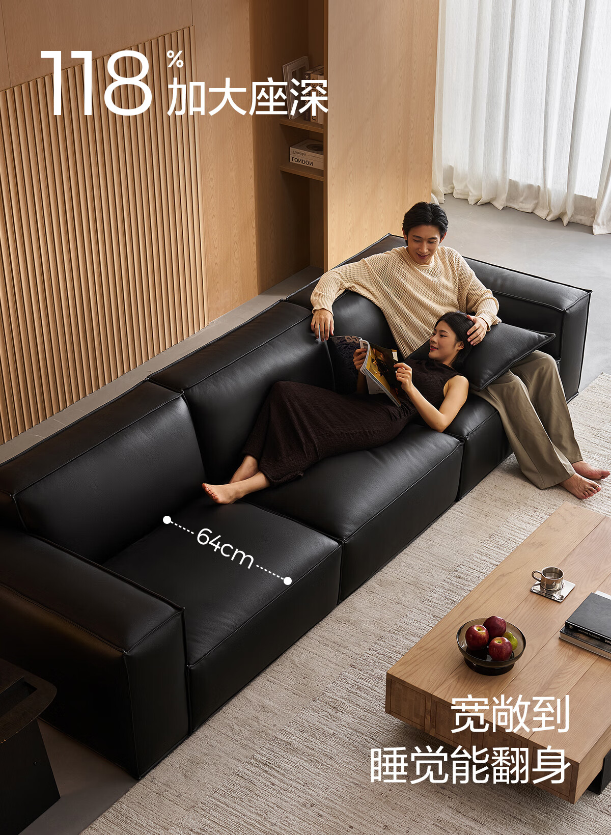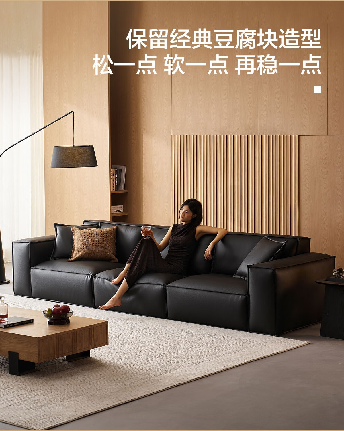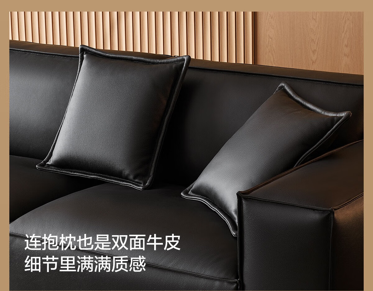 林氏家居意式极简豆腐块真皮沙发客厅2025新款大黑牛头层牛皮黑色PS040 【3.33米|黑茶色】加厚头层牛皮