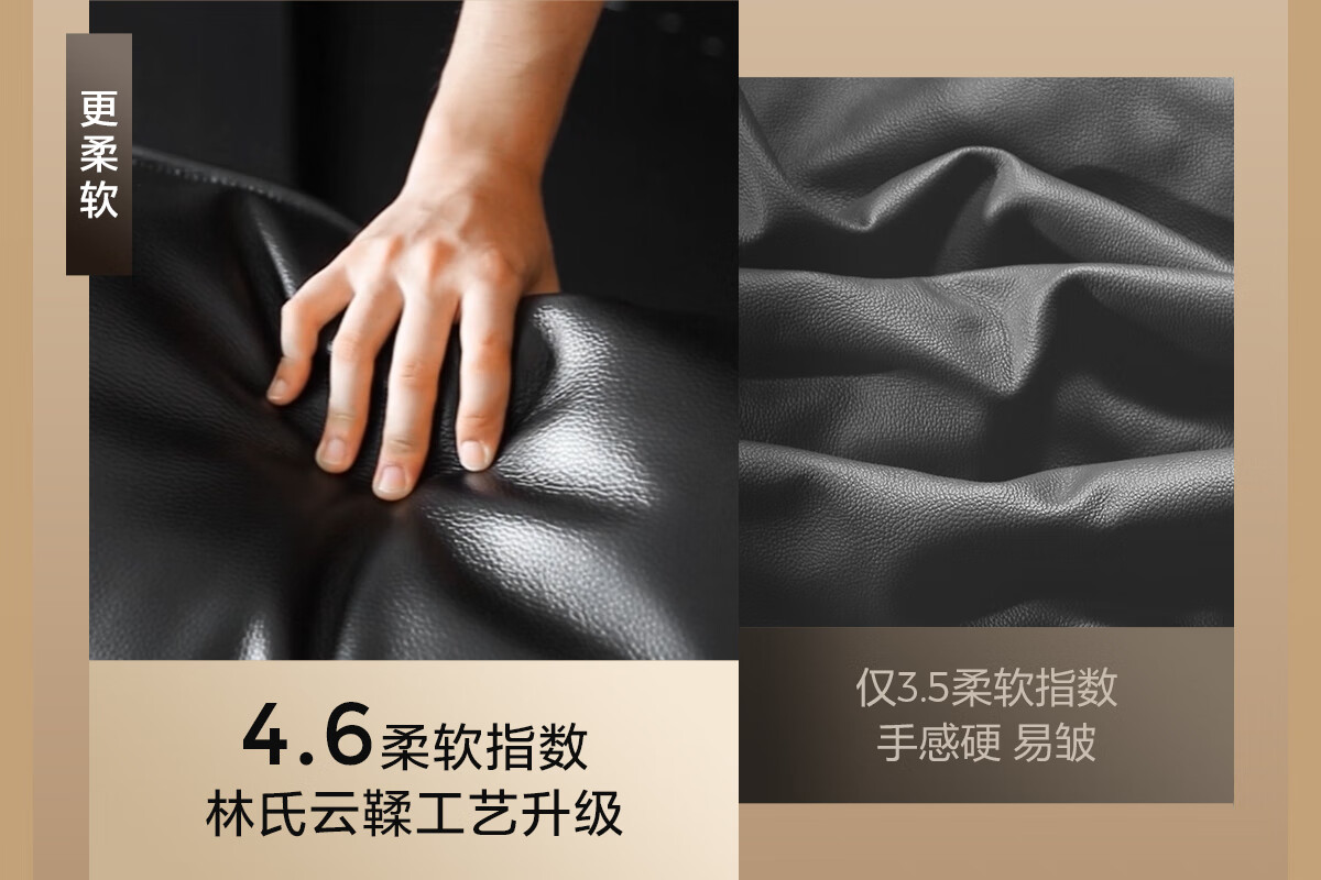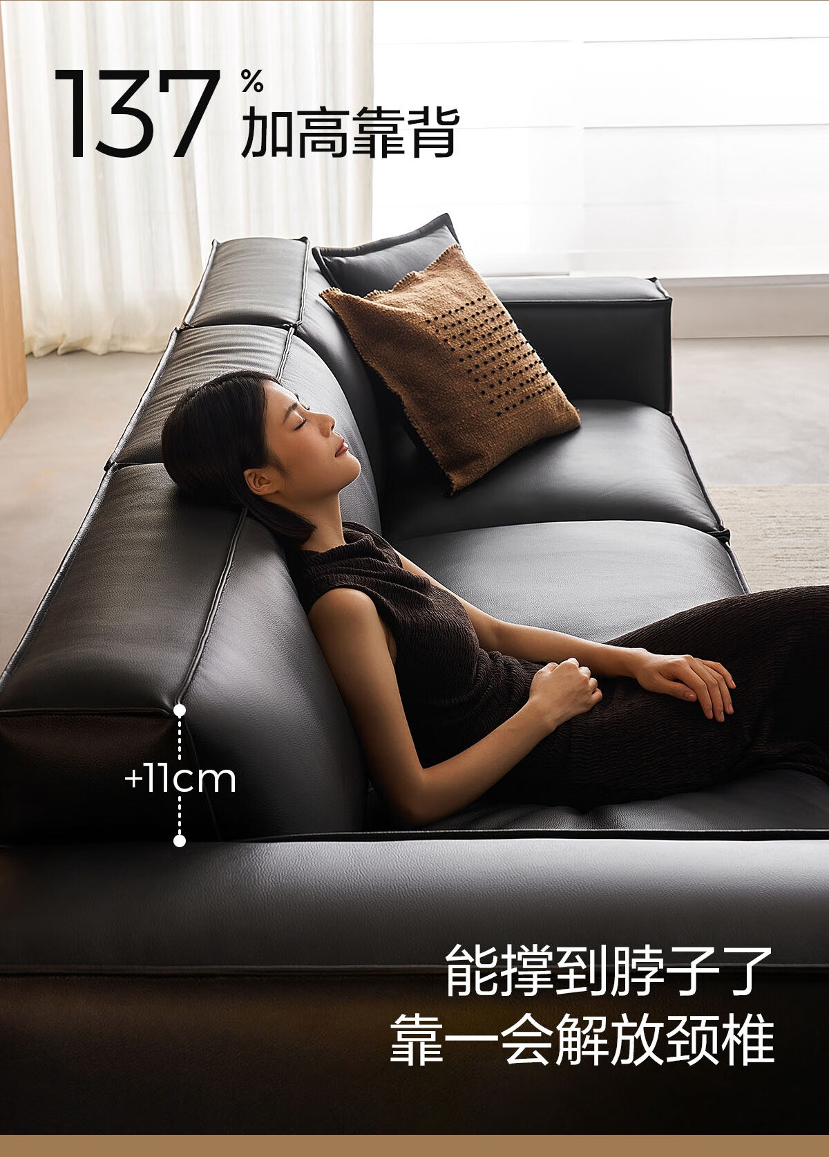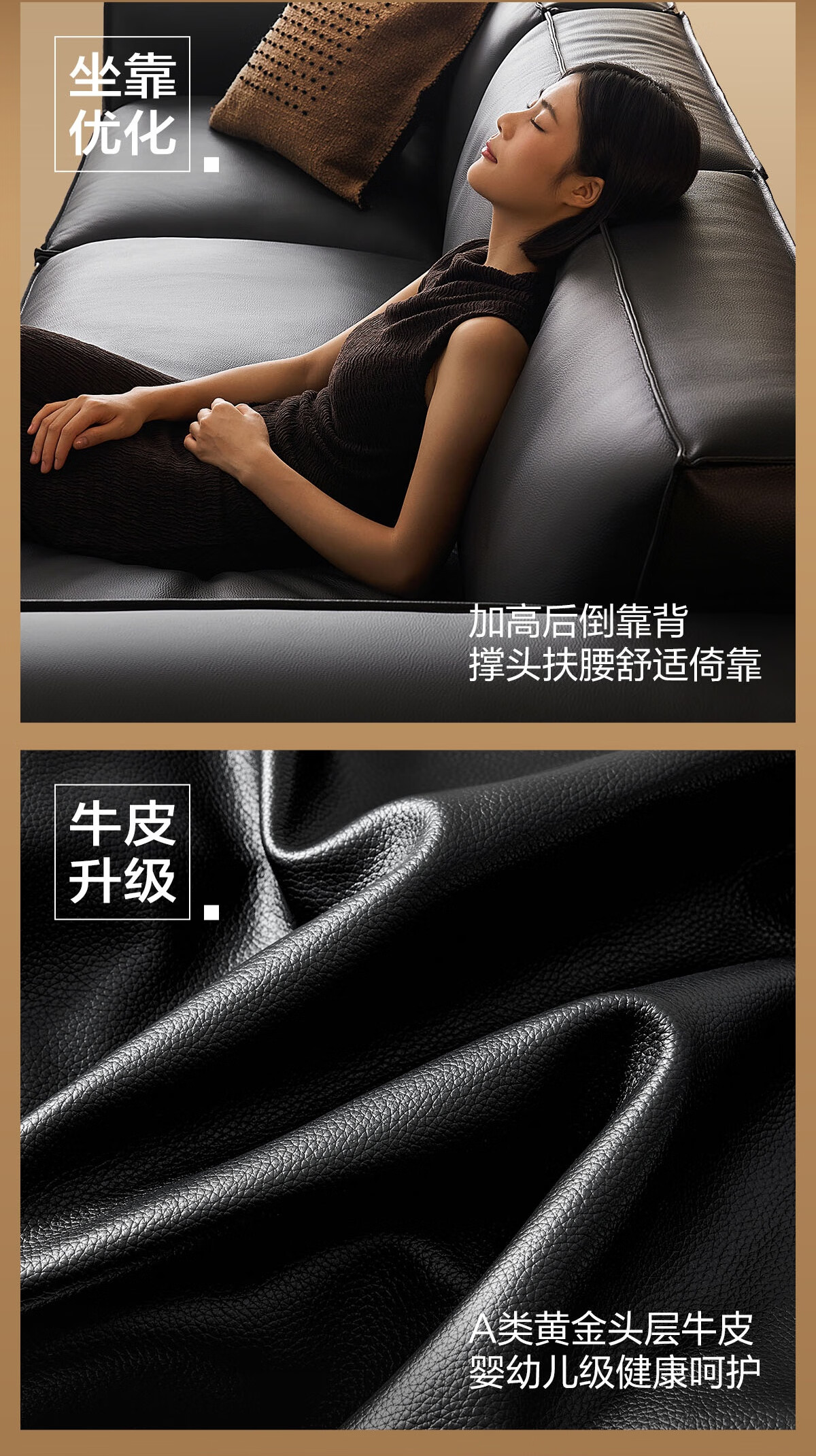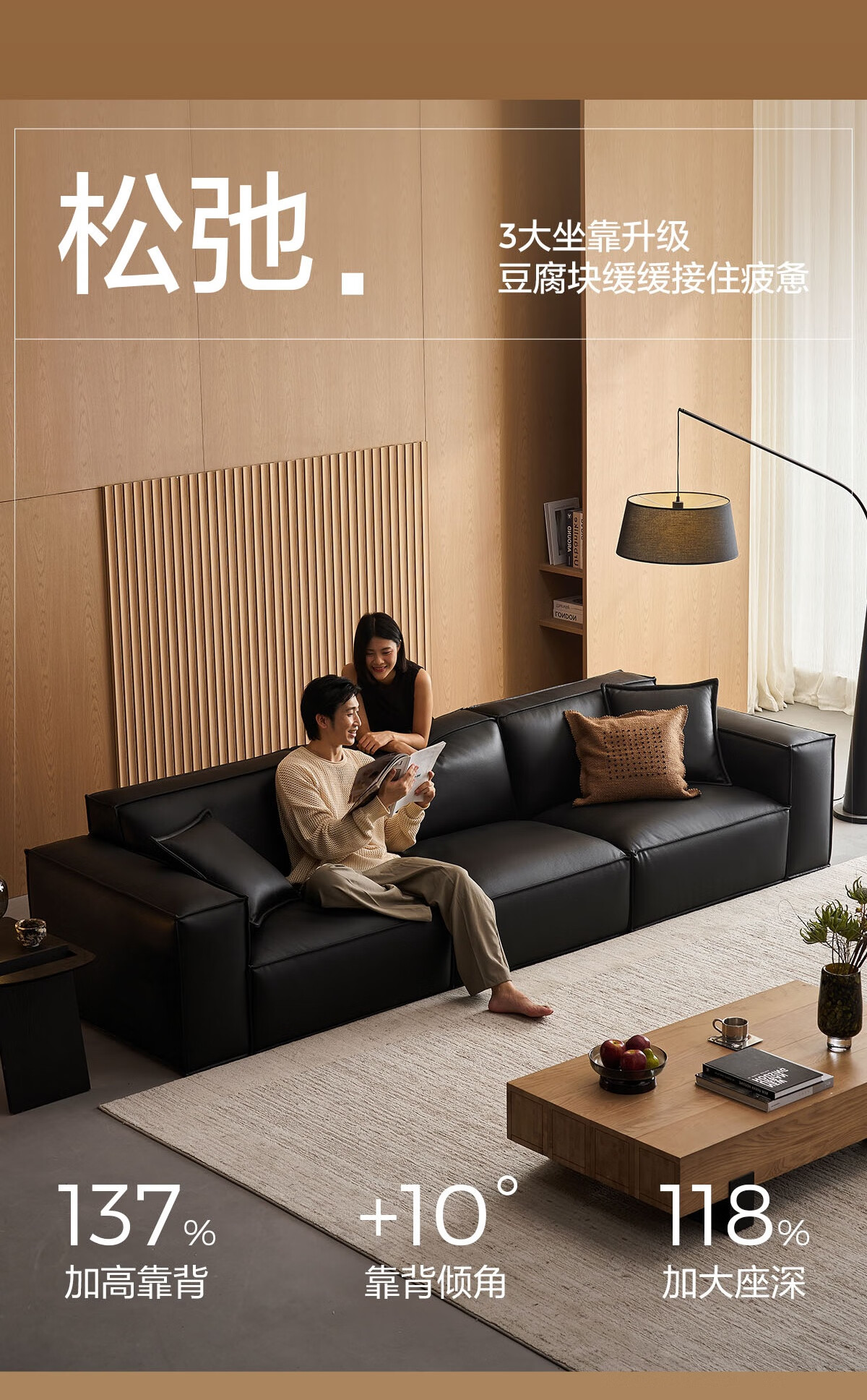 林氏家居意式极简豆腐块真皮沙发客厅2025新款大黑牛头层牛皮黑色PS040 【3.33米|黑茶色】加厚头层牛皮