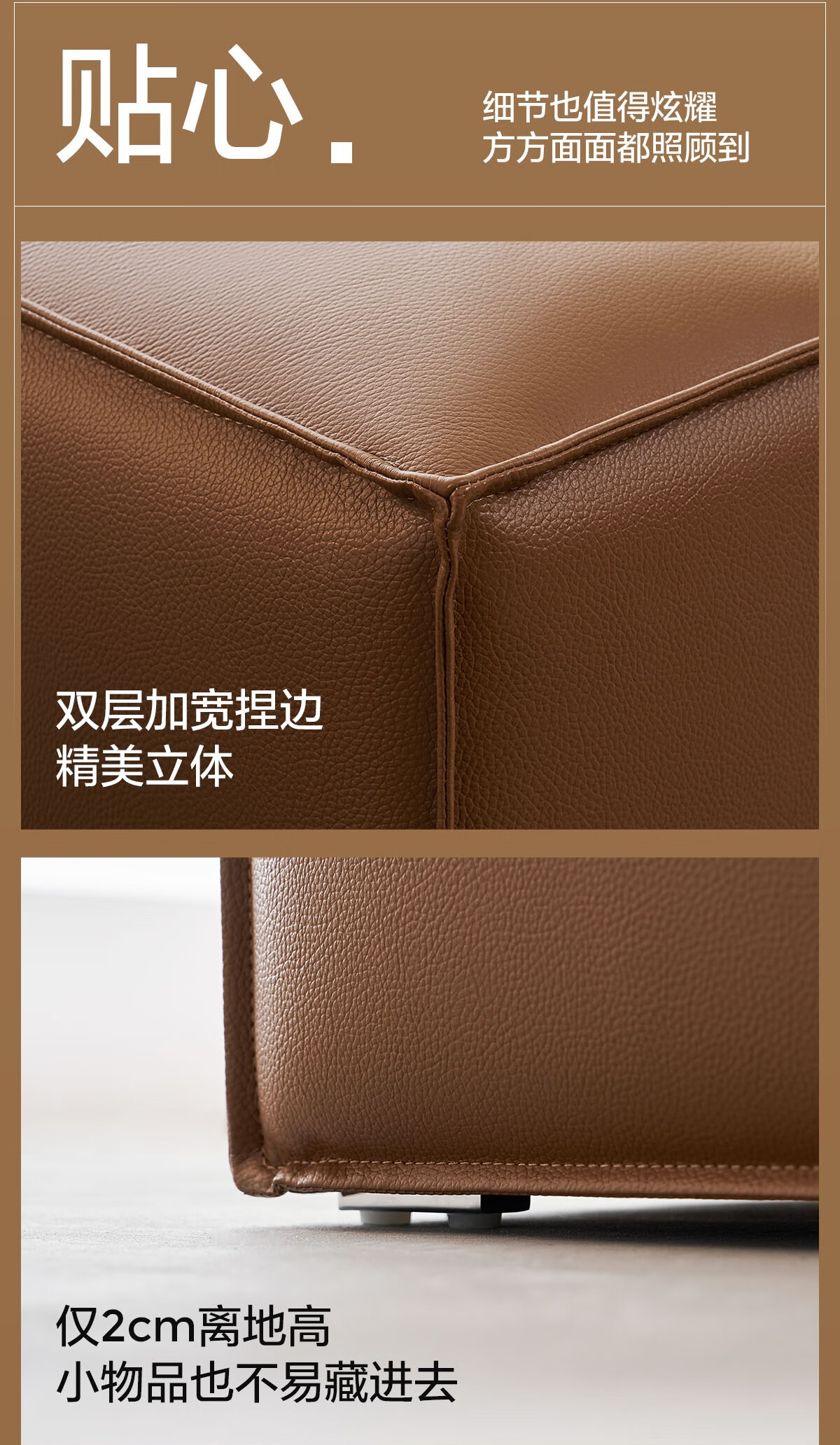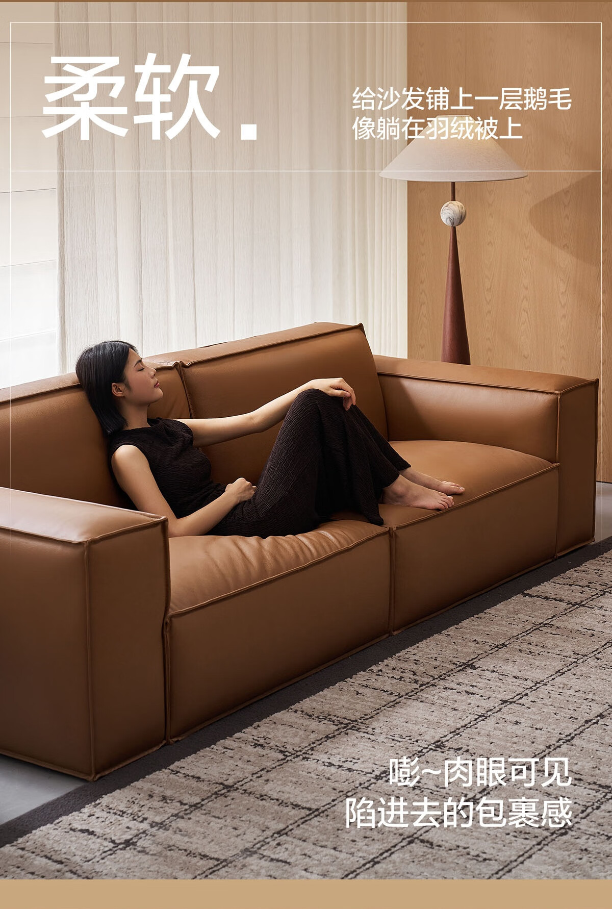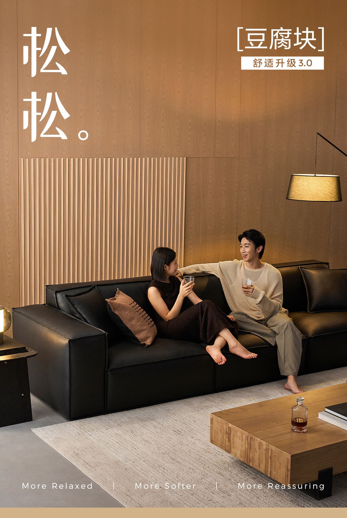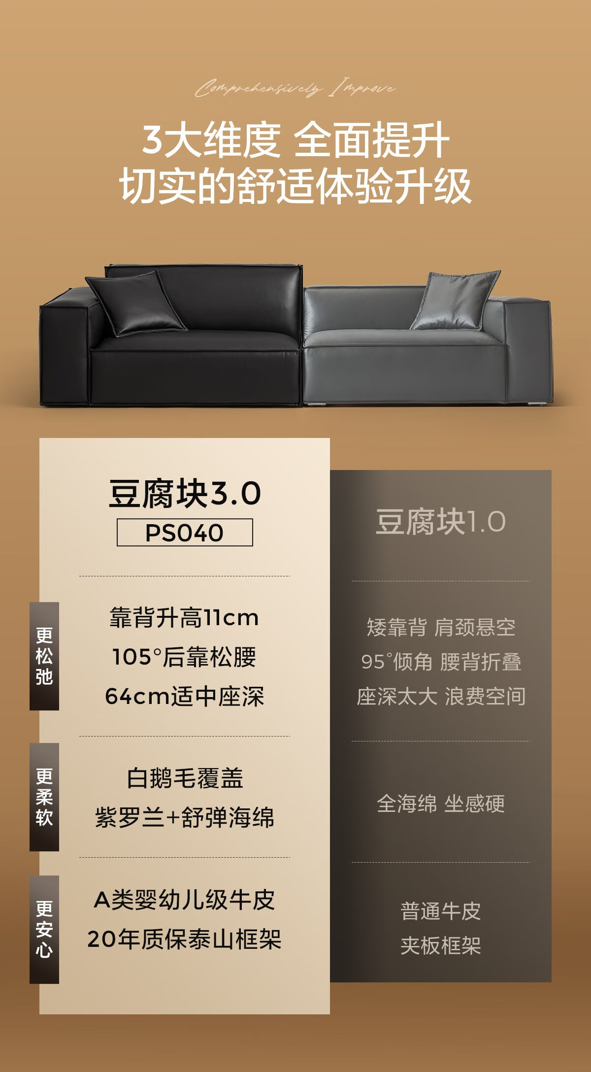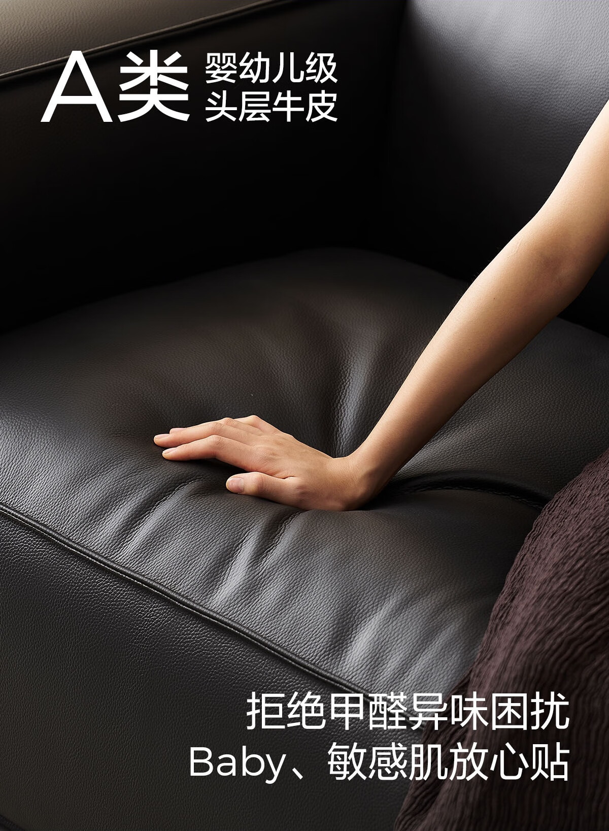 林氏家居意式极简豆腐块真皮沙发客厅2025新款大黑牛头层牛皮黑色PS040 【3.33米|黑茶色】加厚头层牛皮