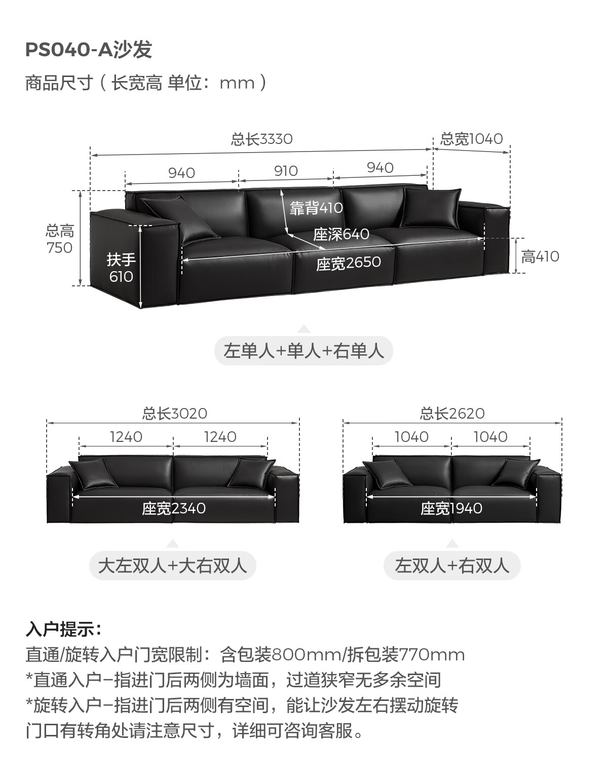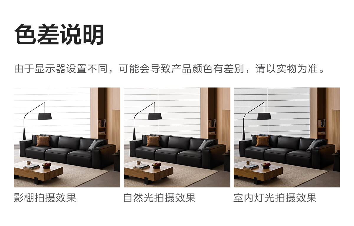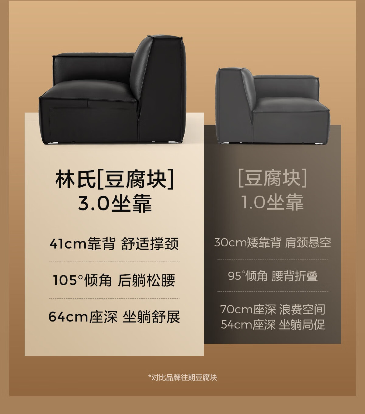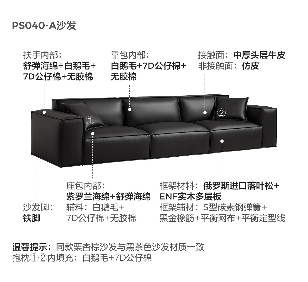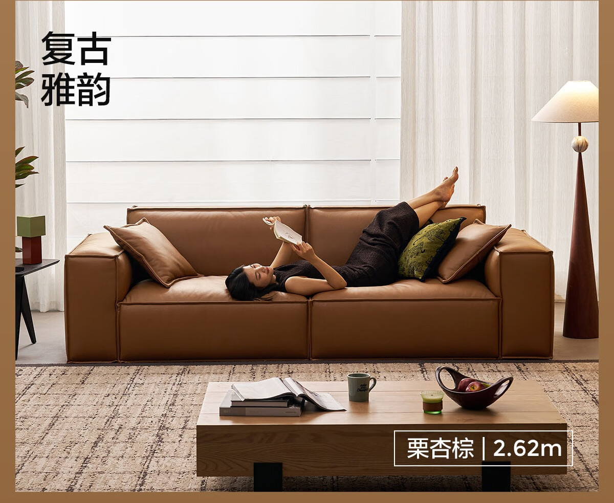 林氏家居意式极简豆腐块真皮沙发客厅2025新款大黑牛头层牛皮黑色PS040 【3.33米|黑茶色】加厚头层牛皮
