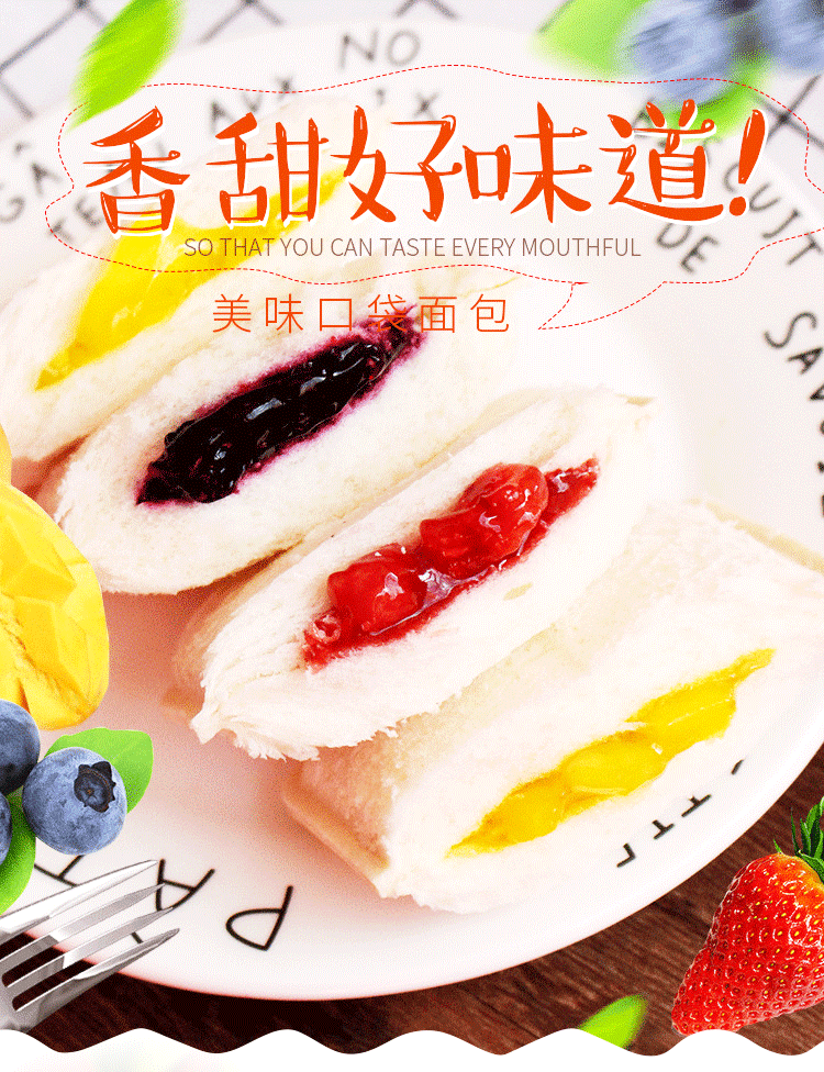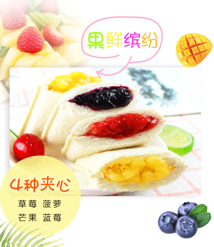孝贤公主乳酸菌口袋面包蓝莓草莓整箱小零食蛋糕芒果菠萝水果夹心营养早餐 四种口味混合(2斤装)