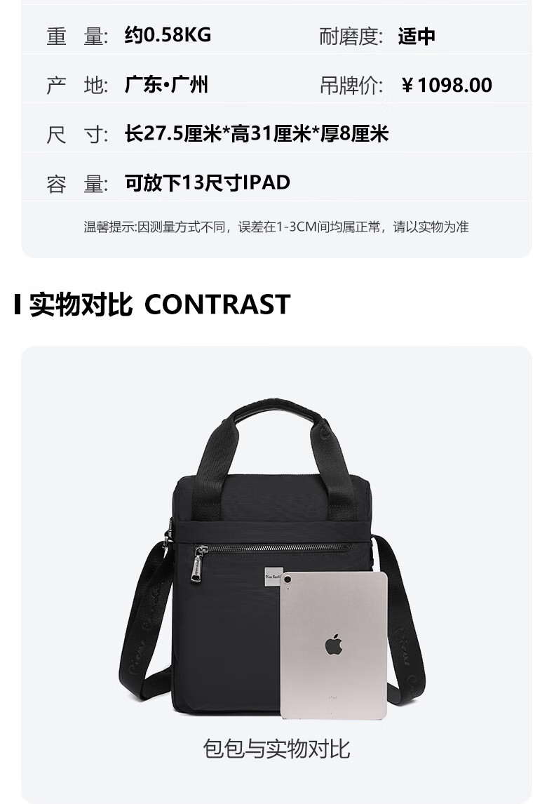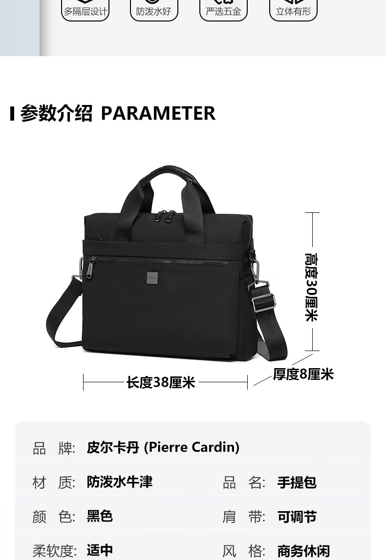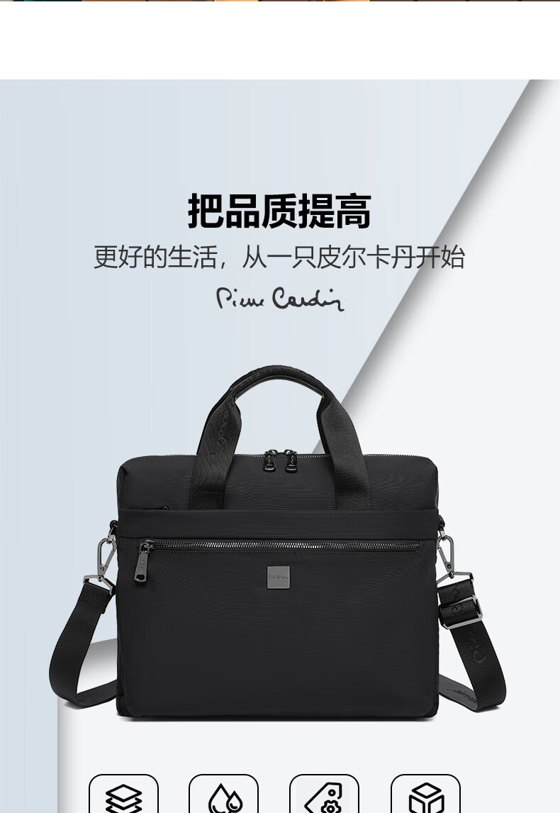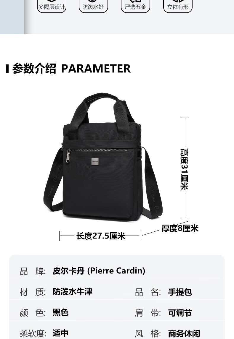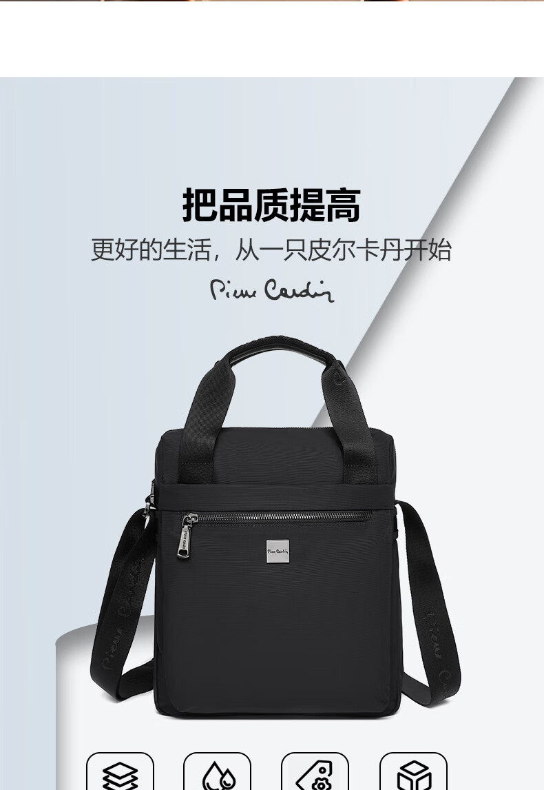 皮尔卡丹男包斜挎包男士高端单肩包新款大容量便携包帆布包出差旅行小背包 黑色横款标准款【可放下13尺寸平板】 多款式可选【品牌正品假一罚十】