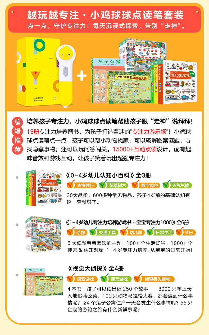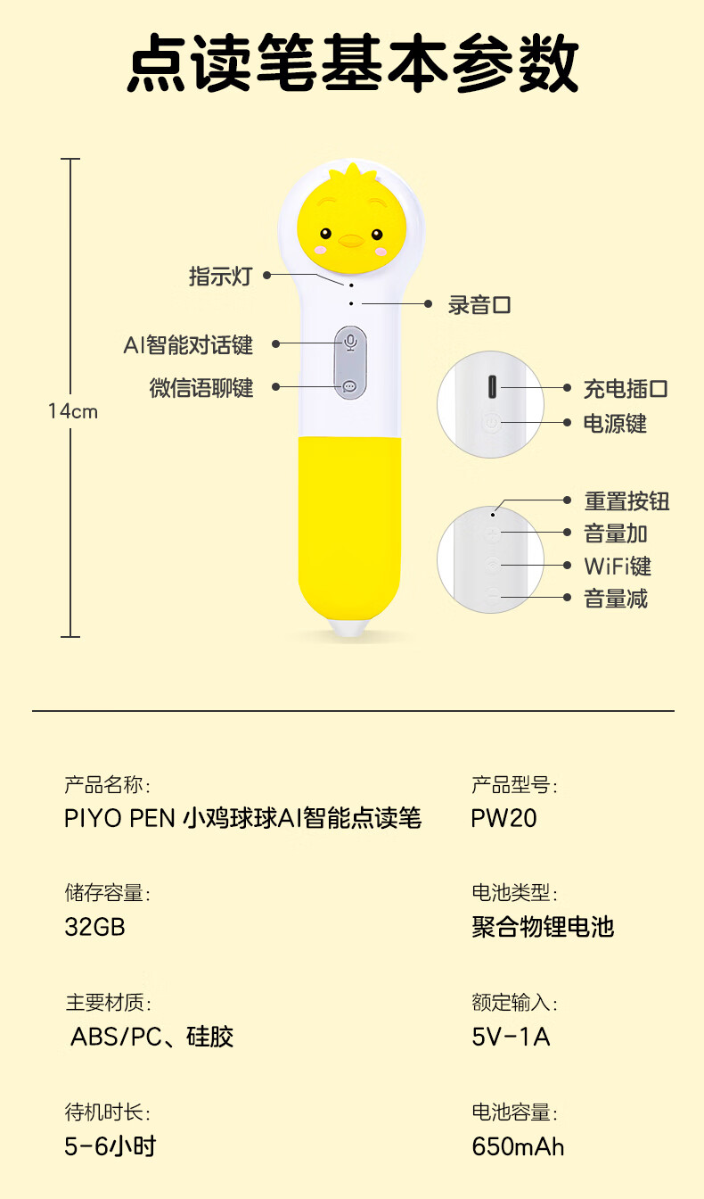 PIYO PEN小鸡球球32G点读笔内含13本书儿童专注力培养早教机男孩女孩玩具
