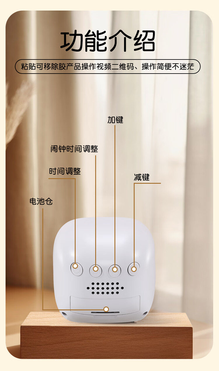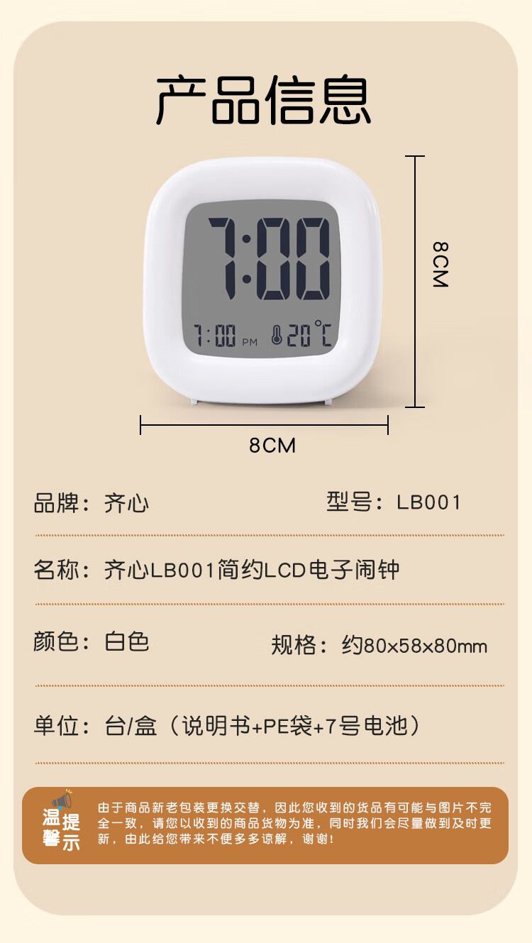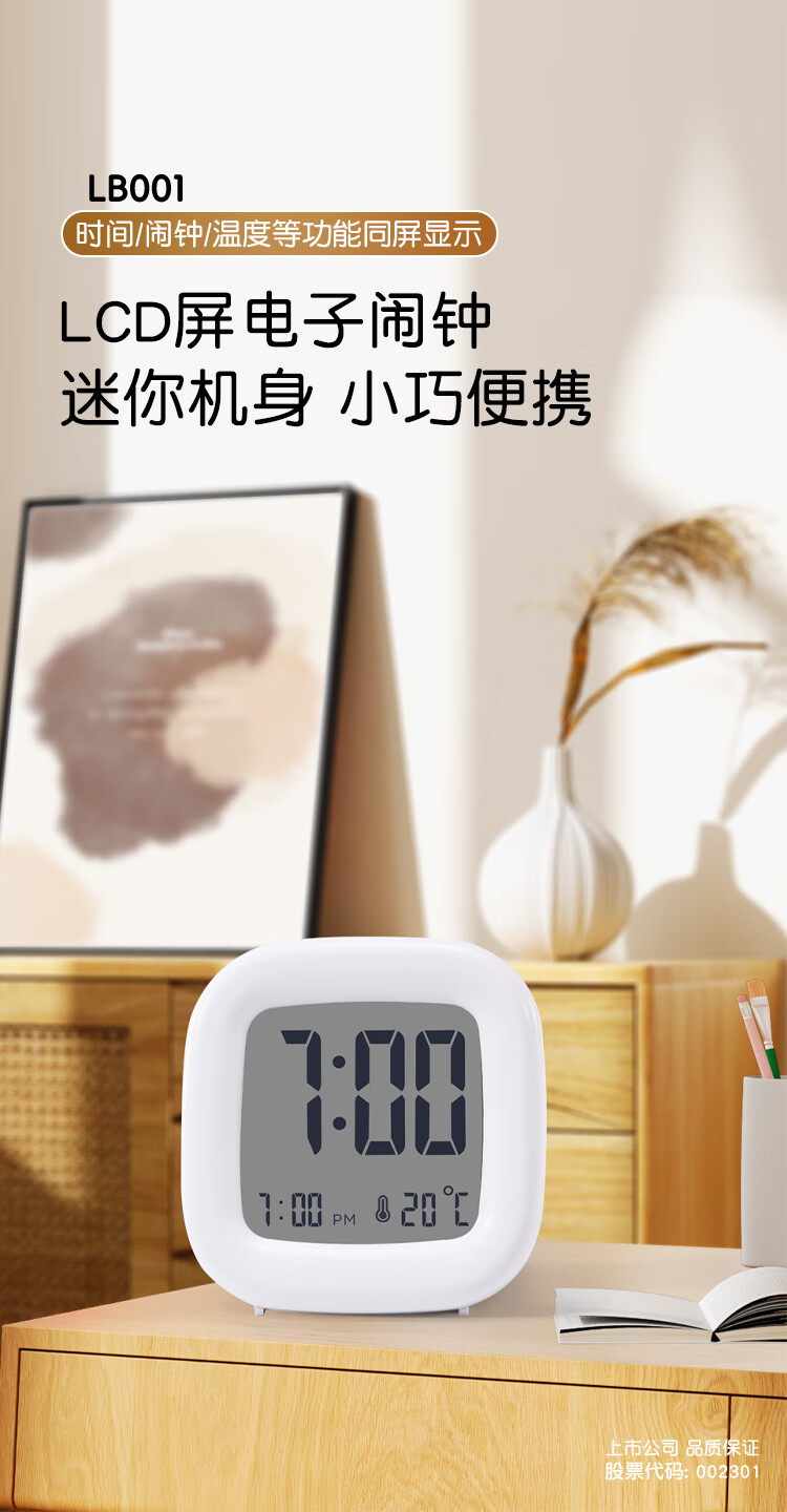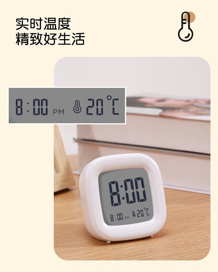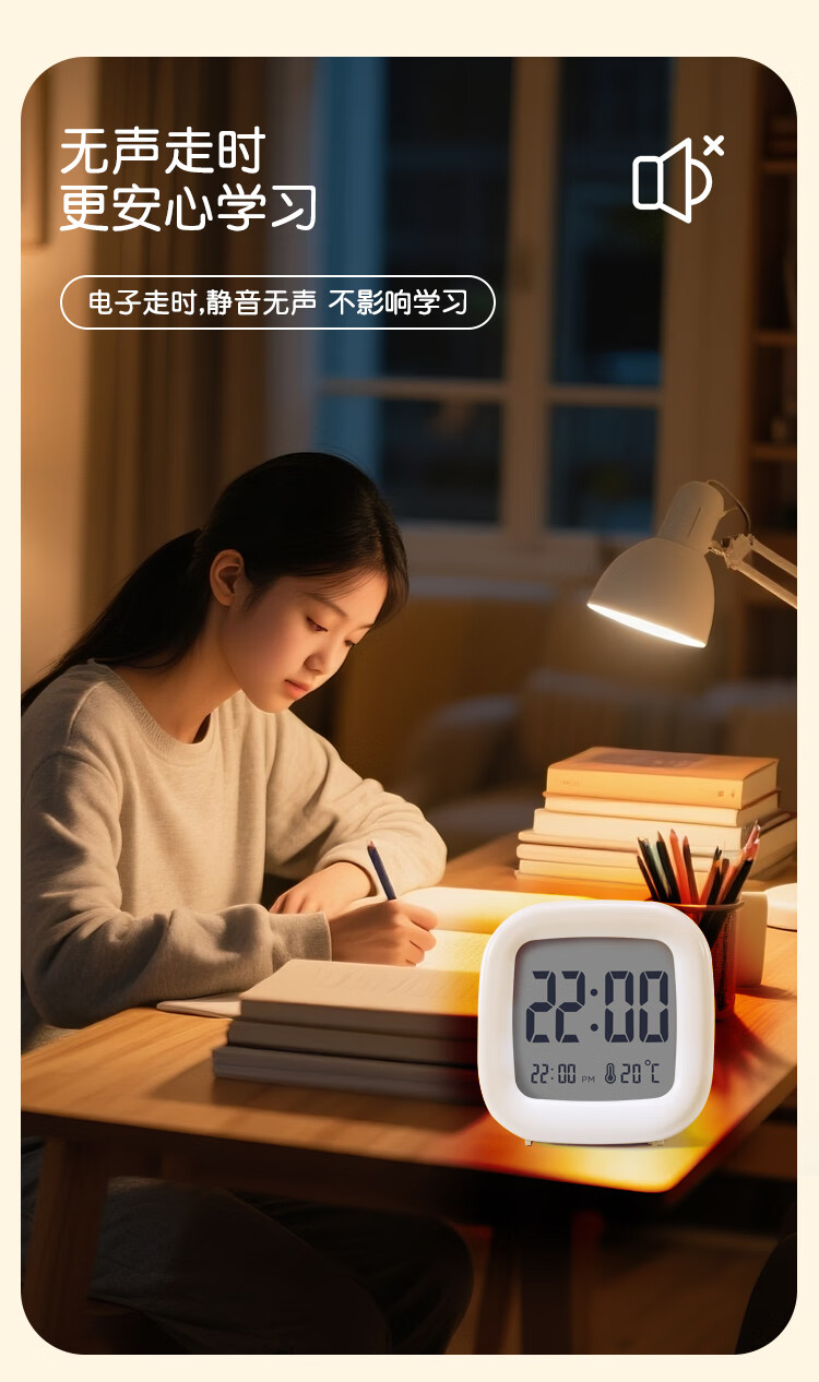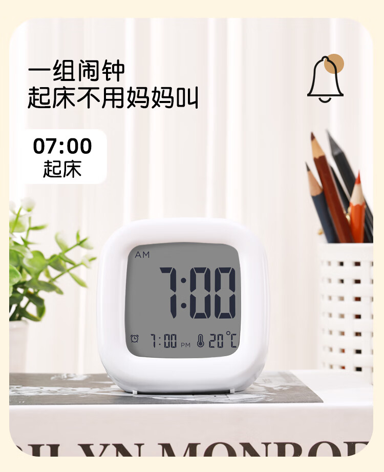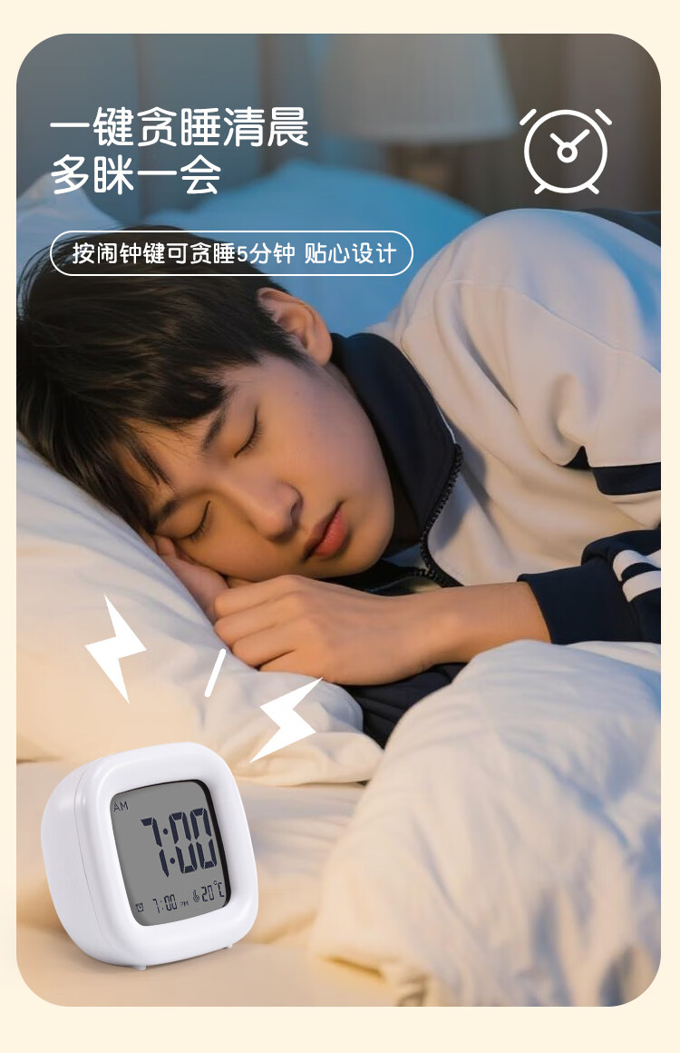 齐心(COMIX)多功能电子闹钟儿童卧室床头钟学生起床神器温度计开学必备学习用品 白 LB001