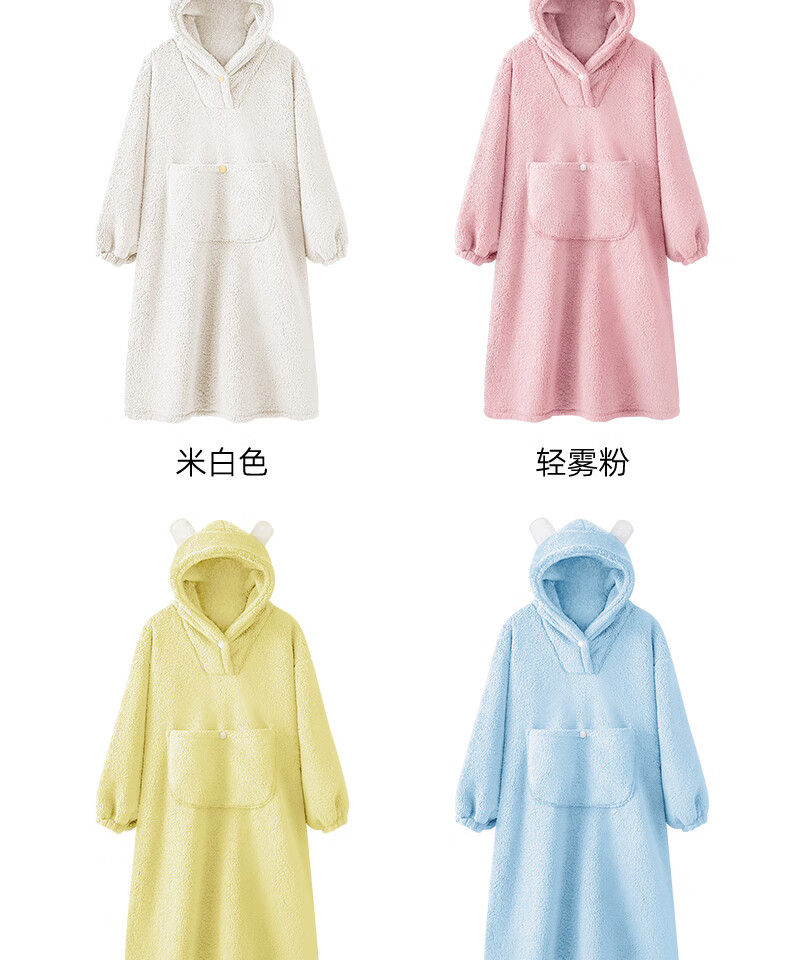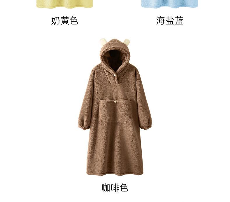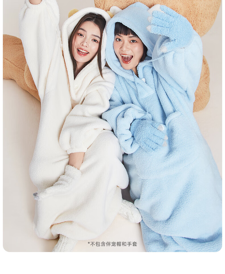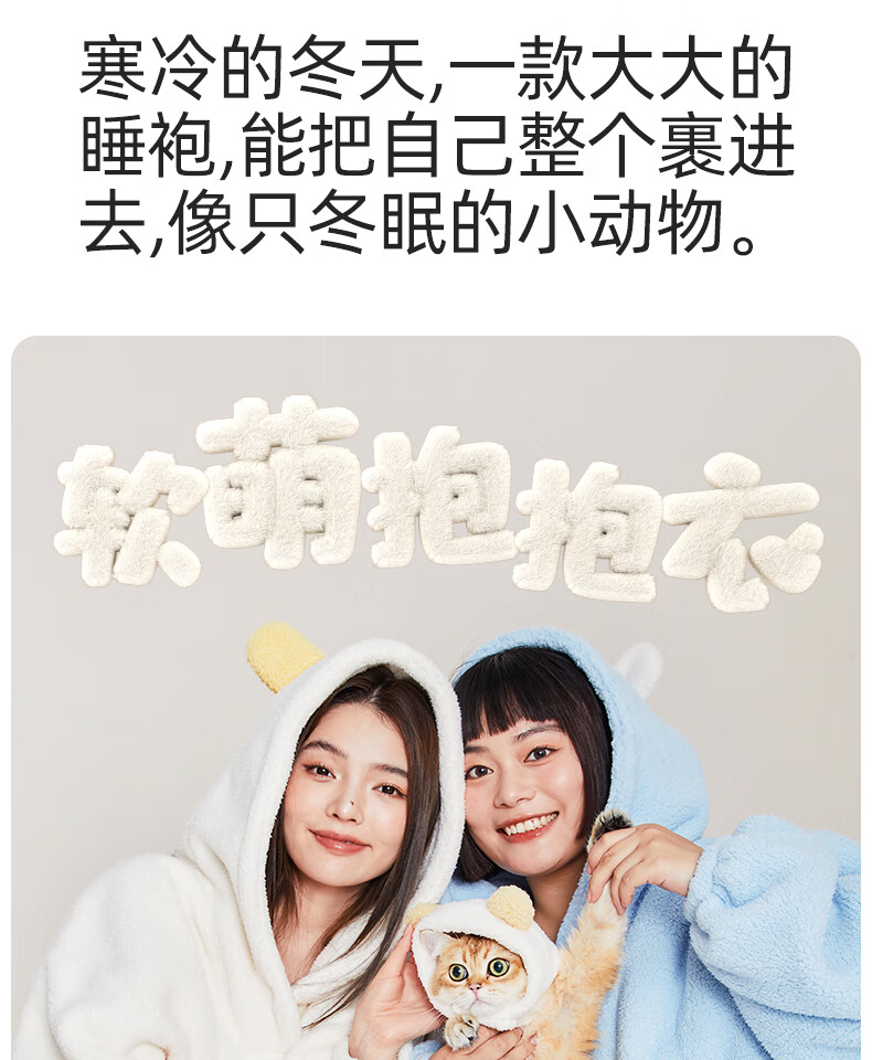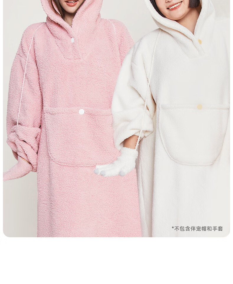 幸棉(LUCKMEEY)断码特惠 家居服长款连帽睡袍女冬季加厚羊羔绒可爱风睡袍中长款 米白色 M (45-60kg)