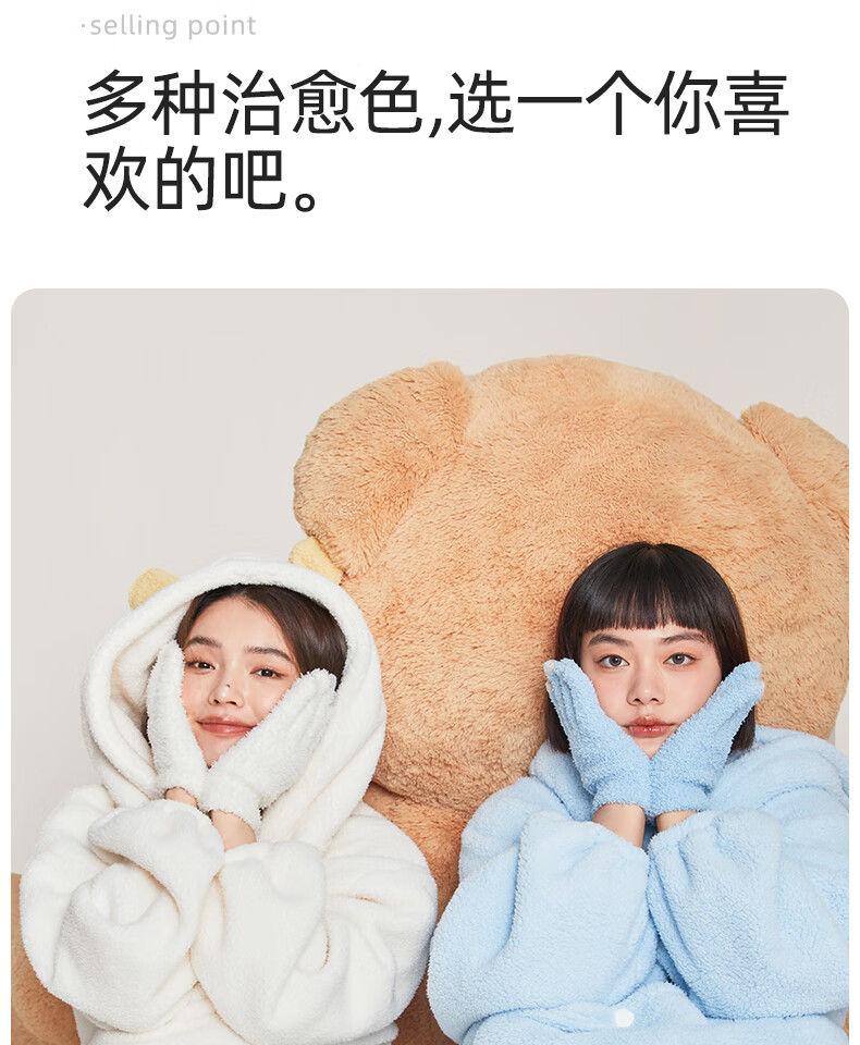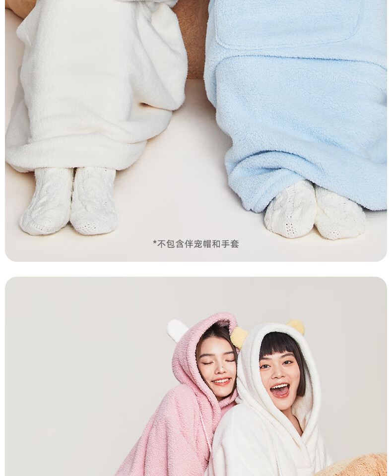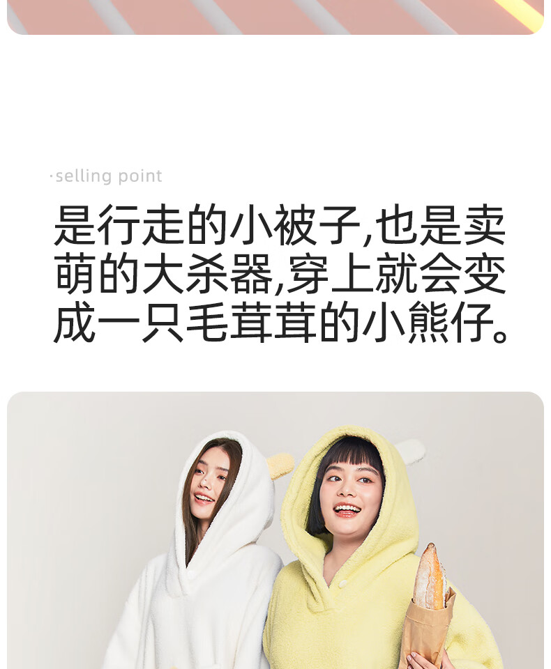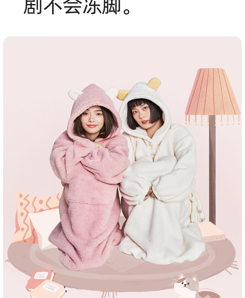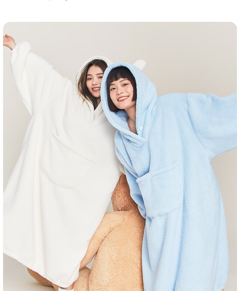 幸棉(LUCKMEEY)断码特惠 家居服长款连帽睡袍女冬季加厚羊羔绒可爱风睡袍中长款 米白色 M (45-60kg)