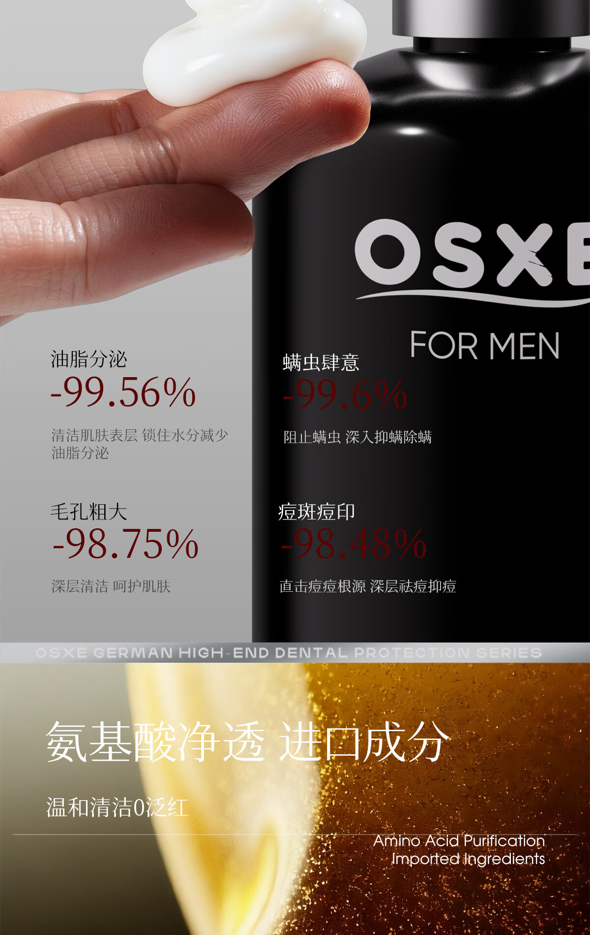 OSXE德国进口氨基酸男士洗面奶控油祛痘去黑头京东自营正品高端护肤*1